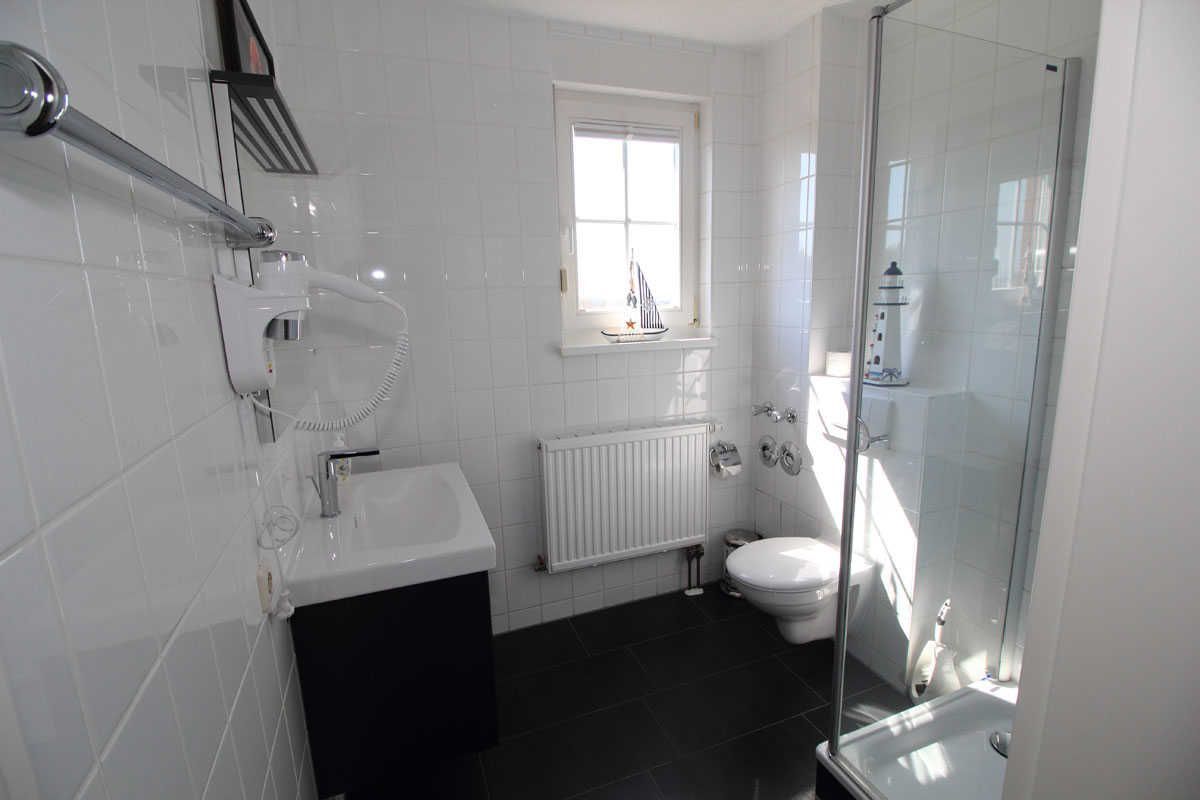 Das modernisierte Badezimmer ist mit Dusche, WC, Waschtisch und Fön ausgestattet