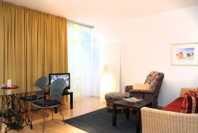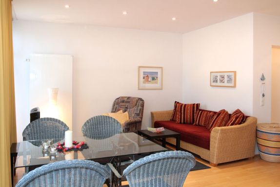 Das Wohnzimmer der Ferienwohnung in Warnemünde ist ausgestattet mit Kabel-TV sowie Radio/CD-Anlage. Das Wohnzimmer hat einen Zugang zu 2 separaten Terrassen mit Strandblick wo Sie den Sonnenuntergang genießen sowie den den Abend romantisch ausklingen lassen können.