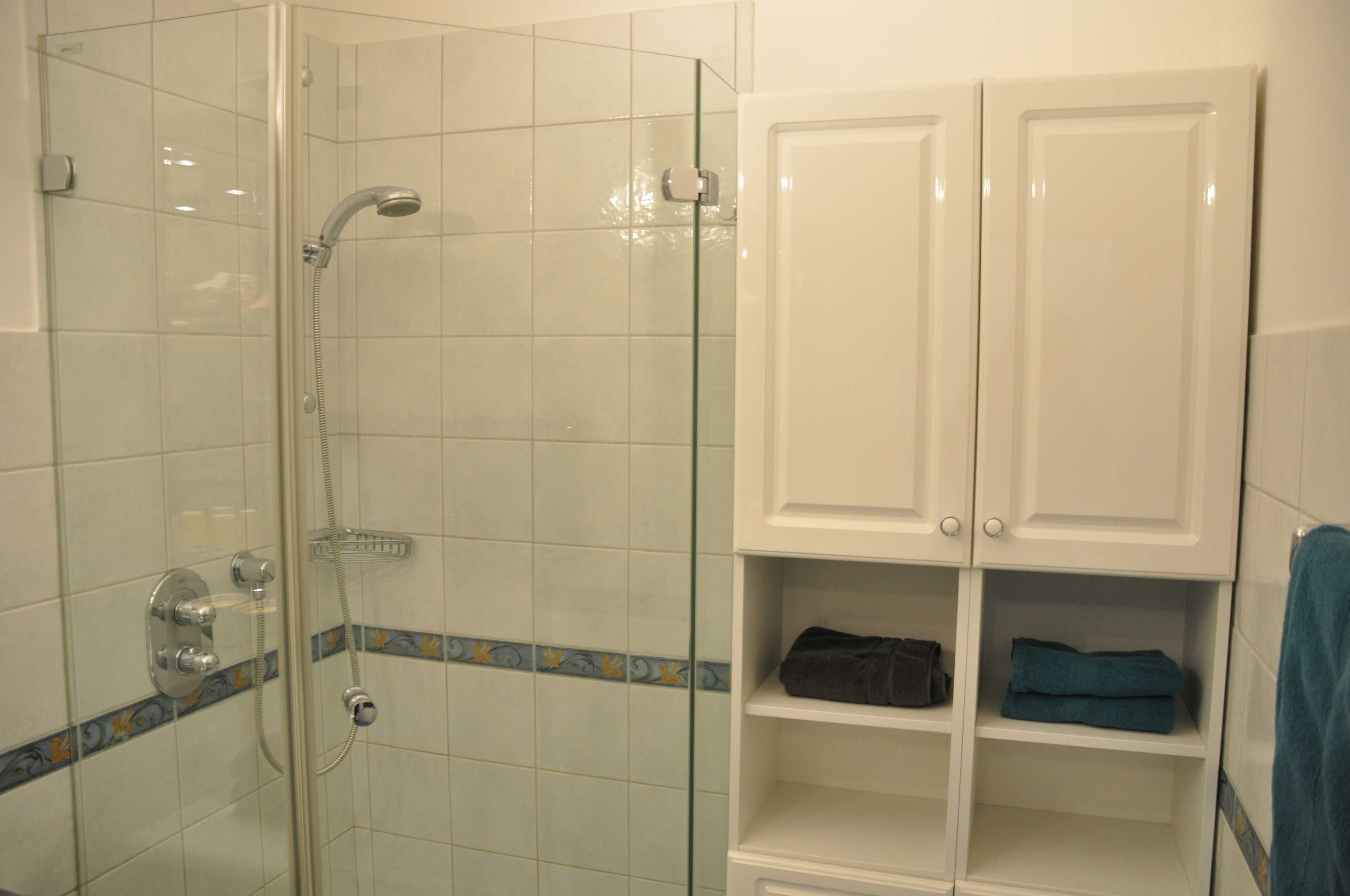 • WC (1qm) und Dusche (80cm x 90cm) getrennt. Für sehr korpulente Gäste ggf. nicht ausreichend.