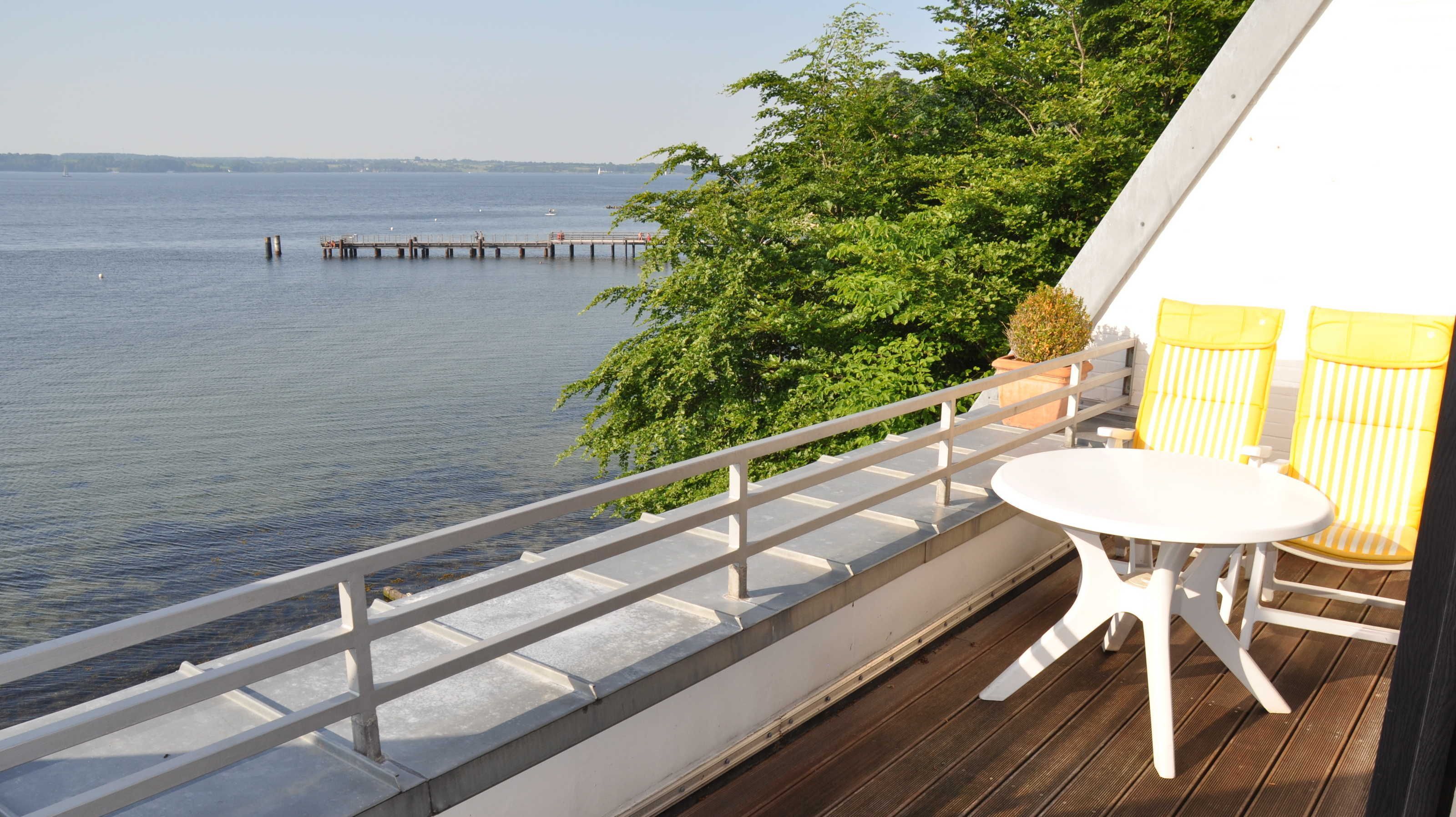• großer Balkon mit Blick auf die Förde