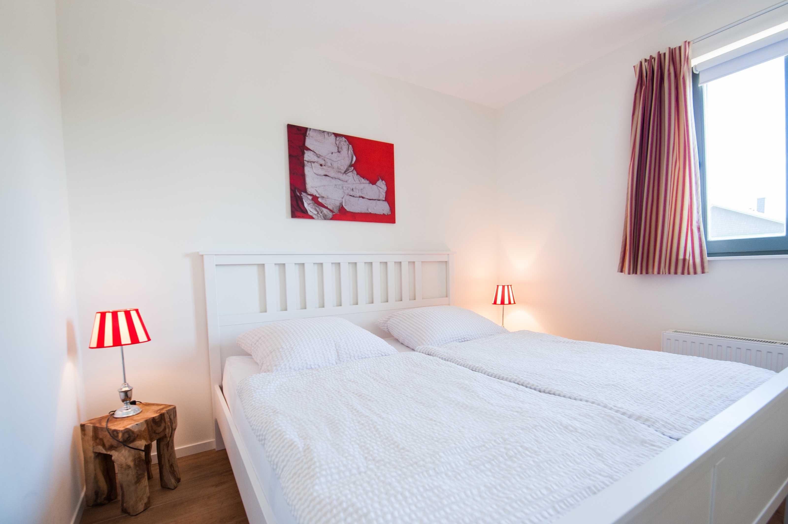 Ein Schlafzimmer mit einem 1,80 x 2 m Doppelbett und ein Zimmer mit Hochbett (Liegefläche 1,40 x 2 m) und einem Einzelbett. Kostenfreies W-LAN steht zur Verfügung.