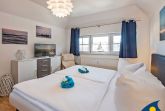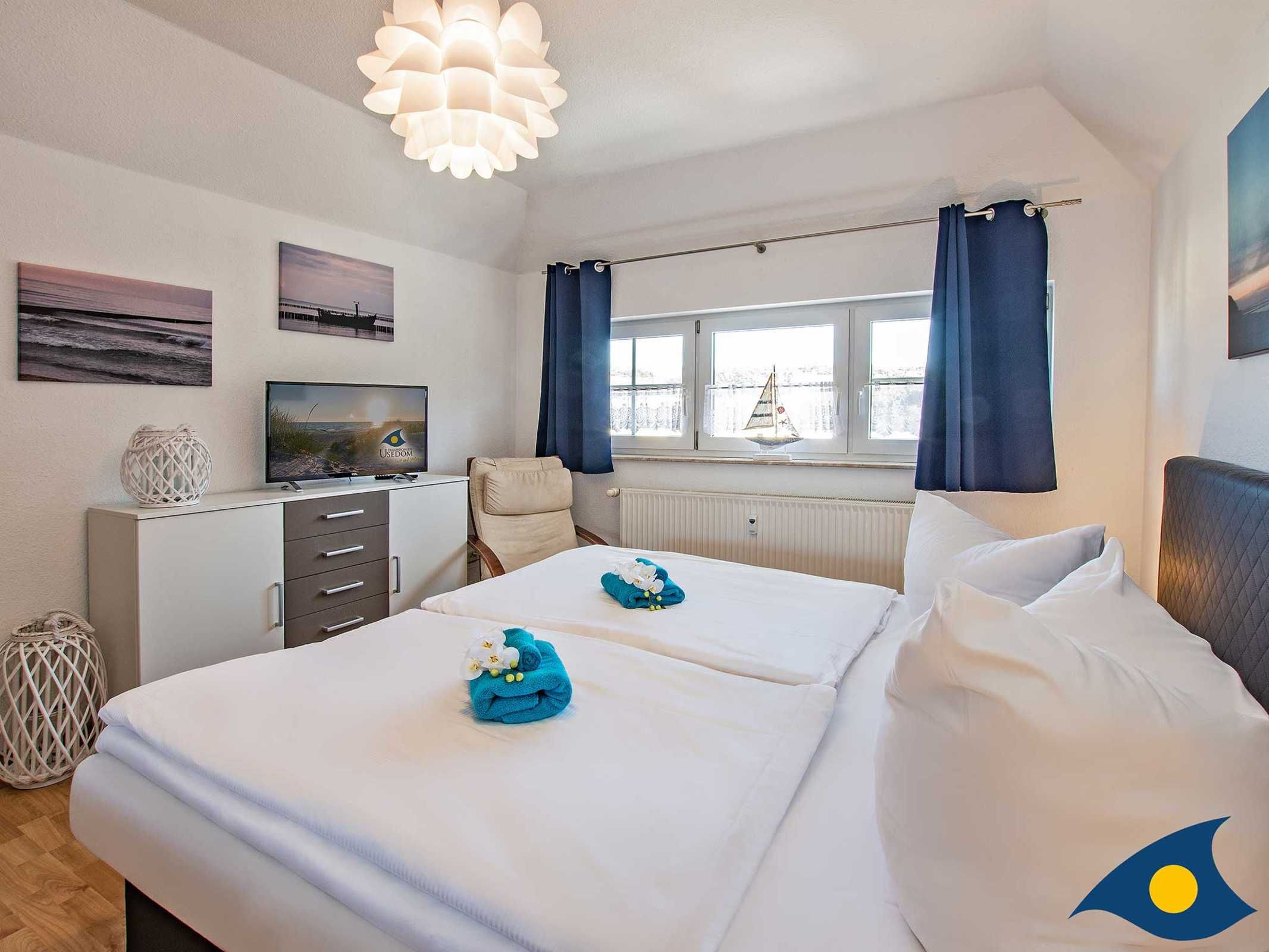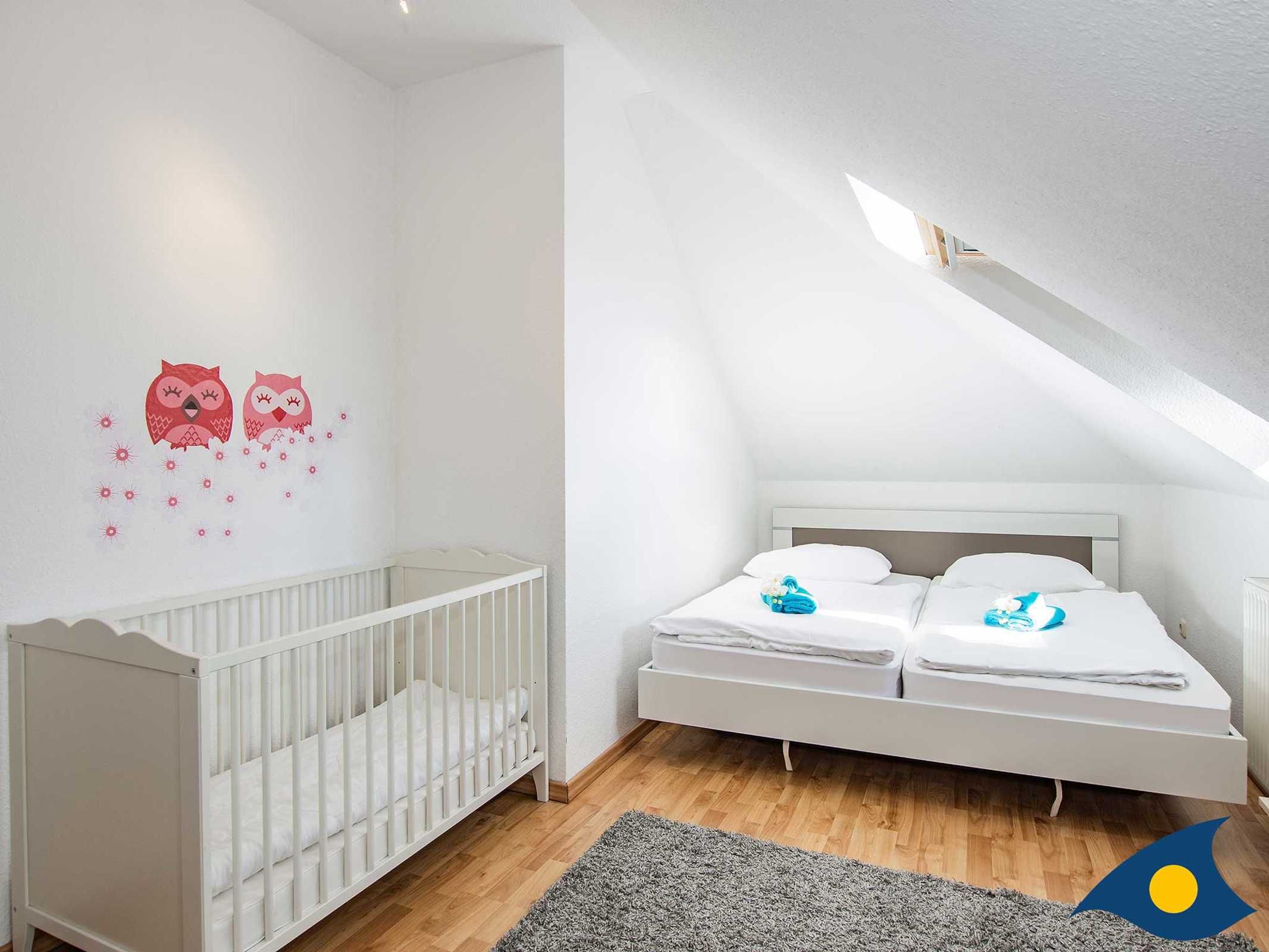 Die zwei Schlafräume laden mit den bequemen Doppelbetten zu erholsamen Ruhepausen ein. Ihre Urlaubsgarderobe findet in den großen Kleiderschränken Platz. In dem großen Familienschlafzimmer gibt es zudem ein Tandembett für 2 Kinder und ein Babybett inklusive Matratze und Auflagen für unsere ganz kleinen Gäste. Unser Vorteil für Sie – zu Ihrer Anreise sind die Betten bereits bezogen und wir stellen pro Person jeweils ein großes und ein kleines Handtuch kostenfrei zur Verfügung. Bettwäsche oder einen Schlafsack und ein Laken für das Babybett bringen Sie bitte mit.