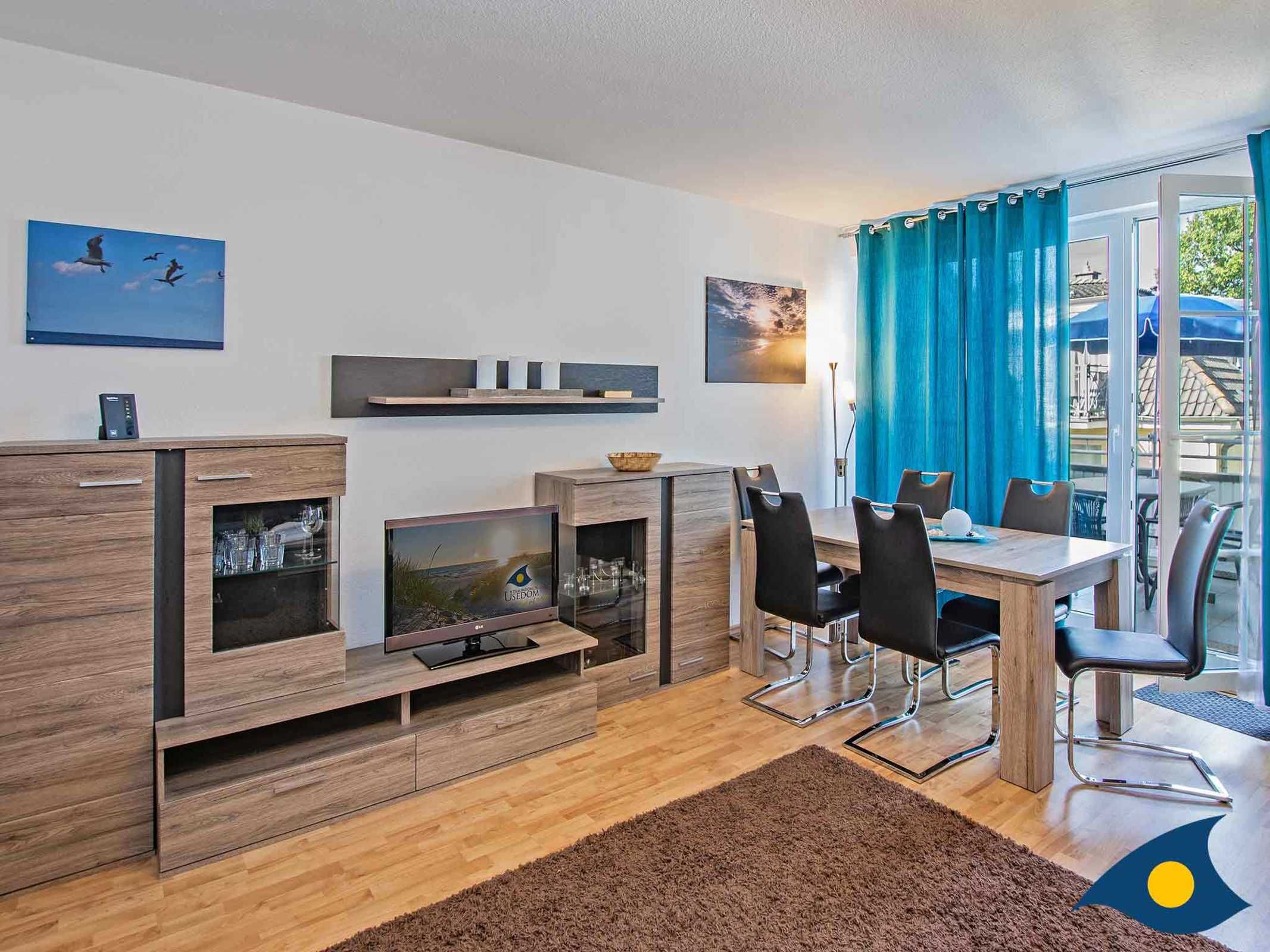 Der gemütliche Wohnraum mit dem großen, bequemen Sofa und dem großen Esstisch mit 6 Schwingstühlen lädt zum Fernsehen, Schlemmen und zu gemeinsamen Spieleabenden ein.