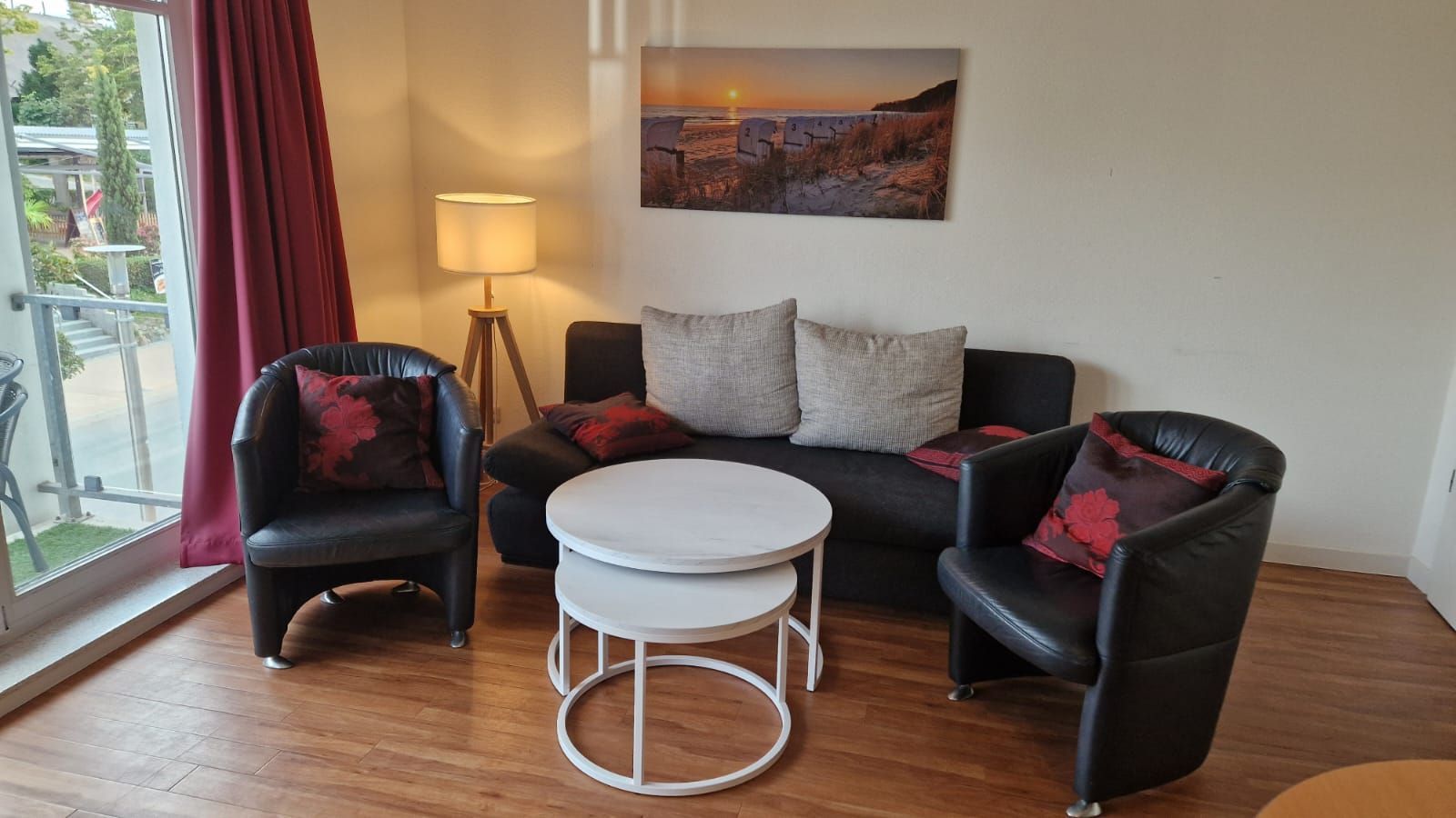 Sie besteht aus einem Wohnzimmer mit Sitzecke (Schlafsofa), TV, Balkon und komplett eingerichteter Küchenzeile (4 Kochplatten, Backofen, Kühl- & Gefrierkombi, Spülmaschine, Mikrowelle, Kaffeemaschine, Wasserkochen, Toaster, Eierkocher), einem Schlafzimmer mit Doppelbett, einem Schlafzimmer mit zwei Einzelbetten und Bad mit Dusche und WC.
