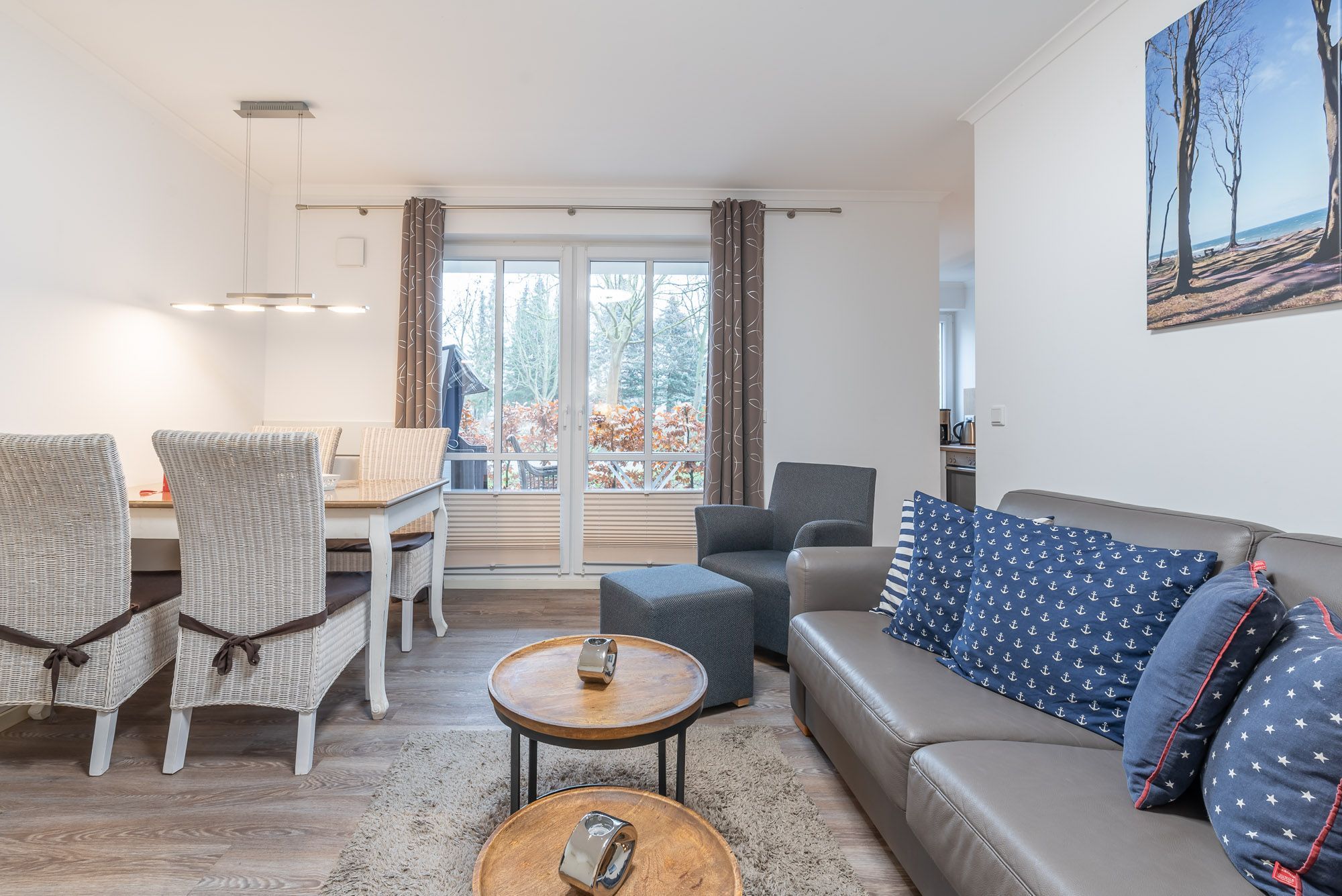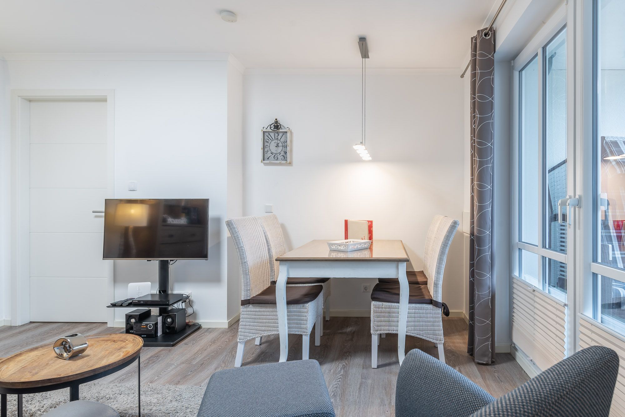 Die 2-Zimmer-Ferienwohnung lässt kaum Wünsche offen. Der Wohnbereich verfügt über eine Schlafcouch inkl. Sessel, einen Couchtisch, einen Esstisch mit 4 Stühlen sowie einen LED-TV. DVD-Player sowie Stereoanlange gehören ebenfalls zur Ausstattung.