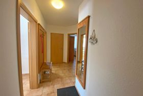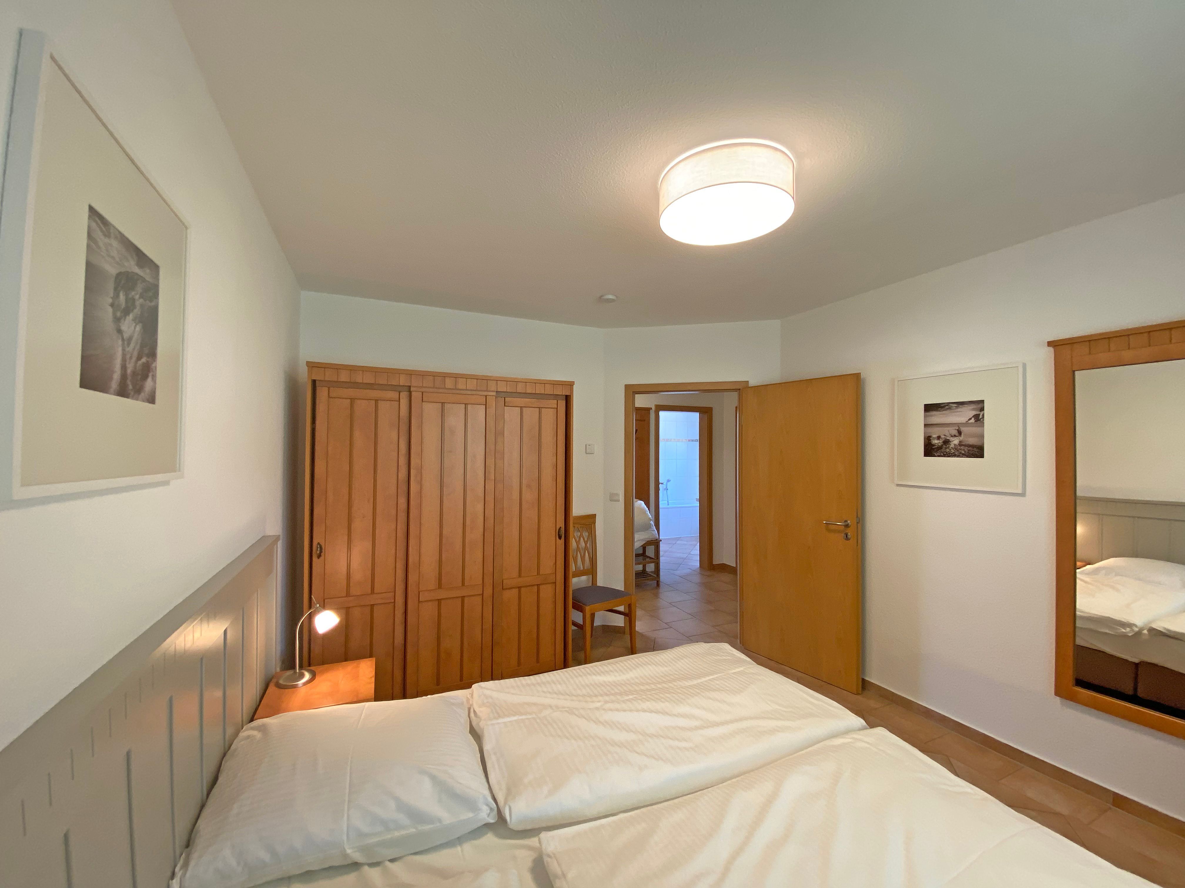 Die Nichtraucherwohnung mit ca. 77 qm besticht durch ihre komfortable Raumaufteilung. Die im Parterre liegende Ferienwohnung Nr. 1 bietet ausreichend Platz für max. 4 Erwachsene und 2 Kinder bis 17 Jahre. Im Wohnbereich wird die Unterhaltungstechnik durch Gesellschaftsspiele, einen modernen 42 Zoll LCD-TV und einen CD- bzw. DVD-Player abgerundet. Auch im Urlaub müssen Sie nicht auf einen Internetanschluss (W-LAN) verzichten. Dieser ist für Sie inklusive. Für die Gemütlichkeit wurde der Wohnbereich mit Massivmöbeln, einer Stehlampe, zwei Sesseln und zwei Schlafcouchen (Aufbettungsmöglichkeit, 1,90 m x 2,00 m) ausgestattet. Die bestuhlte und große Terrasse (Westen) mit Sonnenschirm können Sie vom Wohnbereich erreichen. Sie lädt bei einem Glas Wein zum Entspannen ein. Die angrenzende Küchenzeile verfügt über eine Spülmaschine, Mikrowelle, Ceranfeld mit Backofen, Kühlschrank mit Eisfach, Wasserkocher, Toaster, Kaffeemaschine und diverse Küchenutensilien. Bei Ihren Mahlzeiten können Sie vom Esstisch aus den Blick auf den Selliner See genießen. Das 1. Schlafzimmer wurde mit einem Doppelbett (1,80 m x 2,00 m), Nachtischablagen sowie einen Kleiderschrank ausgestattet. Das 2. Schlafzimmer verfügt über 2 Einzelbetten (0,90 m x 2,00 m) auch als Doppelbett stellbar, Nachttischablagen und einen Kleiderschrank. Im Tageslichtbad können Sie in einer Badewanne relaxen. Durch eine separate Dusche, einen großen Waschtisch, einen Fön und ein WC wird der Sanitärbereich abgerundet. Fensterläden und Vorhänge dienen zum Verdunkeln der Räumlichkeiten. In allen Räumlichkeiten finden Sie Nachtspeicheröfen. Im Abstellraum finden Sie unter anderem Strandutensilien, einen Wäscheständer, zwei Sonnenliegen sowie Reinigungsutensilien. Für unsere kleinen Gäste stehen 1x Kinderreisebett (ohne Matratze, ohne Bettinlett) sowie 1x Hochstuhl inklusive zur Verfügung. Haustiere sind in dieser Wohnung nicht erlaubt. Ein PKW-Stellplatz Nr. 01 befindet sich direkt auf dem Grundstück. Ihre mitgebrachten oder geliehenen Fahrräder können Sie nach Verfügbarkeit im abschließbaren Fahrradraum unterstellen. Die Erstausstattung eines Wäschepaketes (komplette Bettwäsche, 1 Duschhandtuch, 1 kleines Handtuch) können Sie bis 14 Tage vor Anreise gegen einen Aufpreis dazu buchen oder durch eigene ergänzen. Ab 2 gebuchten Paketen erhalten Sie einmalig 1 Geschirrhandtuch und 1 Duschvorleger hinzu.