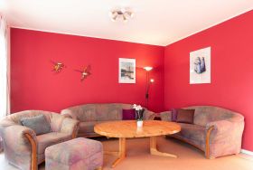 Unser Nichtraucherhaus ist im nordischen Stil ausgestattet. In den mit Laminat ausgelegten Schlafzimmern und Wohnzimmer finden Sie gemütliche Kiefernmöbel vor. In den übrigen Räumen dienen Fliesen als Bodenbelag. Für eine wohlige Wärme sorgt dabei eine Fußbodenheizung.