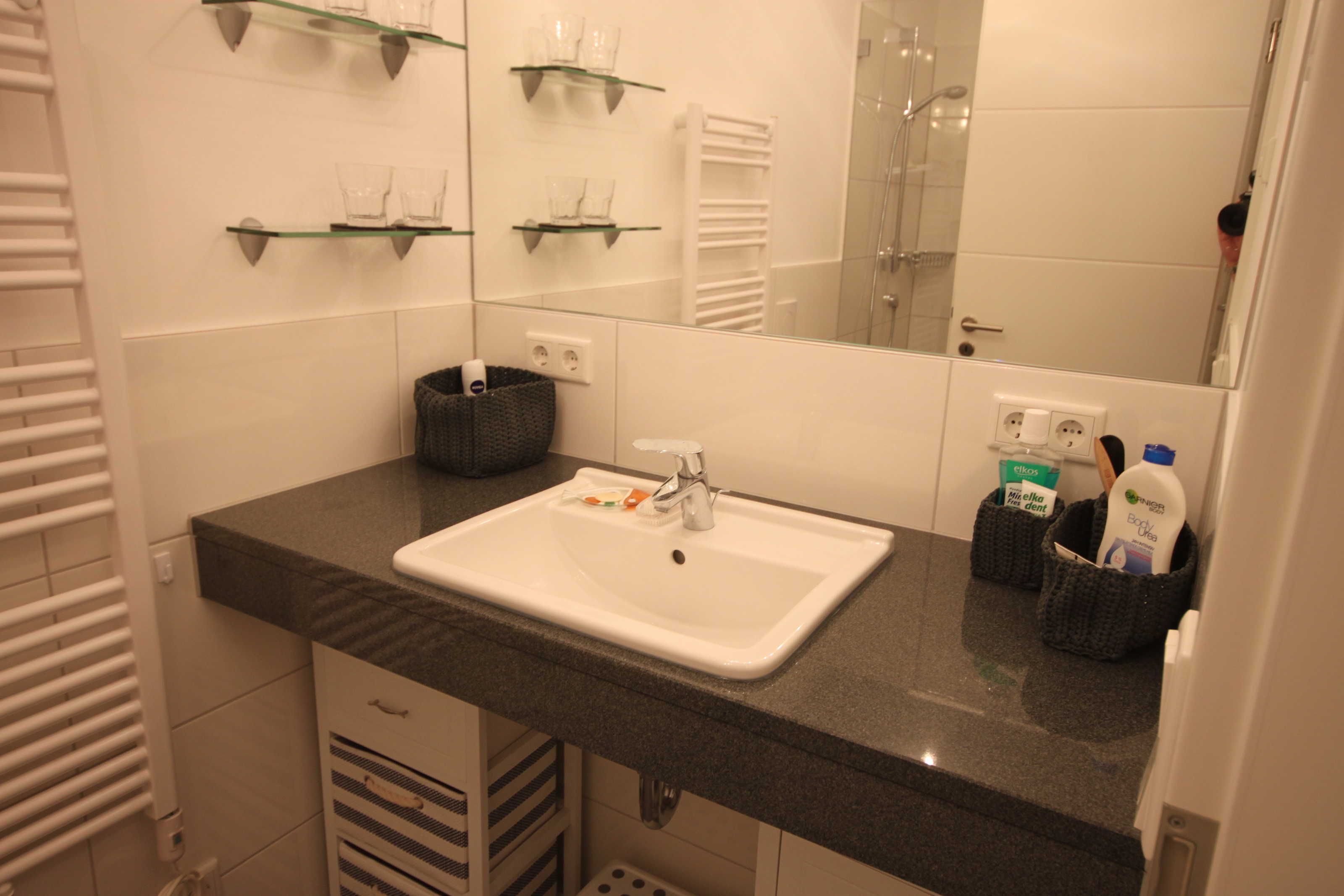 Das Badezimmer (innenliegend) bietet eine ebenerdige Dusche.