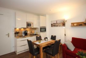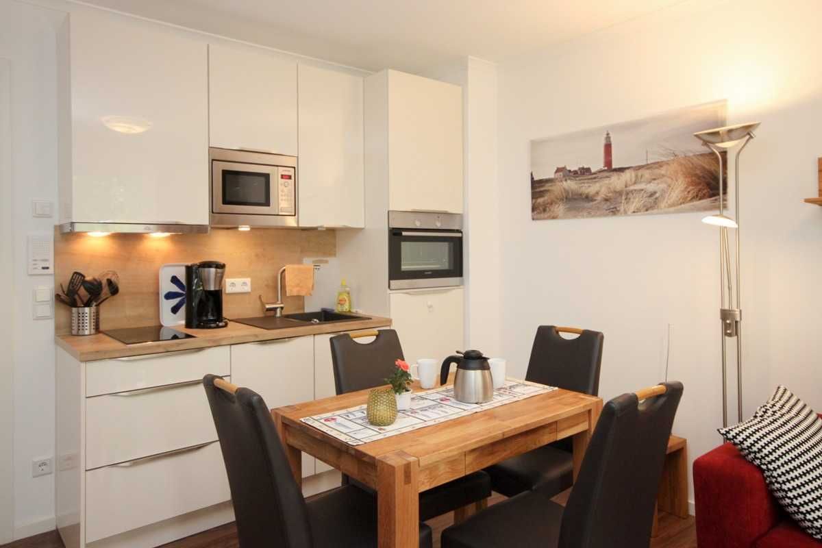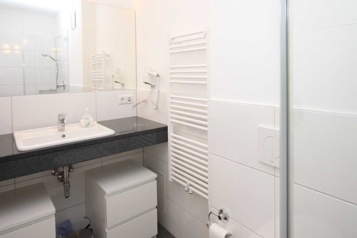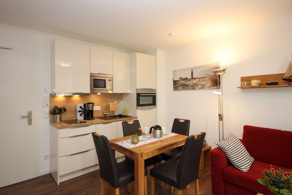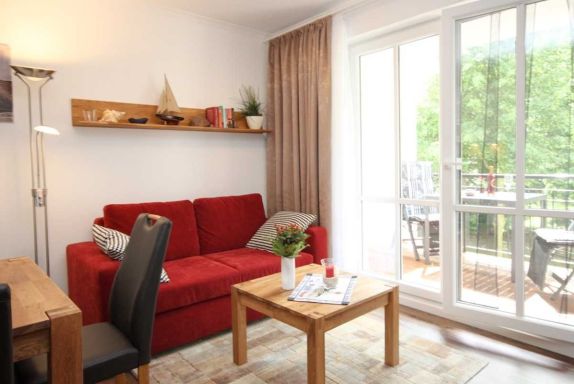 Freuen Sie sich auf wunderbare Tage am Strand und gleichzeitig auf die gediegene Atmosphäre Ihres 34 qm großen Appartements in der 1.Etage mit einem großzügigen Koch- ,Ess- und Wohnbereich. Der Wohnbereich verfügt über eine große und gemütliche Schlafcouch. Weiterhin bietet dieses wunderschöne Appartement ein Schlafzimmer mit Doppelbett (1,60x2,00 m / einzelne Matratzen) und Kleiderschrank. Das Duschbad ist mit einer bodengleichen Dusche, einem großen Waschtisch und Wandspiegel ausgestattet. Auf dem mit Tisch und 2 Relaxstühlen möblierten Balkon können Sie viele gemütliche Sonnen- oder Abendstunden verbringen.