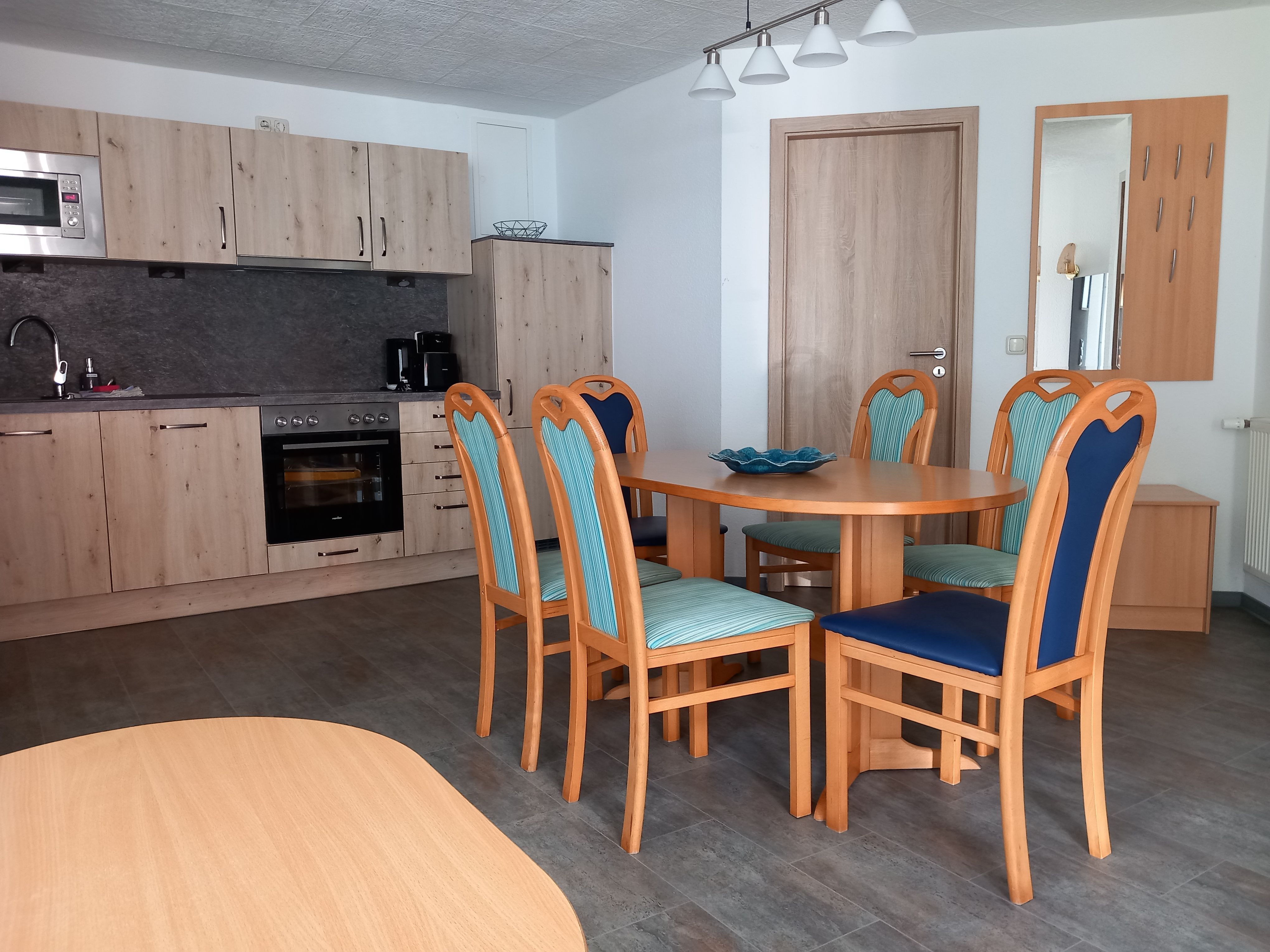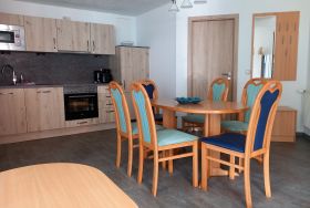 Bei unseren Ferienwohnungen handelt es sich um eine Doppelhaushälfte mit jeweils zwei Schlafzimmern für maximal 5 - 6 Personen. Jede Ferienwohnung ist mit einer Küchenzeile ausgestattet und verfügt über ein eigenes Badezimmer mit Dusche und WC. Ein gemütlicher Wohn- und Essbereich lädt zum Zusammensein mit der Familie oder unter Freunden ein.