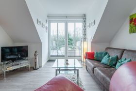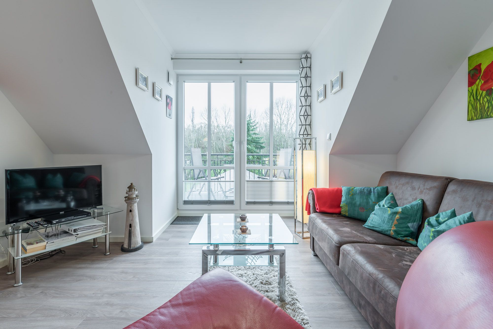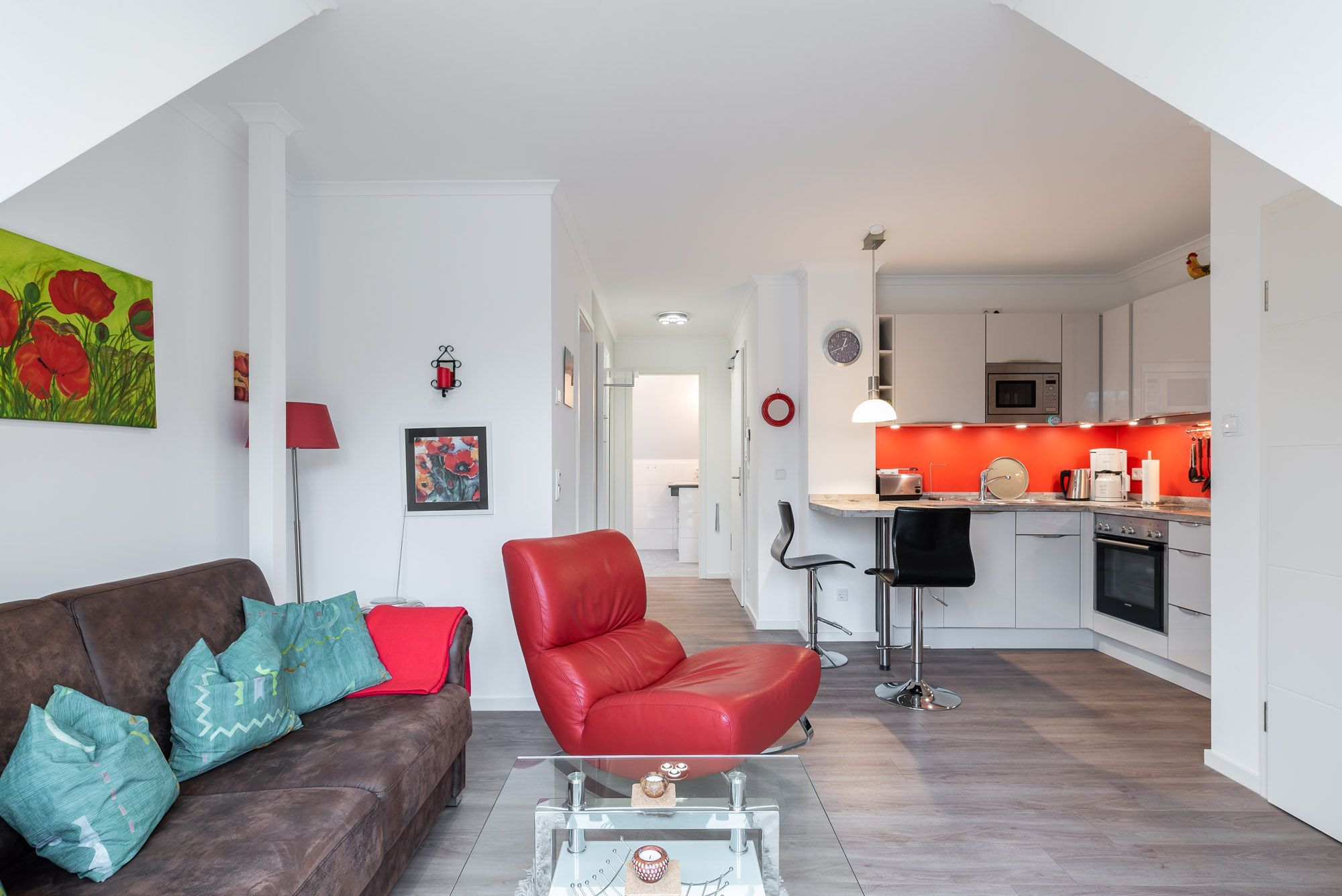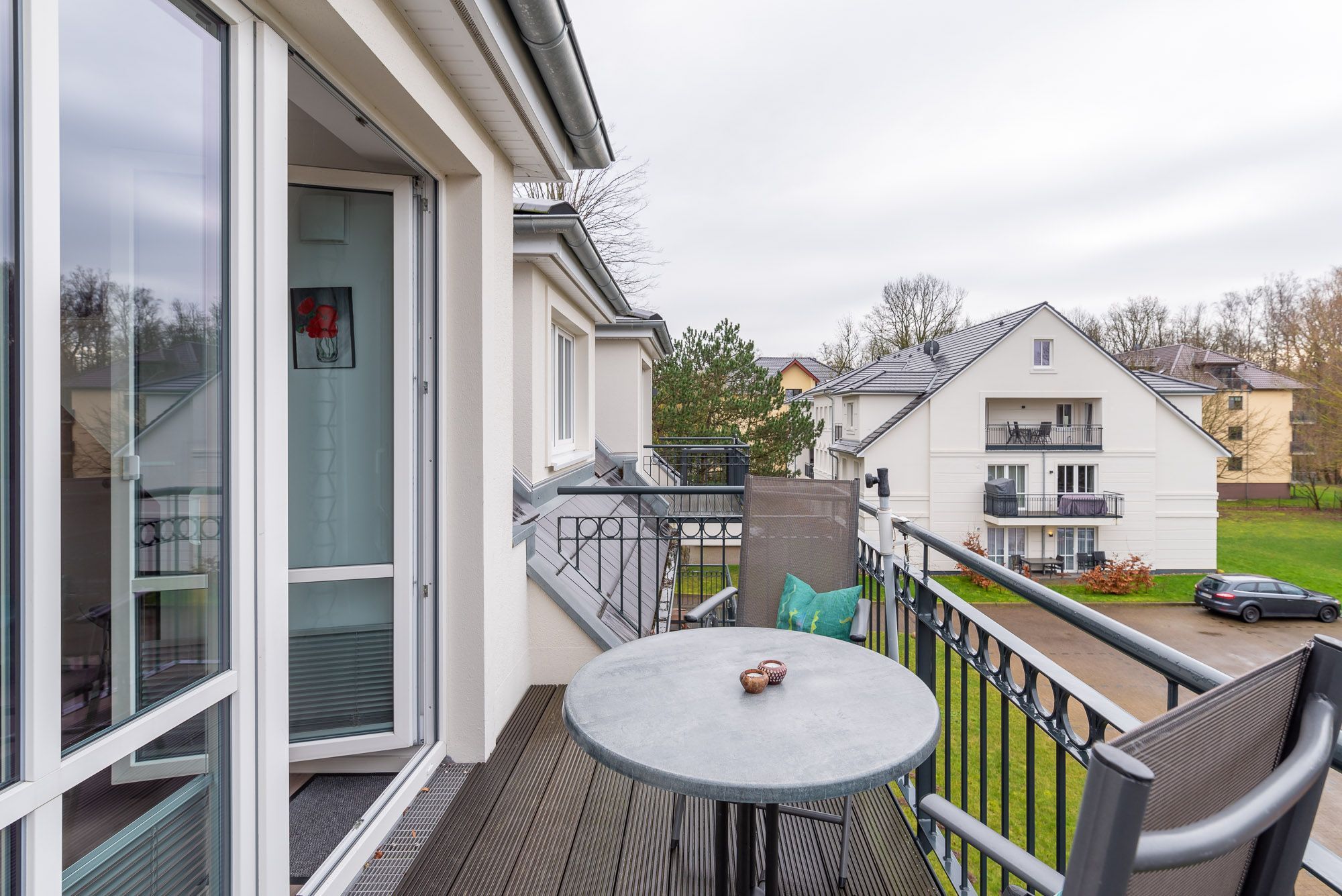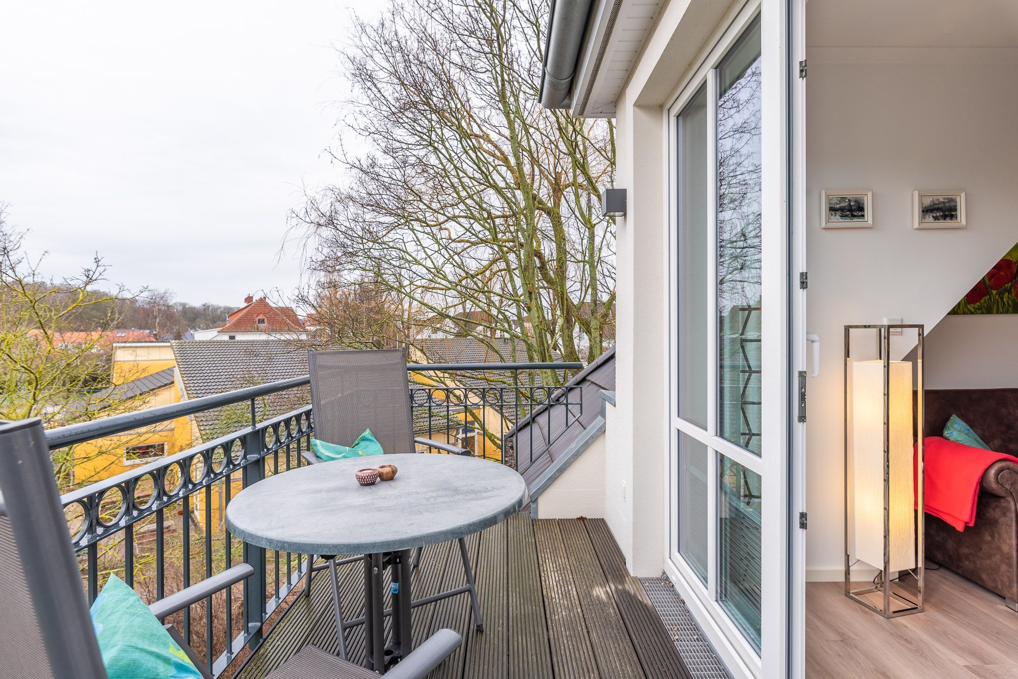 Moderne Zweizimmer-Obergeschoss-Wohnung mit großem Süd-West-Balkon mit Blick auf den Gespensterwald und nur wenigen Schritten zur Steilküste und zum Strand.