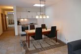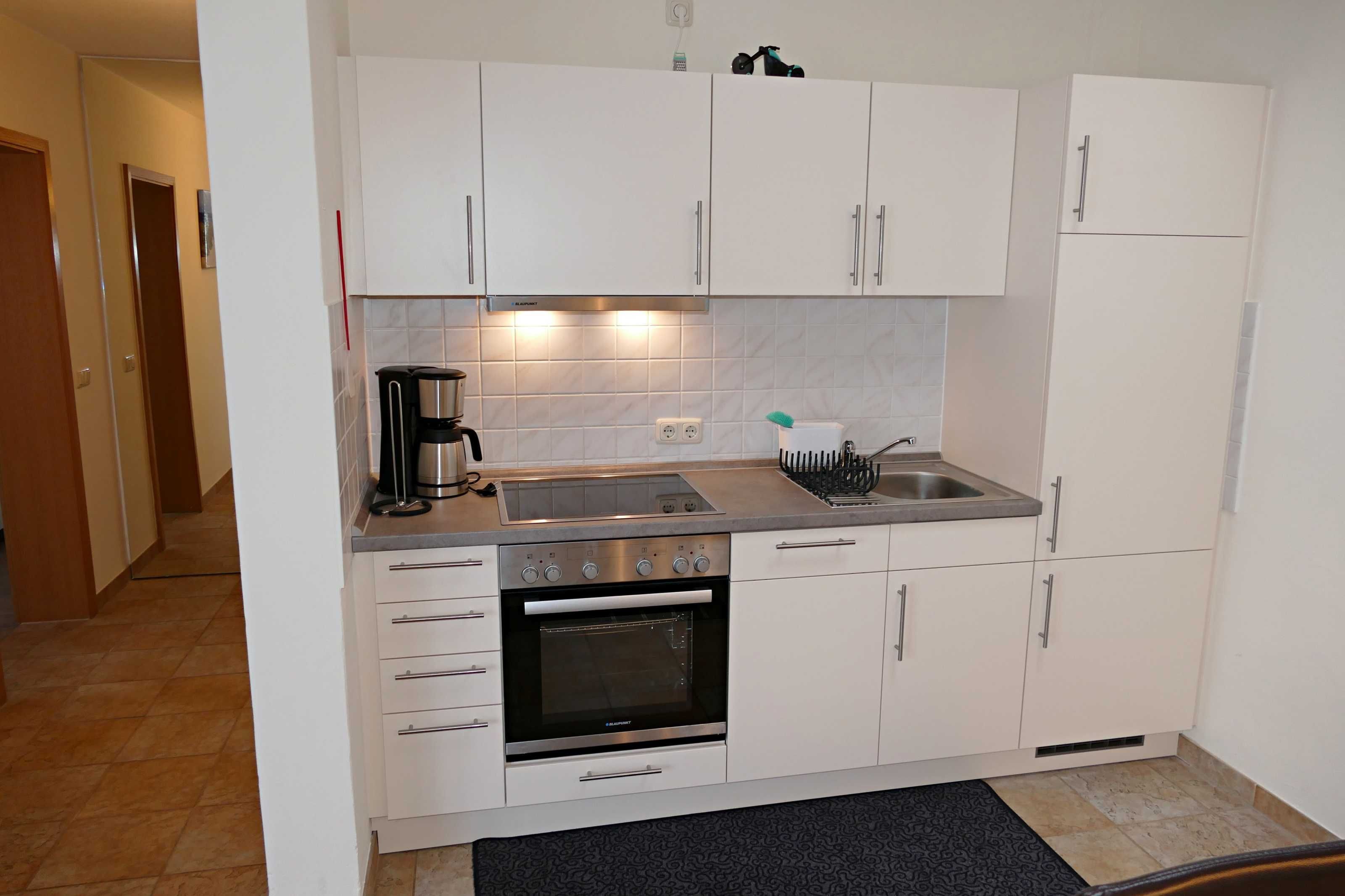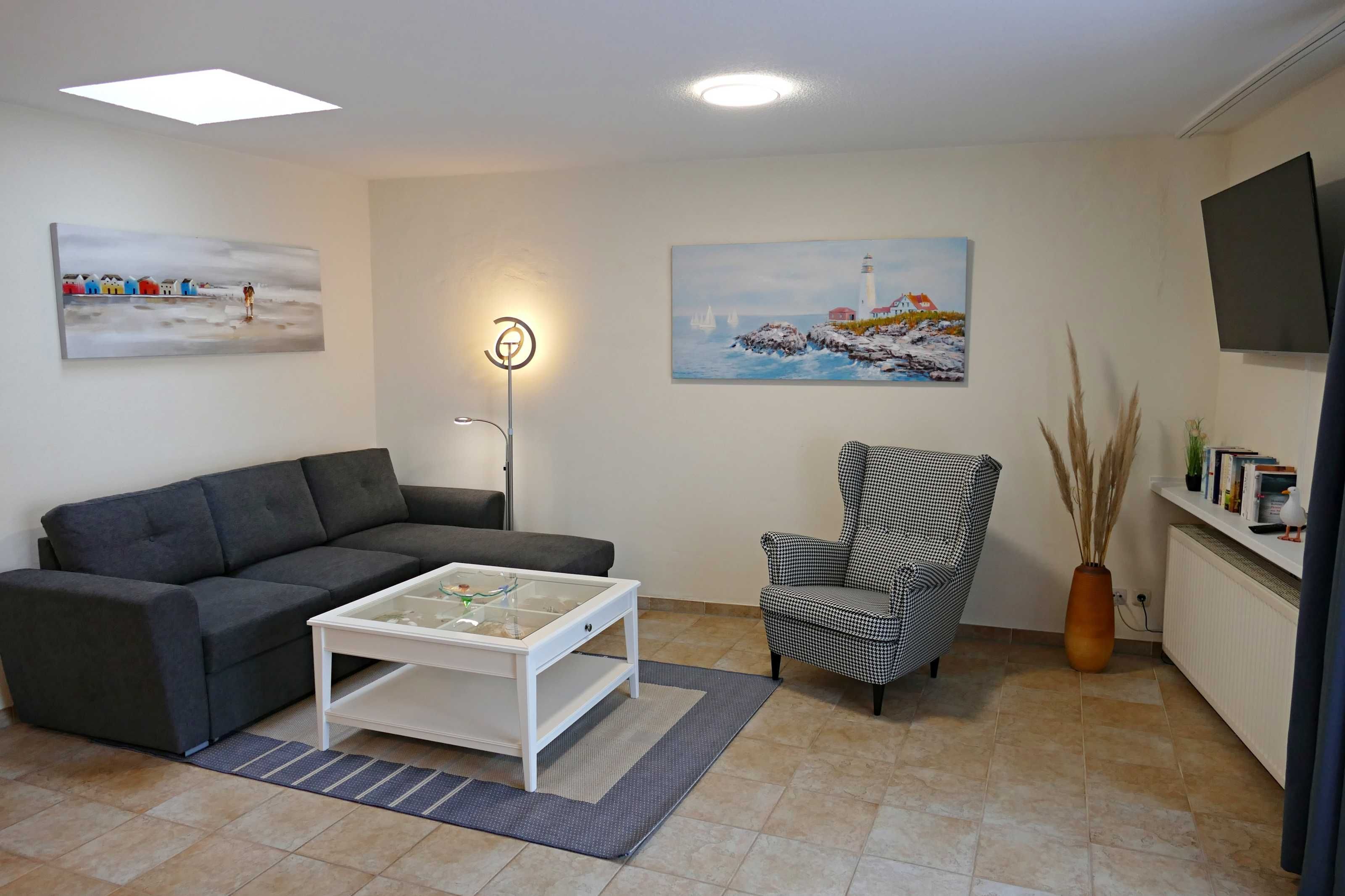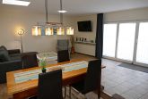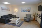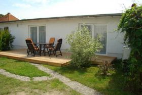 Diese moderne 60qm große 2-Raum-Ferienwohnung im Erdgeschoss verfügt über einen großzügigen kombinieren Wohn- und Schlafraum mit Sofa (Schlafsofa für bis zu zwei Personen), Ohrensessel, Kabel-TV und Radio, einen Essplatz für vier Personen, eine Küchenzeile mit Ceranherd, Backofen, Kühlschrank mit Gefriermöglichkeit, Spülmaschine, Kaffeemaschine, Toaster, Mikrowelle und Geschirr. Das Schlafzimmer ist mit einem Doppelbett, Kleiderschrank und Ablagemöglichkeiten ausgestattet. Die zur Wohnung gehörende Terrasse mit Sitzmöbeln lädt zum Verweilen ein. Hier können Sie bei herrlichstem Wetter das Frühstück genießen oder den Abend bei einem Glas Wein ausklingen lassen.