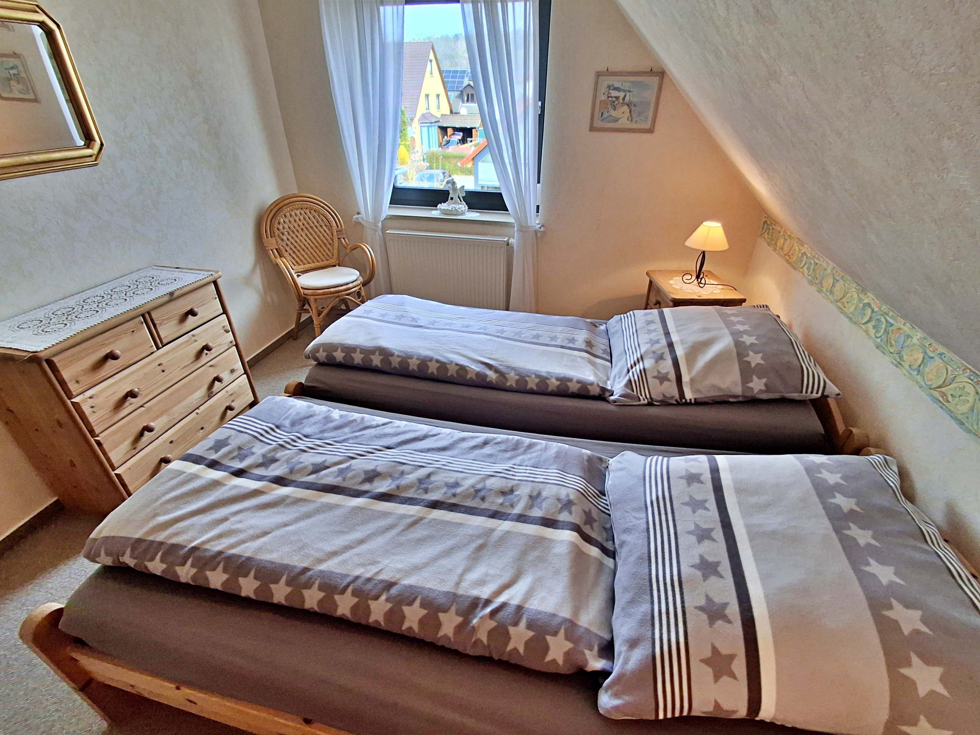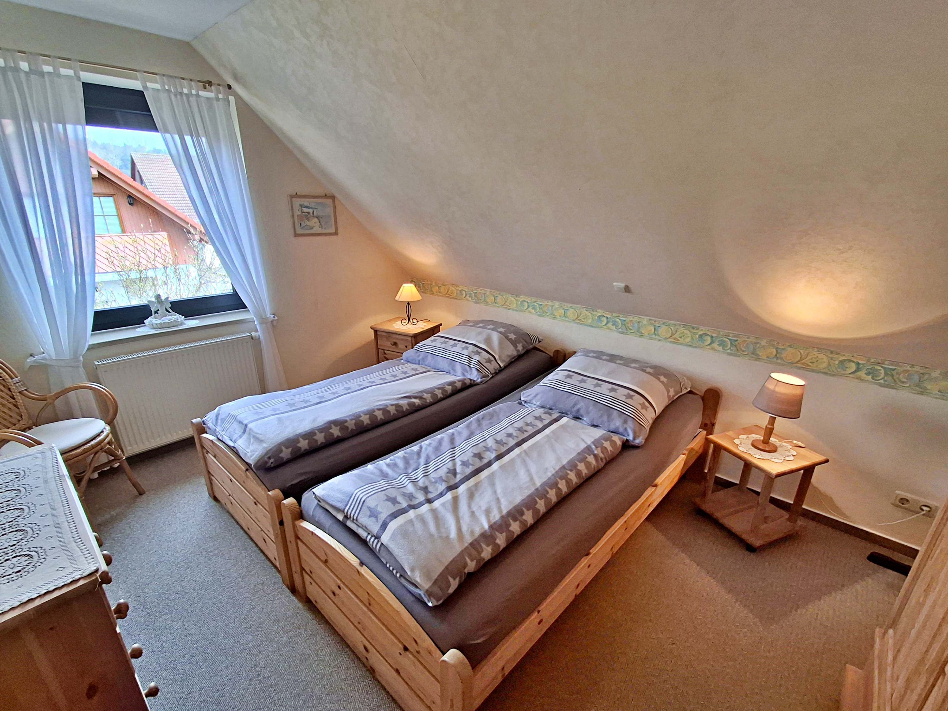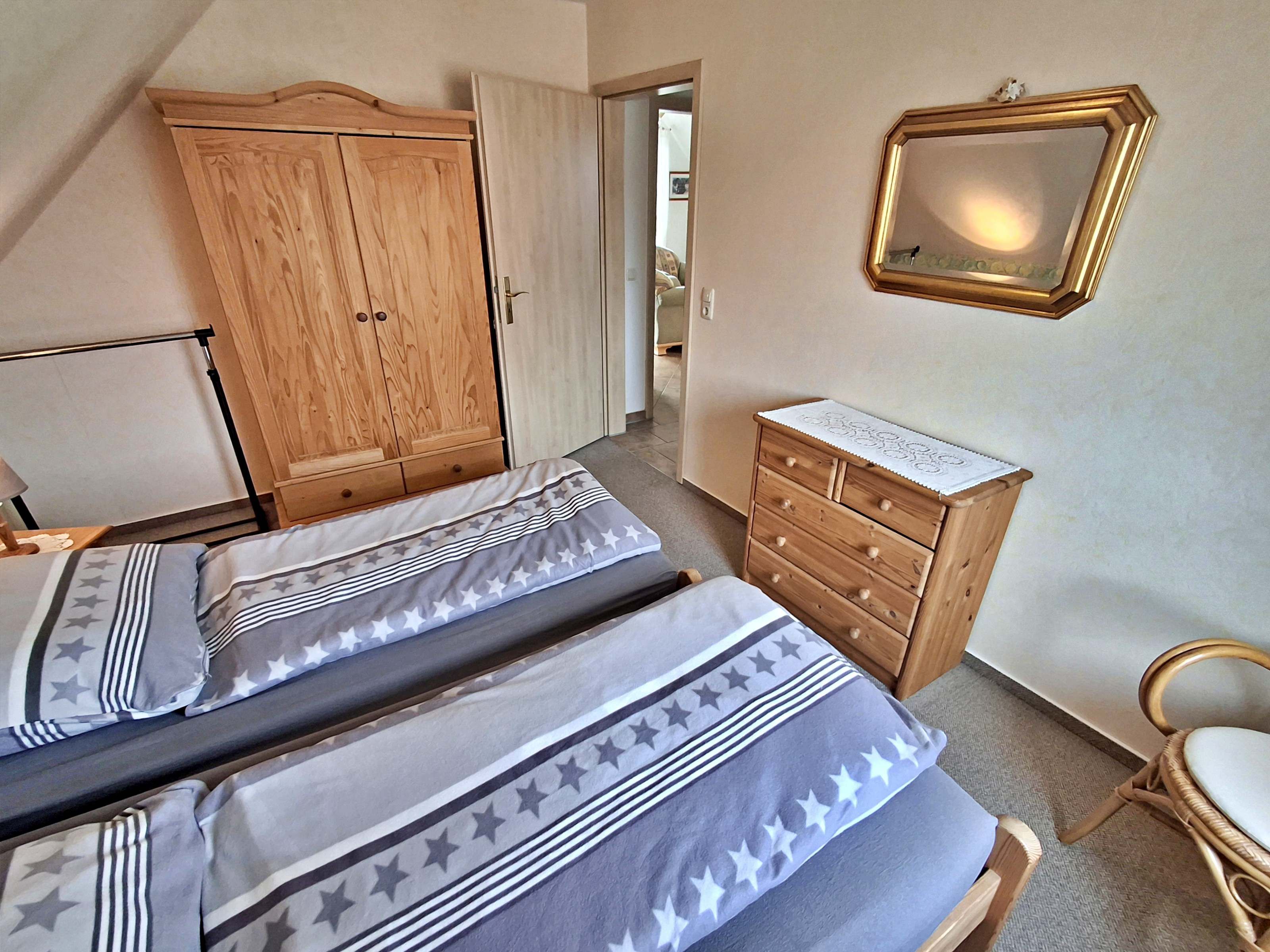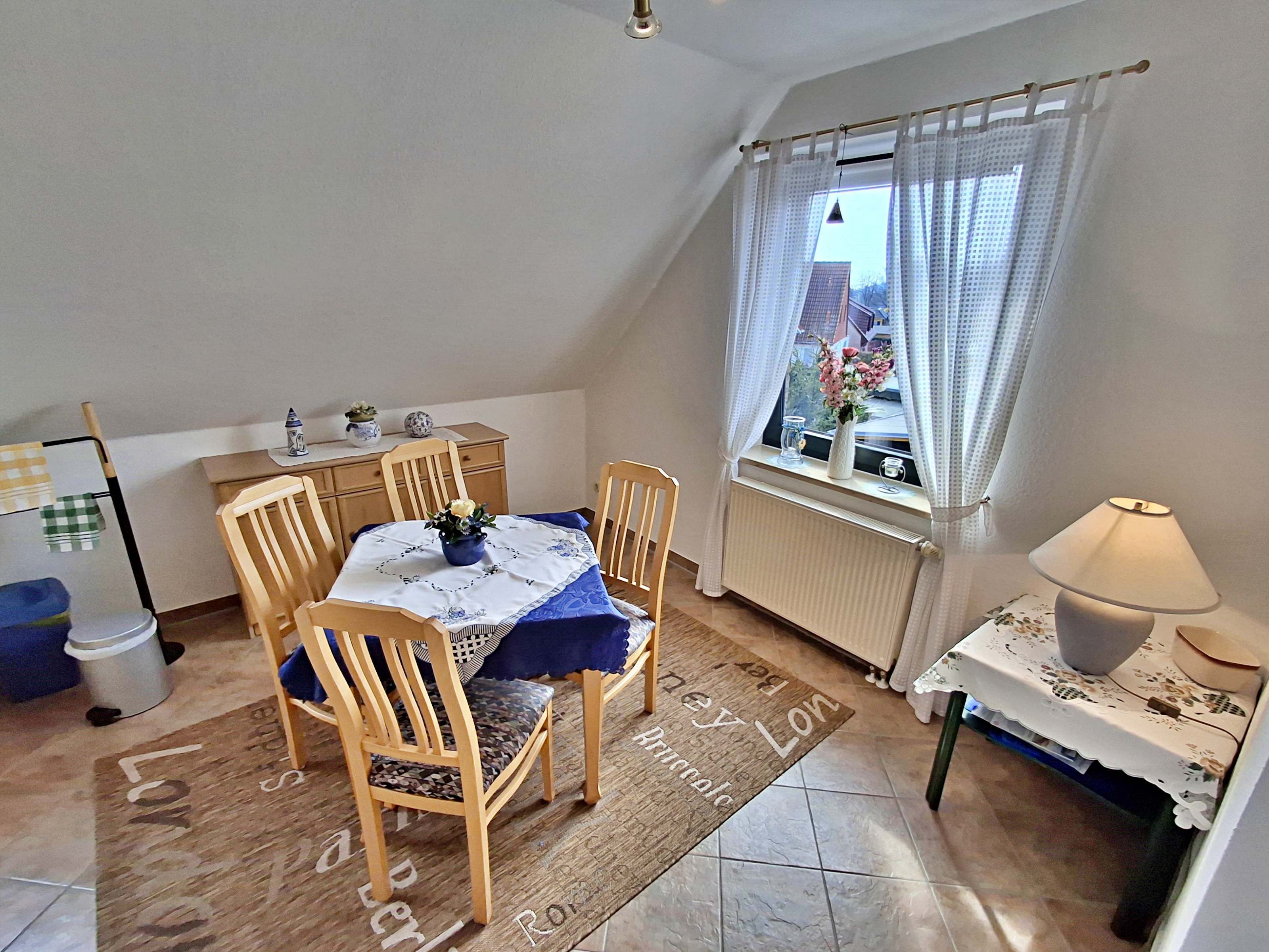 Diese ca. 50 qm große freundliche Unterkunft im 1. OG mit separatem Eingang bietet Ihnen alles, was Sie für einen angenehmen Aufenthalt benötigen. Der einladende Wohnbereich ist mit einer gemütlichen Couch, einem Sessel, TV und Radio ausgestattet, sodass Sie sich nach einem erlebnisreichen Tag entspannen können. Der Essbereich, der an die komplett ausgestattete Küche anschließt, lässt keine Wünsche offen. Hier finden Sie einen Ceranherd, Backofen, Spülmaschine, Mikrowelle, Wasserkocher, Kaffeemaschine und Toaster - perfekt für die Zubereitung Ihrer Lieblingsgerichte. Das separate Schlafzimmer ist mit einem komfortablen Doppelbett und einem Kleiderschrank ausgestattet. Dank des Außenrollos können Sie den Raum nach Belieben abdunkeln. Das Tageslicht-Bad mit Dusche und WC, ebenfalls mit Außenrollo, sowie ein kleiner Abstellraum runden das Angebot ab. Ein besonderes Highlight ist der Balkon zur Südseite, der vom Wohnzimmer aus zugänglich ist. Hier können Sie bereits am Morgen Ihren Kaffee genießen oder den Tag bei einem Glas Wein ausklingen lassen. Bitte beachten Sie, dass Bettwäsche und Handtücher mitgebracht werden müssen. In Ausnahmefällen kann der Vermieter diese gegen eine Gebühr zur Verfügung stellen, was vor Ihrer Anreise abgesprochen werden sollte. Selbstverständlich können Sie das WLAN kostenfrei nutzen.