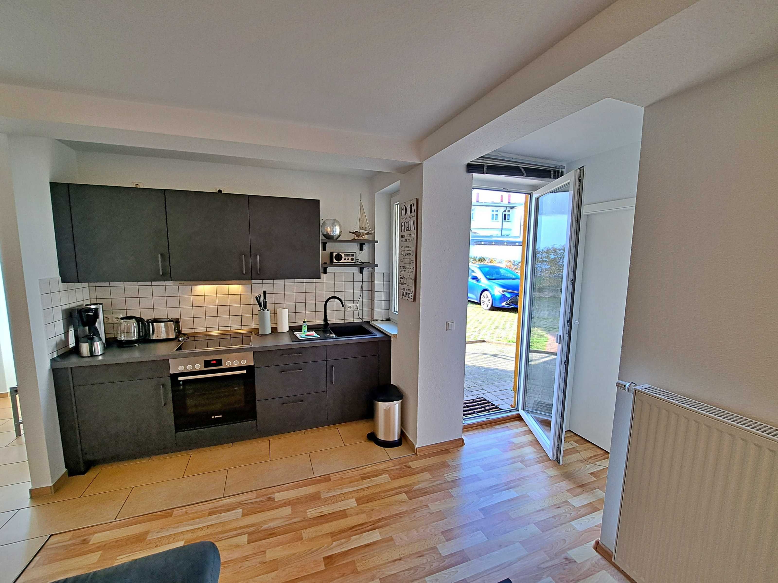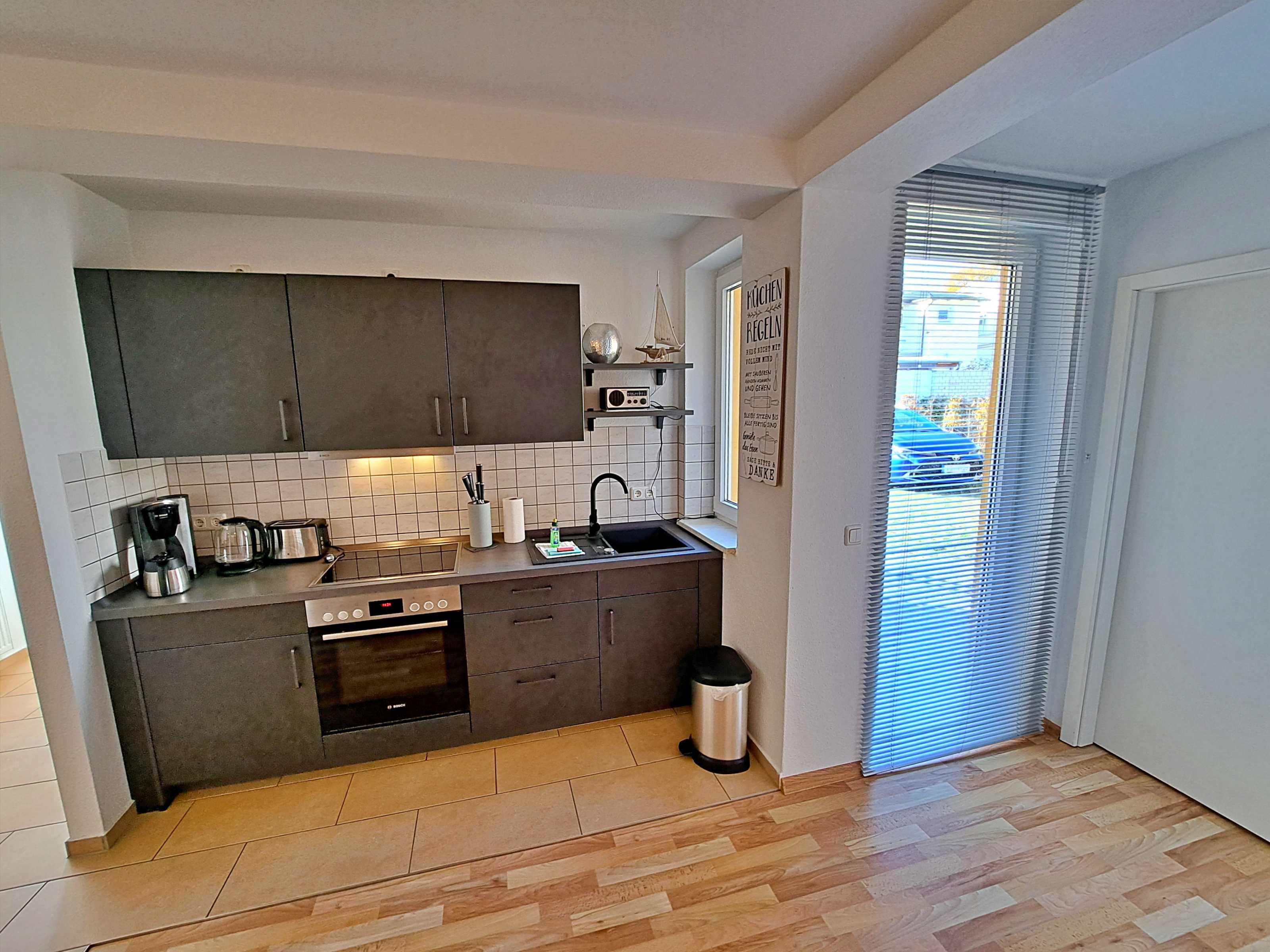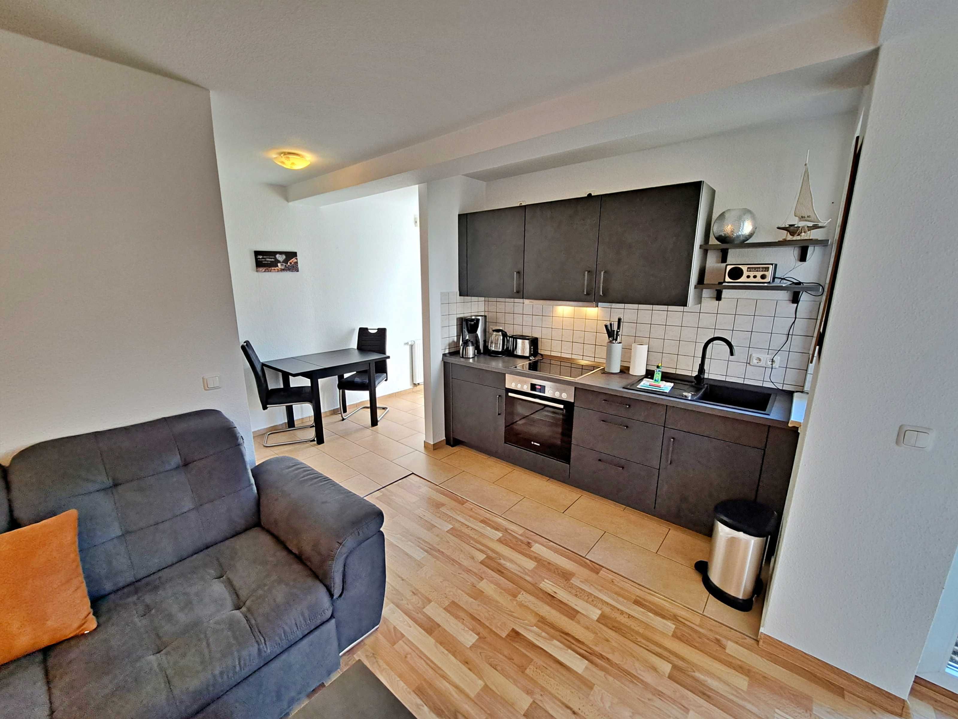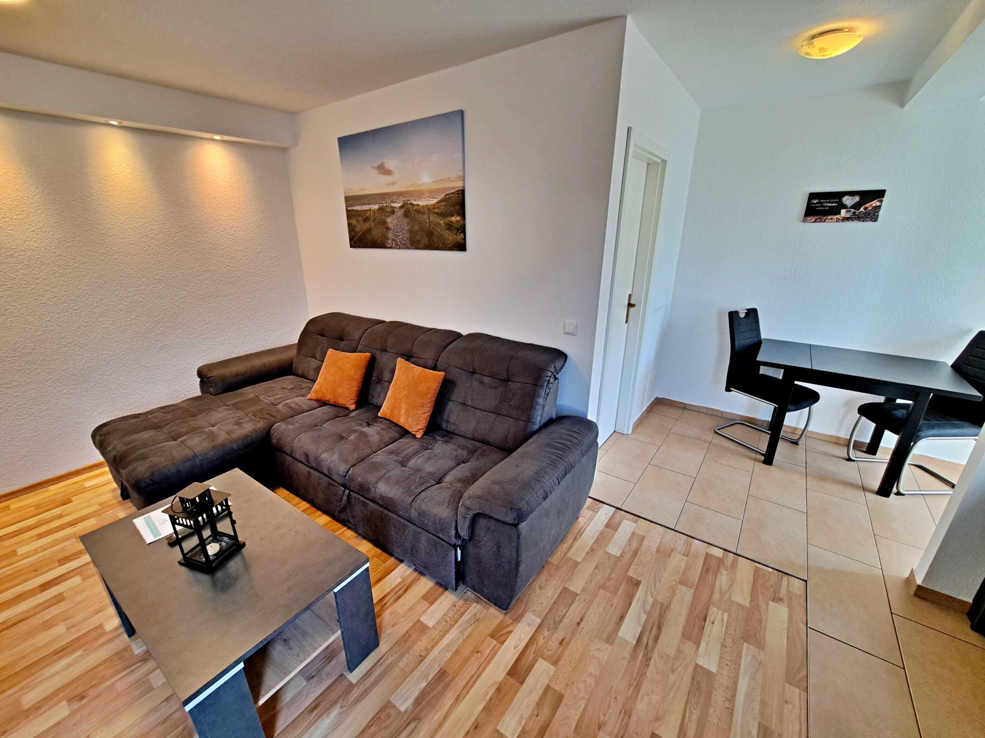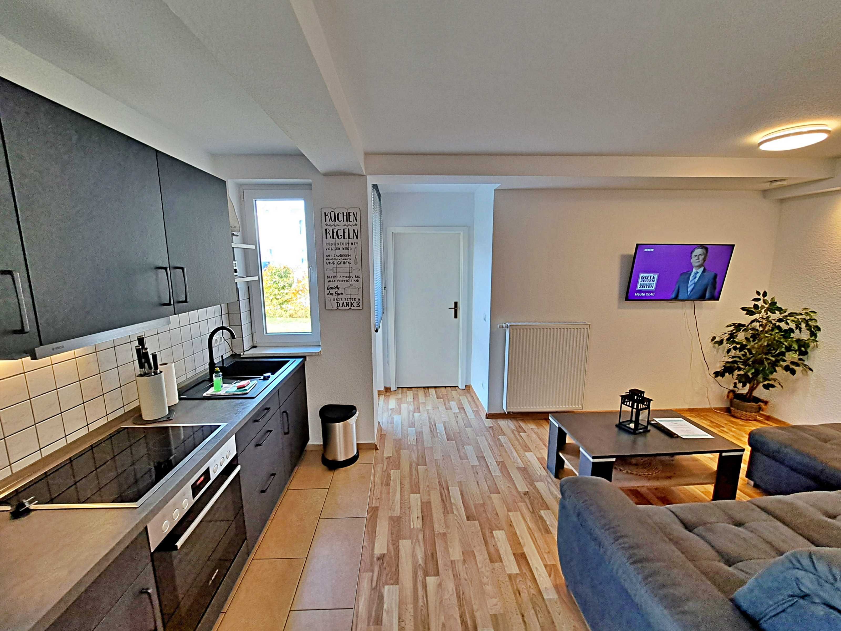 Herzlich willkommen in dieser einladenden Nichtraucher-Wohnung im Erdgeschoss des Nebengebäudes der Villa “Haus Bella”! Auf ca. 38 qm erwartet Sie eine moderne und gemütliche Unterkunft. Die Wohnung verfügt über ein Wohnzimmer, das mit einer bequemen Couchgarnitur ausgestattet ist, die auch als Schlafmöglichkeit für eine Person dient, Flachbild-TV sowie ein komfortables Schlafzimmer mit Doppelbett. Die bestens ausgestattete Küchenzeile bietet Ihnen alles, was Sie für die Zubereitung Ihrer Mahlzeiten benötigen, darunter einen Elektro-Herd, Backofen, Elektro-Herd, Kühlschrank, Wasserkocher, Kaffeemaschine und Toaster. Eine charmante Essecke rundet das Angebot ab. Das Badezimmer ist mit einer Dusche und WC ausgestattet und sorgt für Ihr Wohlbefinden. Als besonderes Highlight erwartet Sie eine eigene Terrasse, auf der Sie bei schönem Wetter bereits morgens Ihren Kaffee genießen oder den Tag bei einem Glas Wein entspannt ausklingen lassen können. Ein Stellplatz für Ihren PKW steht auf dem Grundstück zur Verfügung und natürlich genießen Sie in der gesamten Wohnung kostenfreies WLAN.