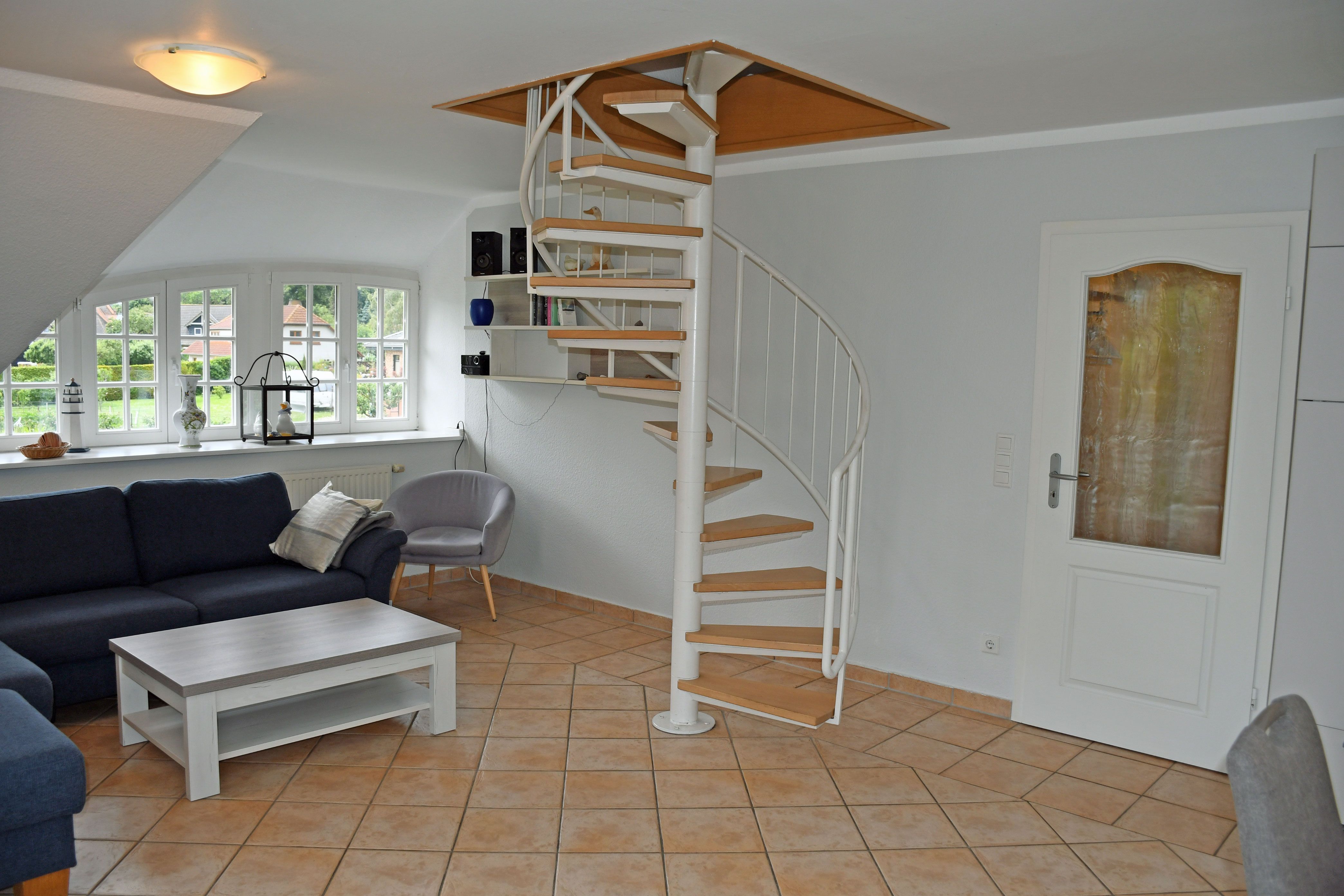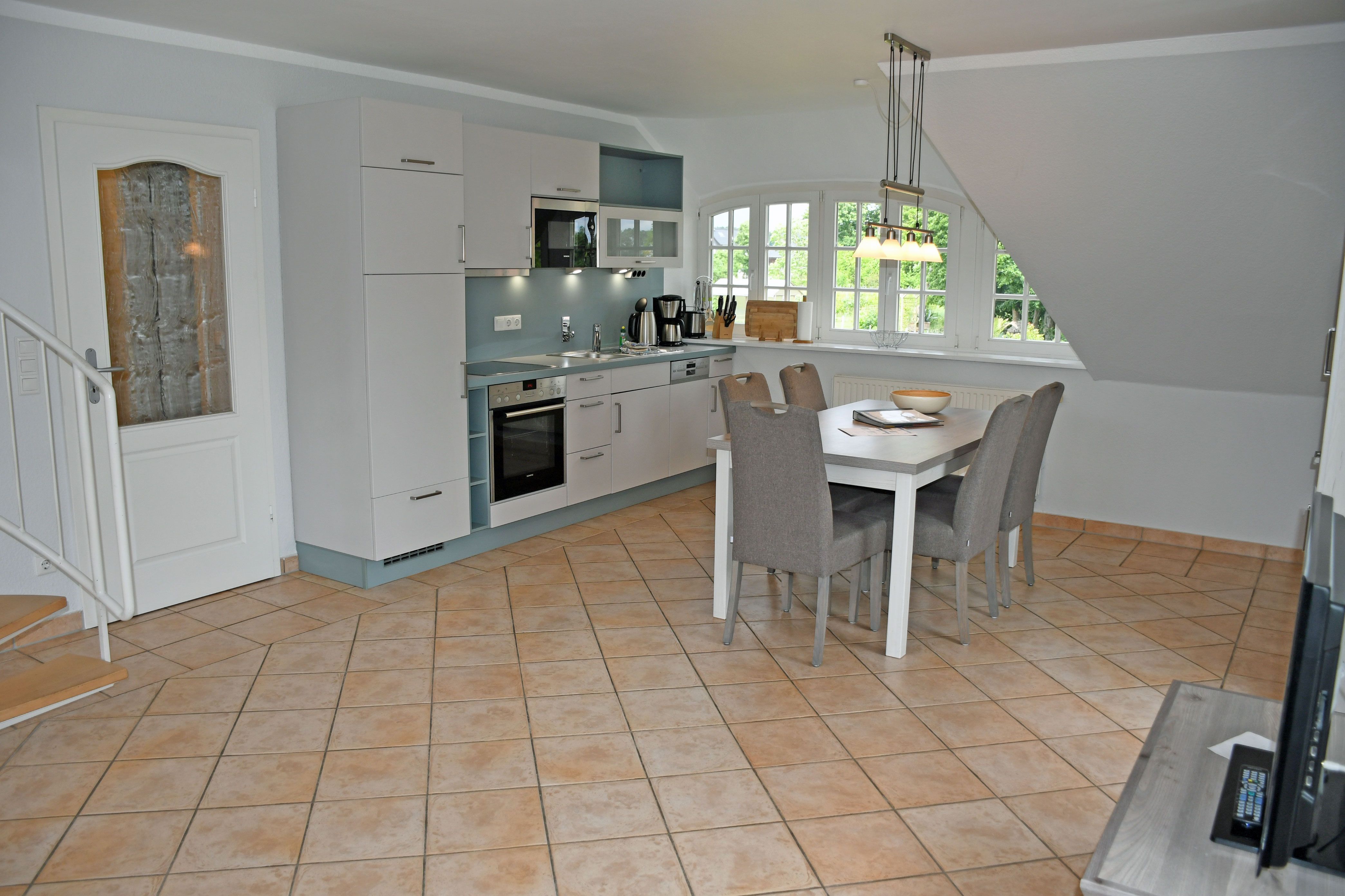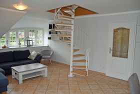 Diese wunderschöne Obergeschosswohnung verfügt über ca. 68 qm und wurde im Jahr 2018 renoviert und neu möbliert. Vom kleinen Balkon haben Sie einen herrlichen und weiten Blick nach 3 Seiten ins schöne Mönchguter Land. In der unteren Etage befindet sich ein Schlafzimmer mit einem gemütlichen Boxspringbett (180 x 200 cm) und in der oberen Etage - über eine Wendeltreppe aus dem Wohnzimmer erreichbar - ein Schlafbereich mit zwei Einzelbetten (90 x 200 cm).