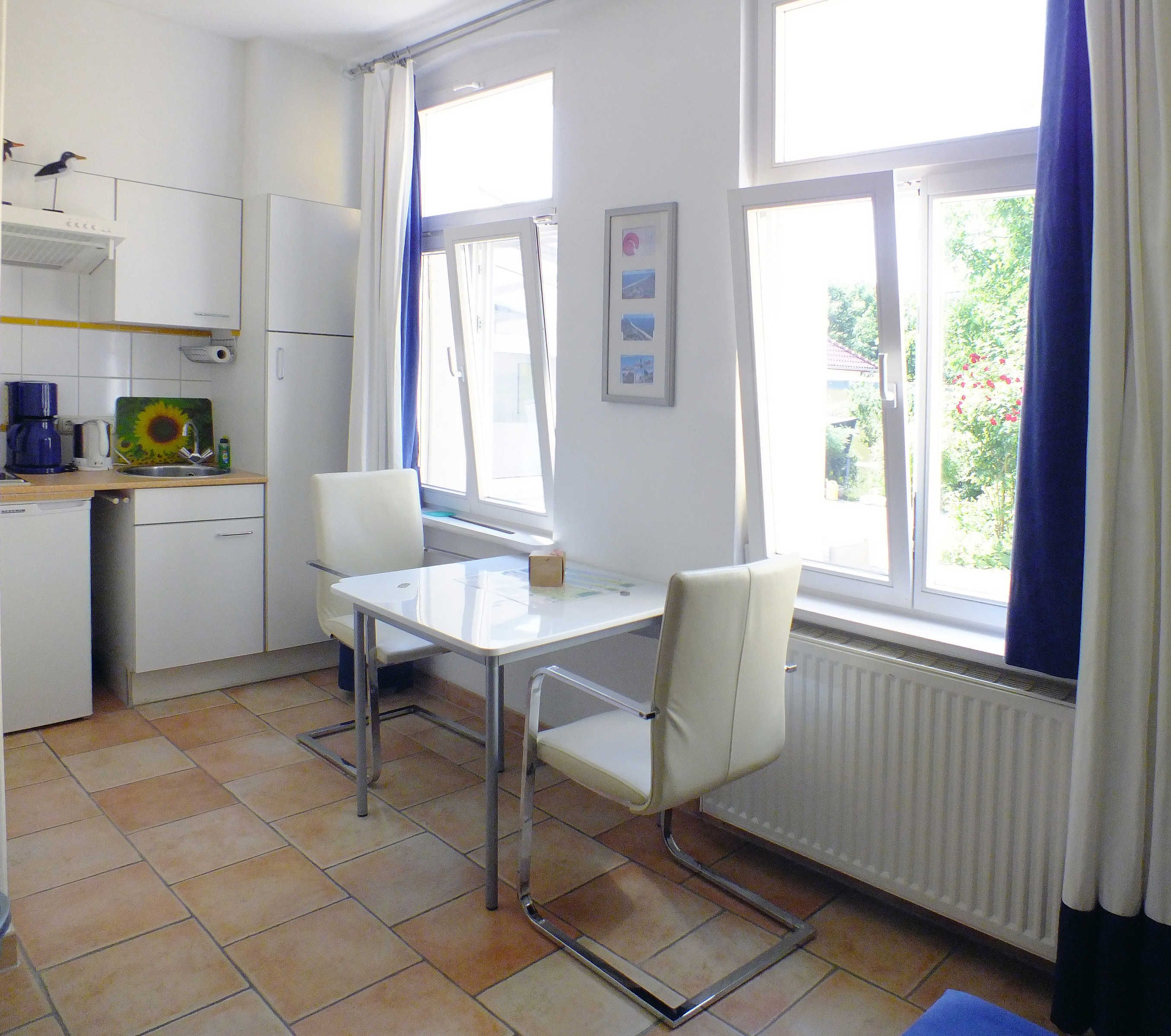 Bitte beachten Sie, dass alle Wohnungen Nichtraucher-Wohnungen sind. Das Rauchen ist ausschließlich außerhalb des Hauses möglich. Auf der Hofseite befinden sich eine Gemeinschaftsterrasse mit Tischen und Liegestühlen sowie eine kleine Grünfläche mit einer Schaukel und Sandkasten für die kleinen Gäste. Auf Anfrage sind Kinderbett und Kinderhochstuhl, in eingeschränkter Anzahl, kostenlos vorhanden.