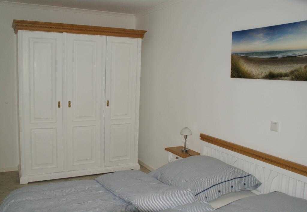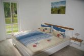 Weiterhin bietet die Ferienwohnung zwei Schlafzimmer mit Doppelbett und großzügigen Kleiderschrank. Im größeren Schlafzimmer findet ein Kinderbett noch Platz.