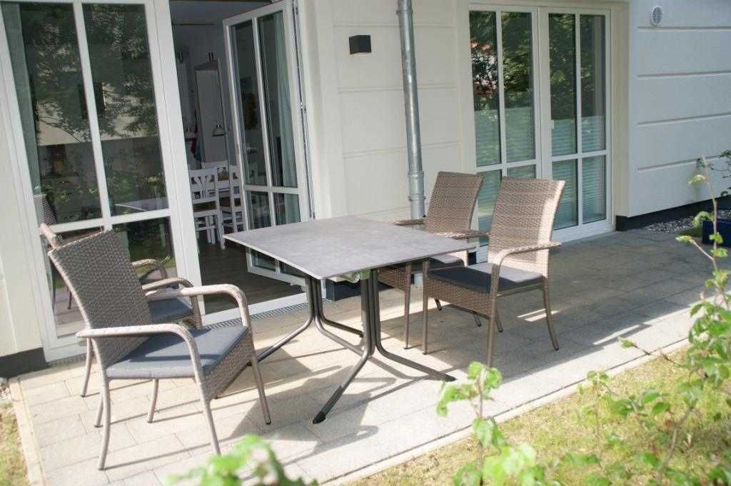 Auf der Terrasse können Sie im eigenen Strandkorb viele gemütliche Sonnen- und Abendstunden in Ostseeatmosphäre genießen.
