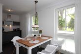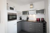 Die moderne Küche ist ausgestattet mit einem Cerankochfeld, Umluftbackofen, Geschirrspüler, Kühl-Gefrier-Kombination, Mikrowelle, Kaffeemaschine, Wasserkocher und Toaster.