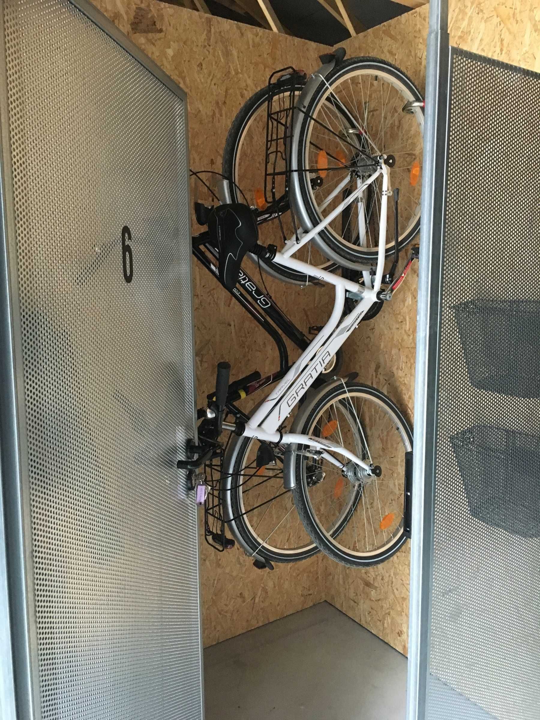 Im Nebengebäude kann ein abschließbarer Abstellraum für Fahrräder und Kinderwagen mit genutzt werden.