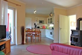 Das 75 m² große Ferienhaus in Freest befindet sich auf einem eigenen komplett umzäunten Grundstück. Die ruhige Lage in Wald- und Strandnähe lädt zur Erholung ein. Das Ferienhaus ist mit viel Liebe zum Detail komfortabel und gemütlich eingerichtet. Es verfügt über 2 separate Schlafzimmer mit einem Doppelbett oder zwei Einzelbetten, Wohnzimmer mit Kamin und Ledersofa, komplett ausgestatteter offener Küche mit Geschirrspüler und einem Bad mit Dusche, Föhn und Schminkspiegel. Im Hauswirtschaftsraum finden Sie eine Waschmaschine. Das Ferienhaus verfügt über elektrische Außenrollläden und Fußbodenheizung im ganzen Haus. Eine teilweise überdachte Terrasse mit Grillkamin und Gartenmöbeln ist vorhanden. Der PKW kann auf dem Grundstück abgestellt werden. Spiele und Bücher für die Abendgestaltung sind ebenso vorhanden wie ein Hochstuhl  für die Kleinsten.