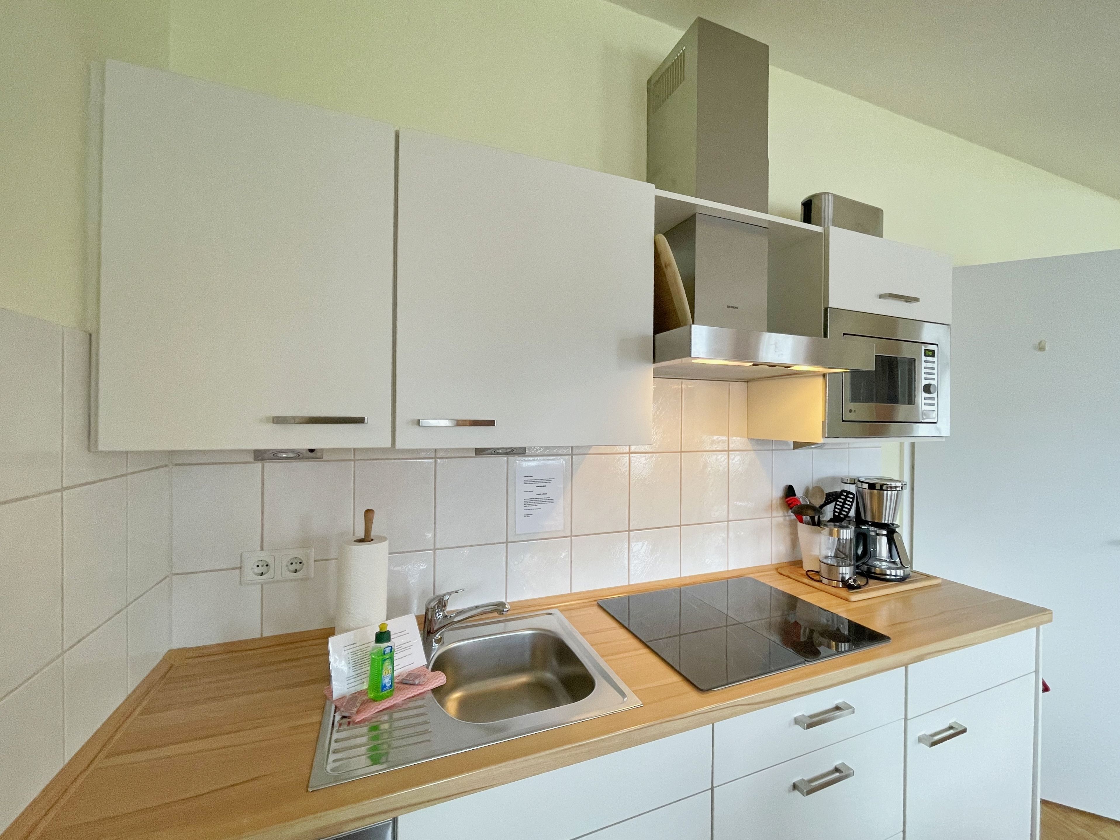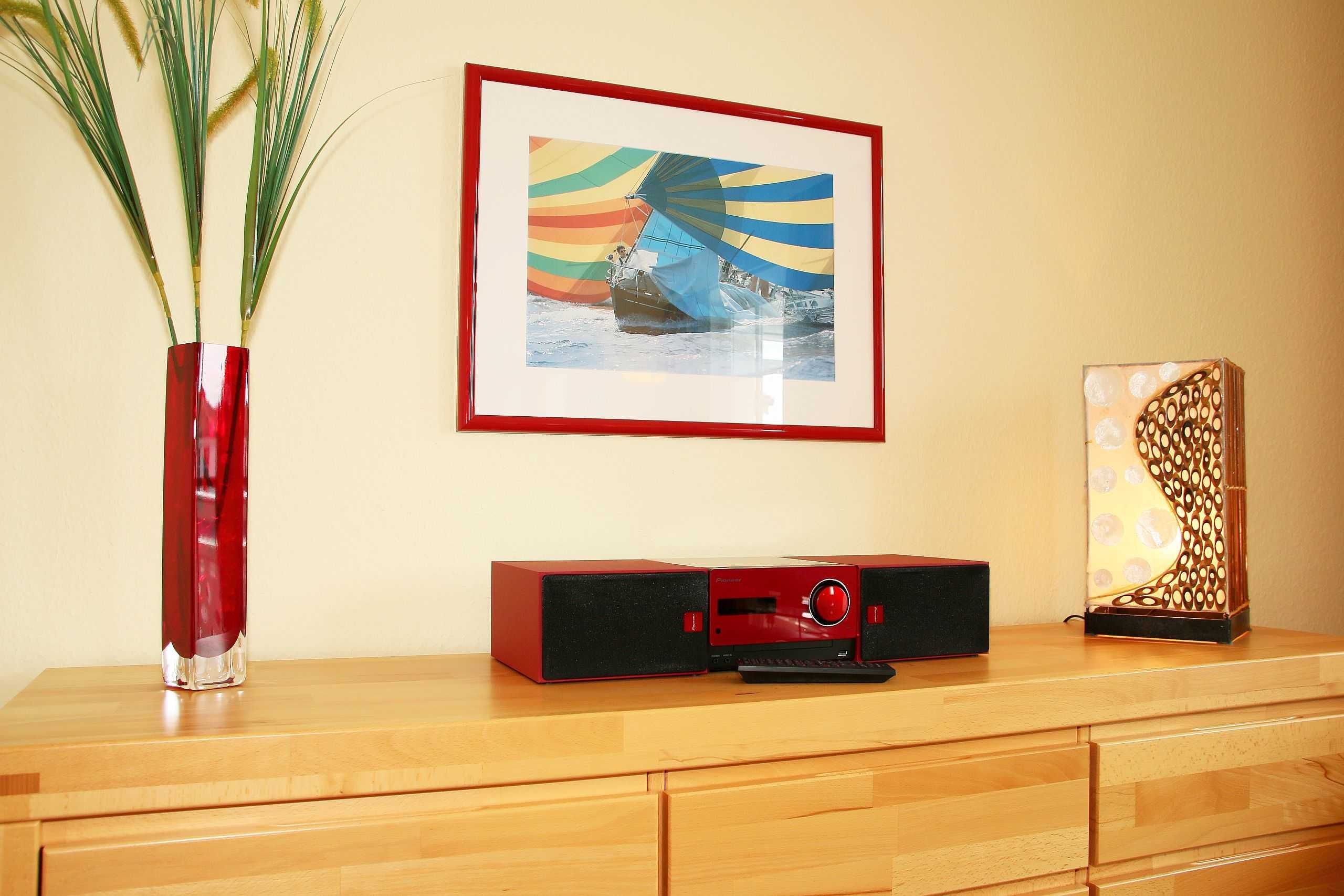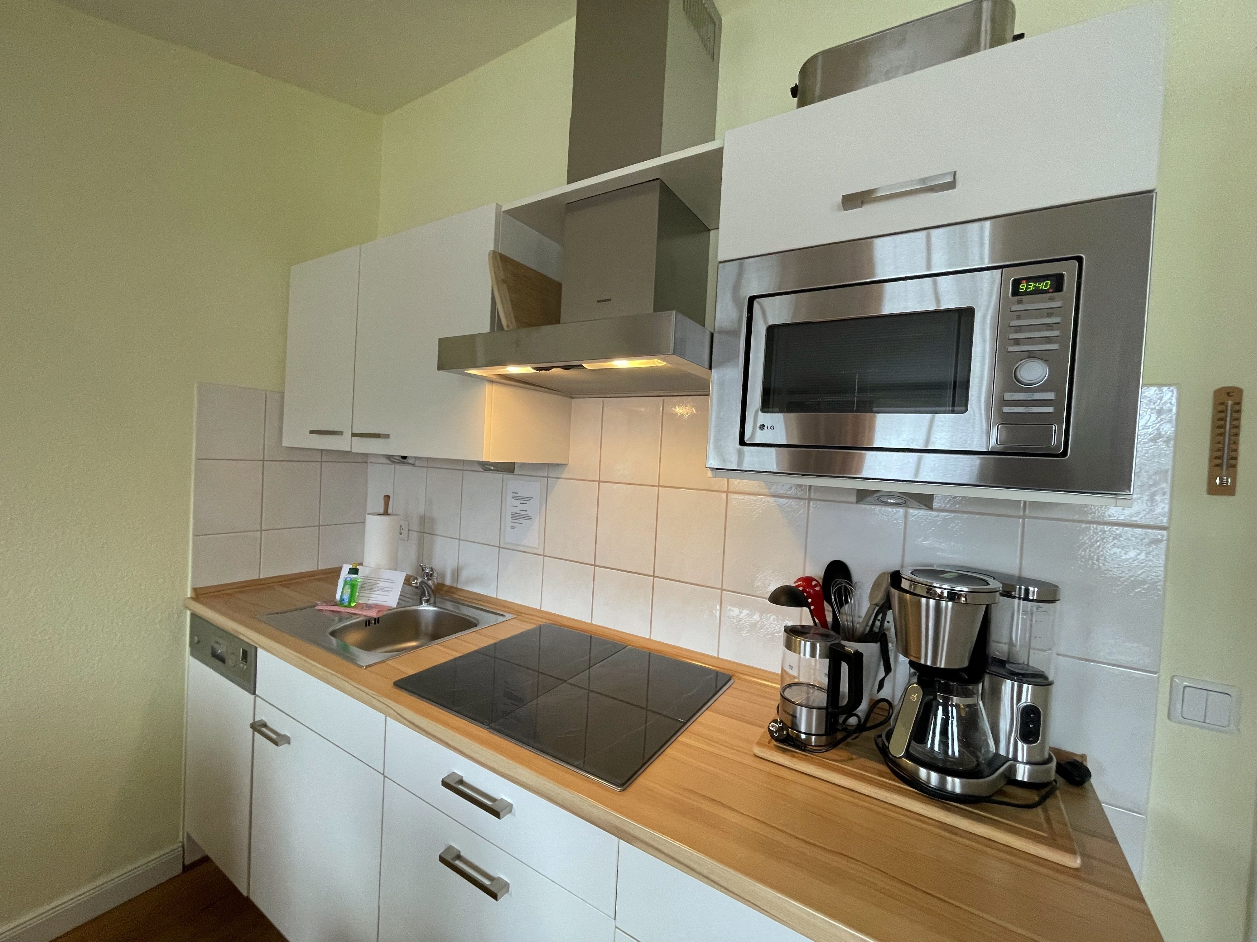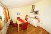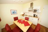 Die Nichtraucherferienwohnung Nr. 550 (Penthouse) befindet sich in der 3. Etage (Dachgeschoß). Sie ist mit ca. 57 qm hell und geräumig und bietet Ihnen Platz für 2 bis 4 Personen und 1 Kleinkind bis 3 Jahre im Kinderreisebett. In der Wohnung finden Sie einen kombinierten Wohn-/Koch- und Essbereich. Die integrierte, moderne Küchenzeile lässt mit einer eingebauten Mikrowelle mit Grillfunktion, Cerankochfeld, Geschirrspüler, Kühlschrank mit Eisfach, Kaffeemaschine, Toaster, Wasserkocher und anderen praktischen Helfern, die keine kulinarischen Wünsche offen lassen. Der Essplatz rundet diesen Bereich ab. Der angrenzende Wohnbereich ist geschmackvoll mit Massivholzmöbeln, einer Stehlampe, Couchtisch und einer gemütlichen Schlafcouch eingerichtet. Diese lässt sich in wenigen Handgriffen zur Schlafstätte (1,60 m x 2,00 m) für 2 weitere Personen umfunktionieren. Abgerundet wird der Wohnbereich mit einem Blu-Ray-Player, einer kleinen Hifi-Compactanlage (mit USB-Anschluss) sowie einem Flachbild-TV mit Sky (Auswahl von Sport, Film, Dokumentation). Erfreuen Sie sich an einer kleinen Buchauswahl und einigen Gesellschaftsspielen. Auch auf einen Internetanschluss (W-LAN) müssen Sie im Urlaub nicht verzichten. Dieser ist für Sie inklusive. Der bestuhlte Balkon, Richtung Osten, verfügt zusätzlich über einen Sonnenschirm und Relaxliegen. Begehbar ist der Balkon vom Wohnbereich. Das Schlafzimmer ist mit einem Doppelbett (1,80 m x 2,00 m), Nachttischkonsolen und Kleiderschrank ausgestattet. Verdunkelungsgardinen schützen in der Wohnung vor fremden Blicken von außerhalb. Im gefliesten Badezimmer befindet sich eine Badewanne mit Duschabtrennung, Waschplatz, WC und Fön. Insektenschutzgitter befinden sich in allen Räumlichkeiten. In der Wohnung finden Sie einen Staubsauger und einen Wäschetrockner für den Balkon. Ein eigener PKW-Stellplatz (Nr. 116) befindet sich in der Tiefgarage (Einfahrtshöhe 1,80 m) des Hauses. Hier befindet sich auch ein allgemeiner Fahrradraum, wo Sie ihre mitgebrachten Fahrräder unterstellen können. Haustiere sind nicht erlaubt. Die Erstausstattung eines Wäschepaketes (komplette Bettwäsche, 1 Duschhandtuch, 2 kleine Handtücher) können Sie bis 14 Tage vor Anreise gegen einen Aufpreis dazu buchen oder durch eigene ergänzen. Ab 2 gebuchten Paketen erhalten Sie einmalig 1 Geschirrhandtuch und 1 Duschvorleger dazu.