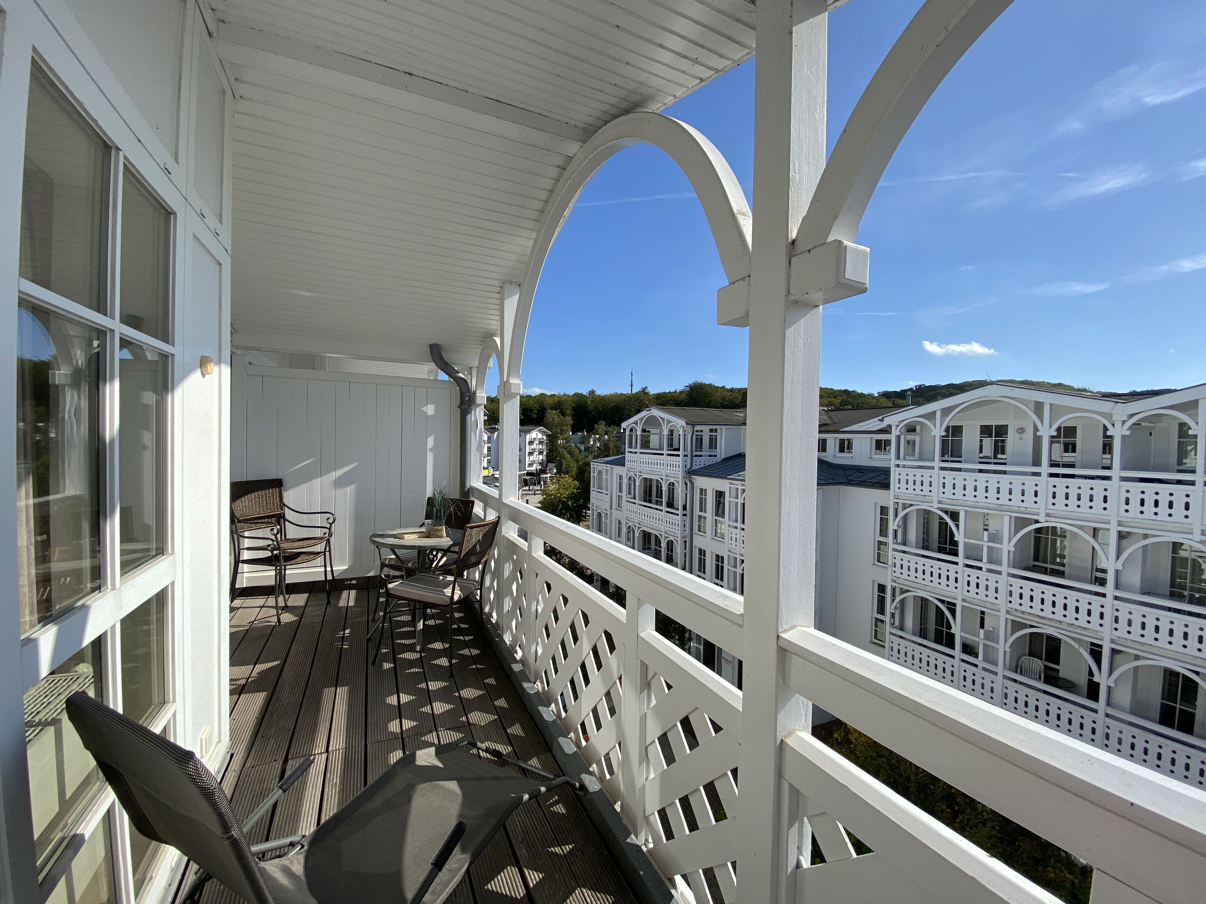 Beginnen Sie die Tage Ihrer schönsten Zeit des Jahres mit dem Frühstück auf dem Balkon in der Morgensonne. Ihre helle Ferienwohnung 550 befindet sich im Dachgeschoss und verfügt über einen großen Balkon mit Ausrichtung gen Osten. Der gepflegte Seepark Sellin mit seinen weißen Häusern wurde in klassischer Bäderarchitektur erbaut. Die in der Anlage beginnende Seeparkpromenade führt Sie bequem zum Ortskern über die anschließende Wilhelmstraße direkt zum Strand und der berühmten Seebrücke. Der Südstrand ist ca. 750 m entfernt. Nutzen Sie die Bäderbahn als Shuttle zu den beiden Stränden. Der Seepark bietet zu jeder Jahreszeit einen abwechslungsreichen und erholsamen Aufenthalt. Nebenan befindet sich das ganzjährig geöffnete Erlebnisbad Ahoi! mit Wasserattraktionen sowie Sauna- und Wellnessangeboten. Restaurants, Einkaufsmöglichkeiten und die Haltestellen der Schmalspurbahn Rasender Roland, der Linienbusse und der Bäderbahn (mit Kurkarte kostenlos) befinden sich in der Anlage. Und dann gibt es ja auch noch die Schiffsverbindungen. Von der Selliner Seebrücke aus können Sie z. B. direkt nach Sassnitz, Binz oder Göhren zum Nachmittagsbummel übersetzen oder Sie entscheiden sich für eine Rundfahrt und schippern Richtung Kap Arkona zur legendären Kreideküste und den spektakulären Königsstuhl.