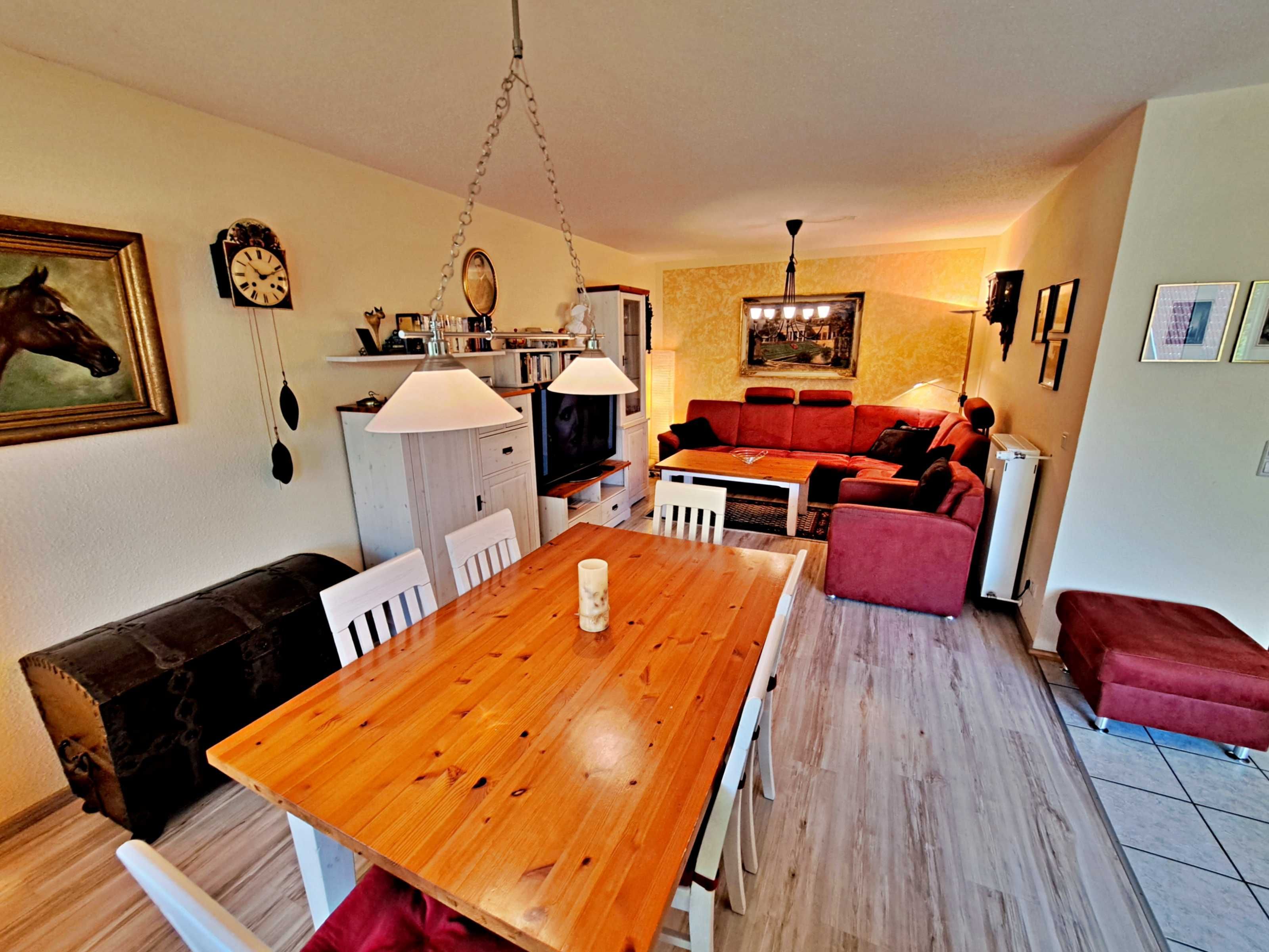 Charmant, freundlich und komfortabel - Diese einladende 3-Raum-Ferienwohnung im Haus Karavelle erstreckt sich über zwei Etagen im 2. Obergeschoss und bietet Ihnen alles, was Sie für einen entspannten Aufenthalt benötigen. Beim Betreten der Wohnung gelangen Sie in die großzügige Diele, die Sie in den hellen Wohnbereich mit einer modernen Küchenzeile und einem Esstisch für bis zu sechs Personen führt. Die Küche ist bestens ausgestattet mit einem 4-Plattenherd, Backofen, Spülmaschine, Kühlschrank, Mikrowelle und Geschirr - hier können Sie Ihre kulinarischen Fähigkeiten entfalten! Im gemütlichen Wohnzimmer erwartet Sie eine bequeme Eckcouch, ein Flat-TV und ein CD-Player - ideal für entspannte Abende. Der angrenzende Wintergarten lädt dazu ein, das Frühstück in aller Ruhe zu genießen oder den Tag bei einem Glas Wein ausklingen zu lassen, während Sie die eingeschränkte Sicht auf das Meer bewundern. Das Badezimmer ist mit einer großzügigen Dusche und WC ausgestattet. Im Obergeschoss finden Sie zwei separate Schlafzimmer: eines mit einem Doppelbett und einem zweiten TV sowie ein weiteres Schlafzimmer mit einem Doppel- und einem Einzelbett. Ein Gäste-WC, das von beiden Schlafzimmern zugänglich ist, sorgt für zusätzlichen Komfort. Auf Anfrage wird gerne ein Kinderreisebett und einen Hochstuhl kostenfrei zur Verfügung gestellt. Ein Pkw-Stellplatz auf dem umzäunten Grundstück steht Ihnen ebenfalls zur Verfügung. Für Ihre Wäsche können Sie gegen Entgelt eine Waschmaschine und einen Wäschetrockner im Objekt nutzen. Die Erstausstattung Bettwäsche und Handtücher kann bei der Buchung der Ferienwohnung für nur 17,50 € pro Person hinzugebucht werden. WLAN-Zugang ist für ein Gerät kostenfrei, für jedes weitere Gerät werden 10 € pro Woche berechnet.