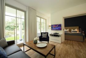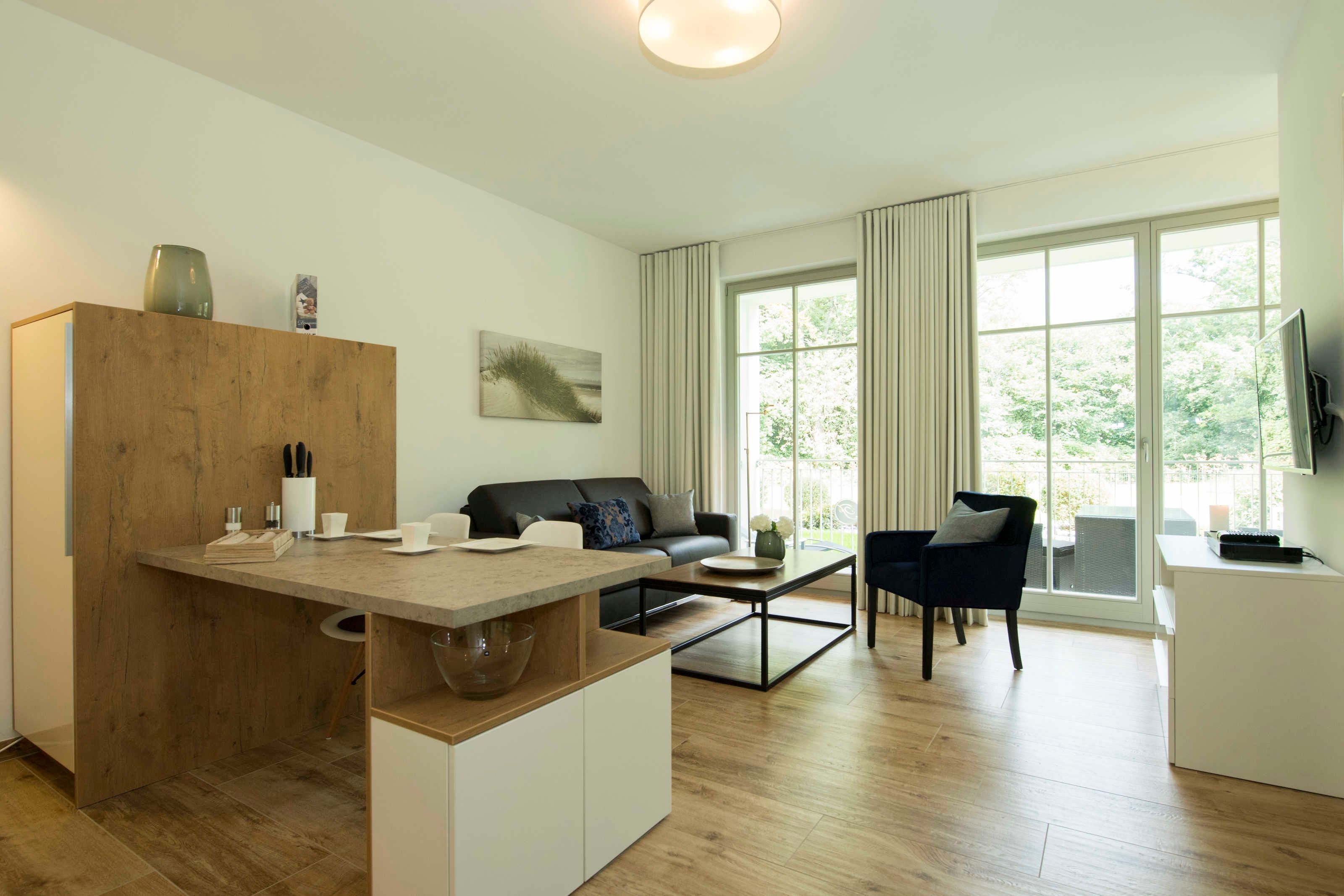Die Wohnung 01 ist eine von 9 Wohneinheiten in der Villa Pauline. Sie liegt in einer exponierten Hochuferlage und bietet mit ihrer ruhigen Lage den optimalen Mix zwischen Badeurlaub, Aktivität und Entspannung. Hier können Sie neue Kräfte sammeln. Die Wohnung ist stilvoll und harmonisch eingerichtet. Vom Balkon im Erdgeschoss kann man direkt auf die Waldpromenade blicken und das Meer hören. Den feinen flach abfallenden kilometerlangen Sandstrand erreicht man in wenigen Minuten und bei Bedarf ganz bequem über einen Fahrstuhl.