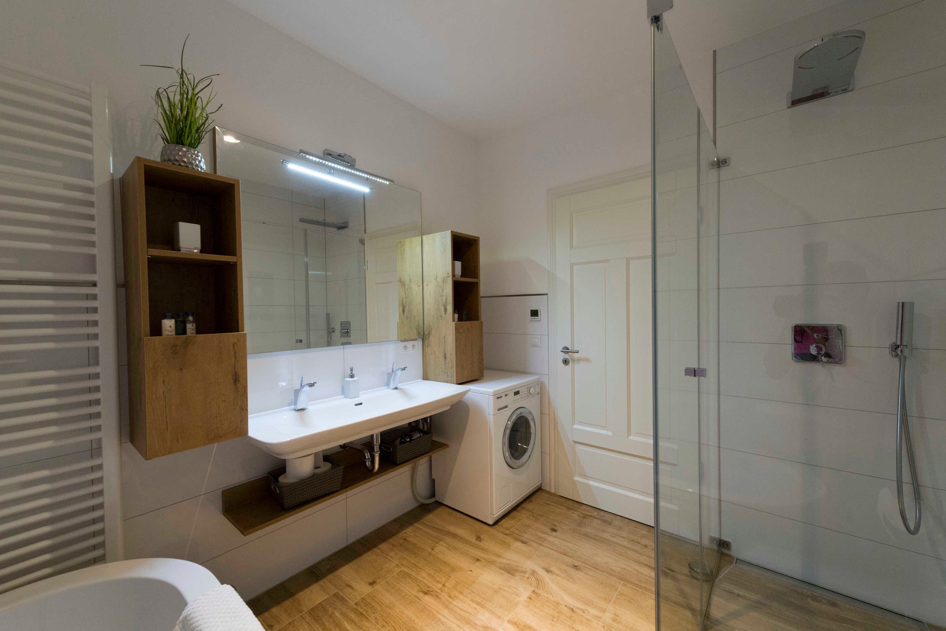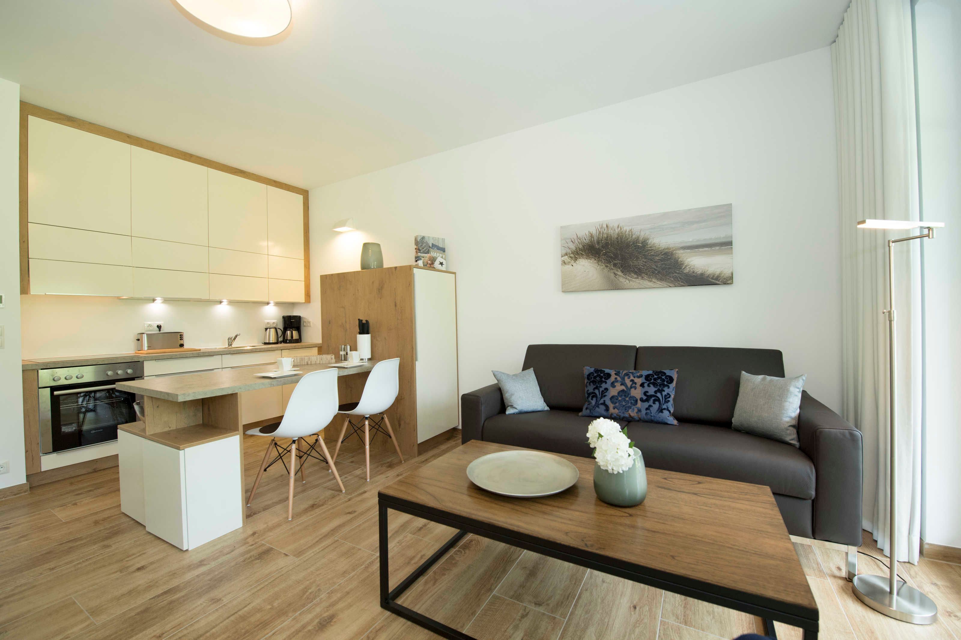 Die komfortable, harmonisch eingerichtete 2-Zimmer Ferienwohnung besticht mit durchdachter Raumaufteilung. Auf ca. 50 m² ist diese Nichtraucherwohnung mit viel Liebe zum Detail eingerichtet. Sie ist ausgestattet für 2 Erwachsene + 1 Kleinkind bis 3 Jahre im Kinderreisebett. Die hochwertig eingerichtete Einbauküche befindet sich im kombinierten Koch-/ Ess-/Wohnbereich einschließlich Geschirrspüler, Kühlschrank mit Eisfach, Backofen, 4 Zonen-Cerankochfeld, Mikrowelle, Kaffeemaschine, Toaster, Wasserkocher, Mixer und diversen Küchenutensilien. Der helle Ess-/Wohnbereich wird bestimmt durch ausschließlich bodentiefe Glaselemente, die einen weitläufigen Blick auf das Hochuferplateau zulässt. Auf einen Flachbild-LED-TV im Wohn-und Schlafraum und auch auf einen Internetanschluss (WLAN) müssen Sie im Urlaub nicht verzichten. Ein Blu-Ray-Player rundet den Wohnbereich im technischen Bereich ab. Der bestuhlte, zur Ostsee nach Norden ausgerichtete Balkon, ist über das Wohn- und Schlafzimmer begehbar. Für den erholsamen Schlaf erwarten Sie im Schlafzimmer ein bequemes Doppelbett mit 4 Gang-Bonell-Federkern Matratzen (1,80m x 2,00m), ein Kleiderschrank, Nachttischablagen, Safe, Wecker sowie eine Verdunklungsmöglichkeit. Insektenschutzgitter runden die Räume ab. Im Bad tragen eine ebenerdige, komfortable Regendusche mit Echtglasabtrennung, ein Fön, ein Kosmetikspiegel, ein Waschplatz mit Unterschrank sowie eine freistehende Badewanne zu Ihrer Entspannung bei. Eine Wohnungseigene Sauna und eine Waschmaschine mit Trockner rundet den hochwertigen Komfort ab. In allen Räumlichkeiten erwarten Sie hochwertige Fliesen mit einer Fußbodenheizung. Ein separater und wohnungseigener Abstellraum in dem unteranderem Bügel- und Reinigungsutensilien Ihren Platz haben befindet sich im Hausflur des Hauses. Der Garten hinter dem Haus ist als Ziergarten angelegt. Im abschließbaren Nebengebäude können Sie Ihre Fährräder sicher unterstellen. Der PKW kann auf dem kostenfreien Stellplatz (Nr. 01) direkt vor dem Haus geparkt werden. Die Erstausstattung eines Wäschepaketes (komplette Bettwäsche, 1 Duschhandtuch, 2 kleine Handtücher) können Sie bis 14 Tage vor Anreise gegen einen Aufpreis dazu buchen oder durch eigene ergänzen. Ab 2 gebuchten Paketen erhalten Sie einmalig 1 Geschirrhandtuch und 1 Duschvorleger hinzu. Wir wünschen Ihnen einen angenehmen Ferienaufenthalt.