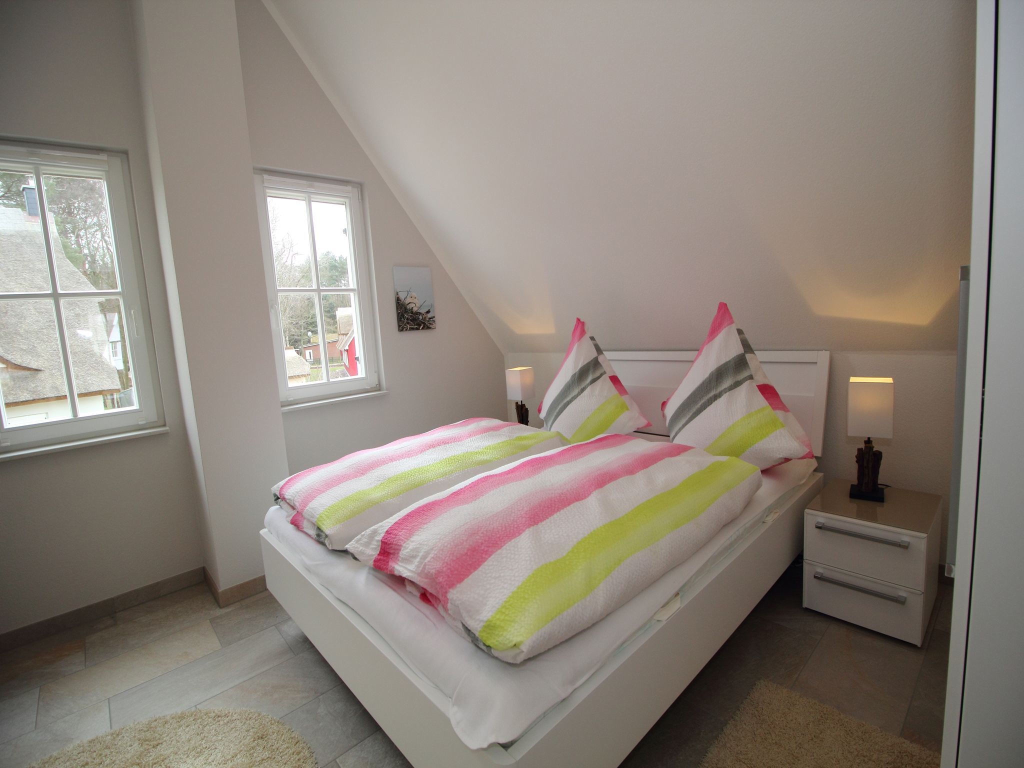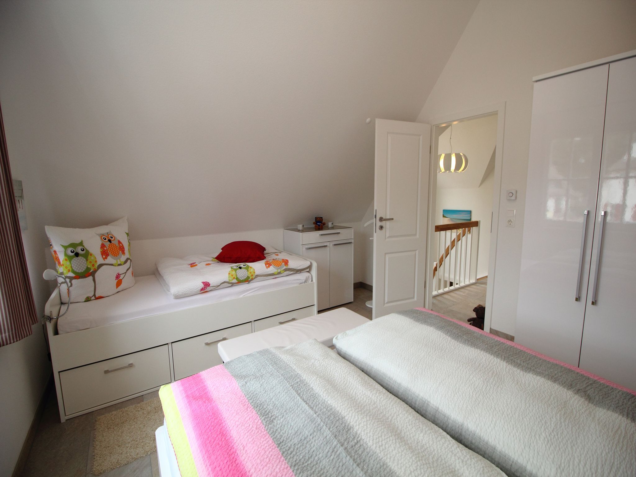 Im Obergeschoss finden Sie 2 freundliche Schlaf­zim­mer vor: