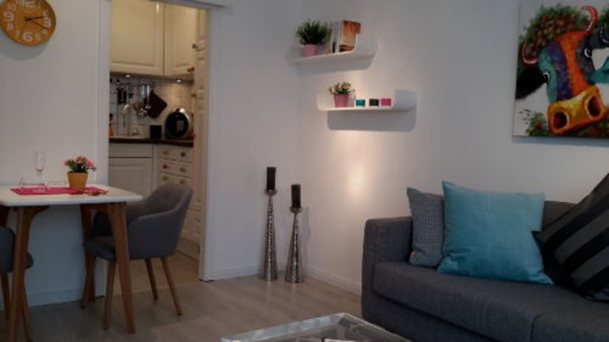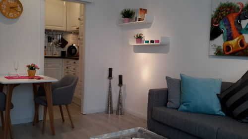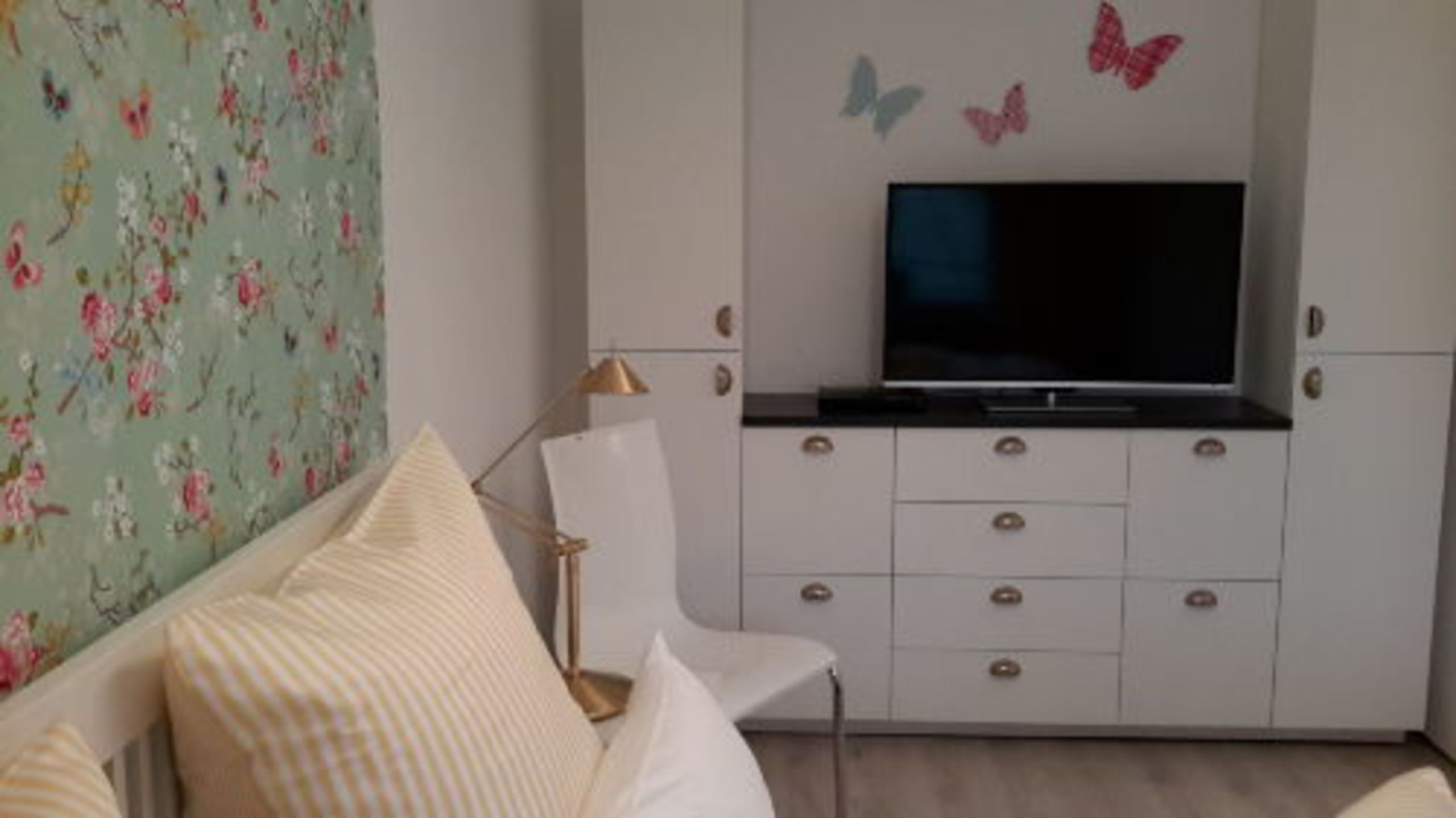 Die lichtdurchflutete Wohnung liegt in der 3. Etage und besteht aus einem gemütlichen Wohnzimmer mit Essplatz und einem Schlafzimmer mit Doppelbett und riesigem Schrank. In beiden Räumen wird man mit TV-Flachbildschirmen mit Kabelanschluss, Blu-Ray-Playern und Mückenschutzgittern verwöhnt. Eine Einbauküche, ein Duschbad und ein Balkon mit Gartenmöbeln komplettiert die Ferienwohnung.
