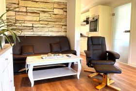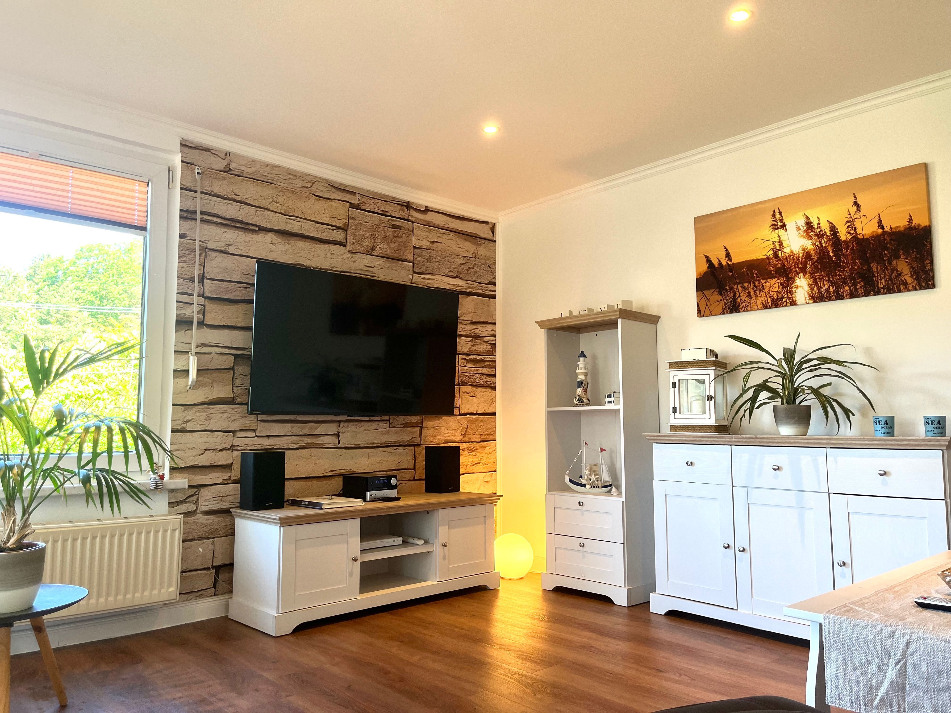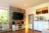 Es verfügt über einen großen Wohnraum mit SMART-TV inkl. HD+ (55 Zoll), HiFi-Alage mit CD, USB und Bluetoothfunktion und einen Bluray-Player. Die Schlafcouch bietet die Möglichkeit einer zusätzlichen Aufbettung. Eine gemütlichen Sitzecke im Eingangsbereich lädt zum Verweilen ein, von hier aus haben Sie einen tollen Blick auf Wald und Natur.