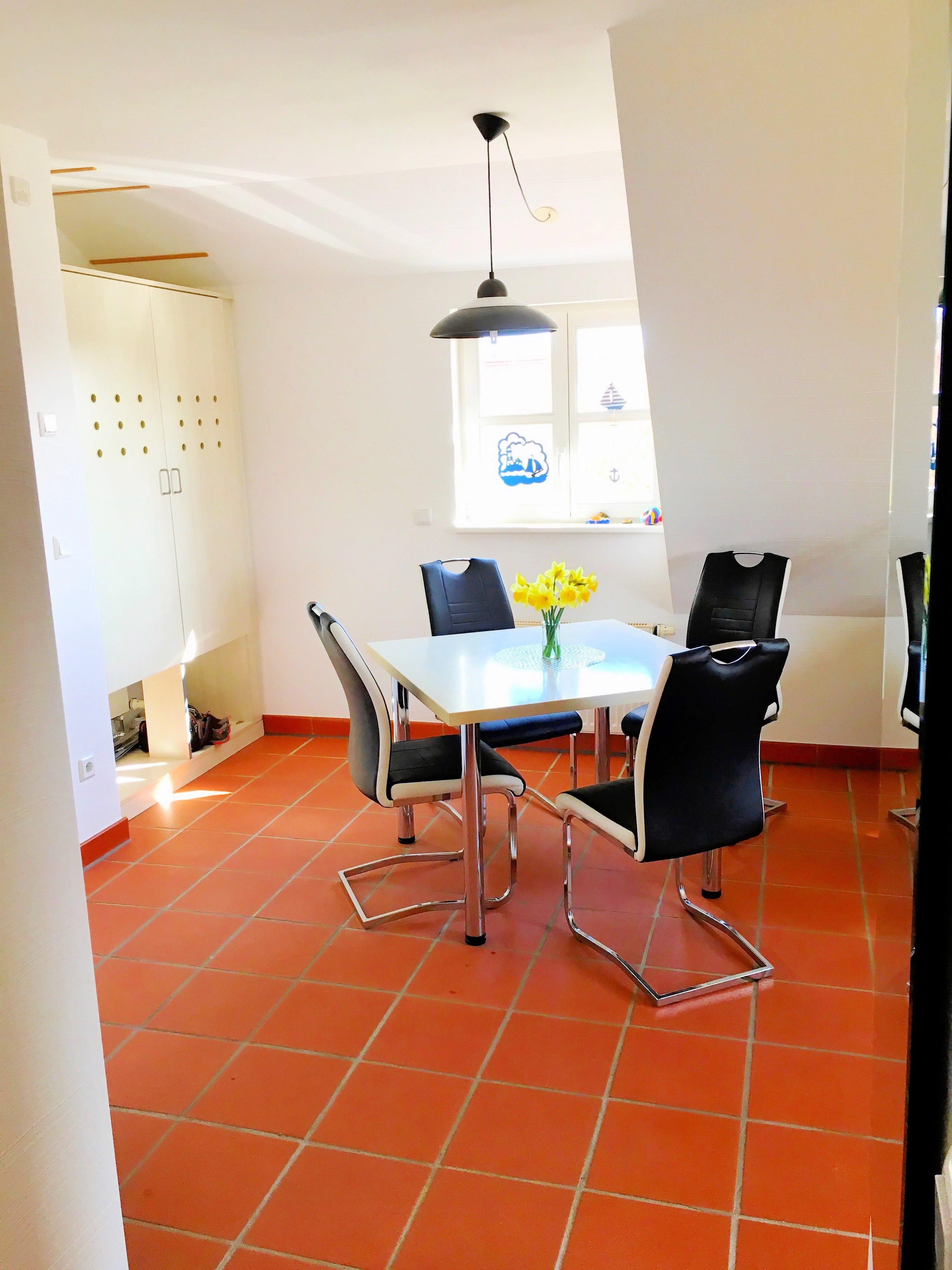 Die hübsche Ferienwohnung liegt im ersten Geschoss eines Ferienhauses mit 4 Wohneinheiten. Die Wohnung ist praktisch und doch gemütlich eingerichtet. Das Wohnzimmer ist mit einer großen einladenden Couch, die auch als Doppelbett ausgezogen werden kann, und einer bequemen Essecke ausgestattet. Auch bei etwas schlechterem Wetter kann man sich hier wohl fühlen und die Zeit mit einem Buch aus der kleinen Urlauberbibliothek oder einem Familienspiel genießen. Für das leibliche Wohl ist die kleine Küchenzeile ausreichend ausgestattet. Zur Wohnung gehören außerdem ein separates Schlafzimmer mit einem Doppelbett und ausreichend Schränken. Hier können Sie Ihren Urlaub in absolut ruhiger Lage direkt am Küstenwald ohne Straßenlärm genießen.