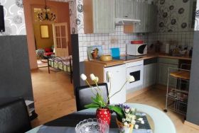 Eine Terrasse und ein Garten sind vorhanden. Der Parkplatz ist kostenfrei und befindet sich auf dem Grundstück. Für jede Ferienwohnung steht 1 PKW Stellplatz zur verfügung. Die Unterkunft ist perfekt für Familien/Paare geeignet. Haustiere sind im eigenen Körbchen herzlich willkommen. Gut ausgebaute Rad- und Wanderwege befinden sich direkt vorm Grundstück.