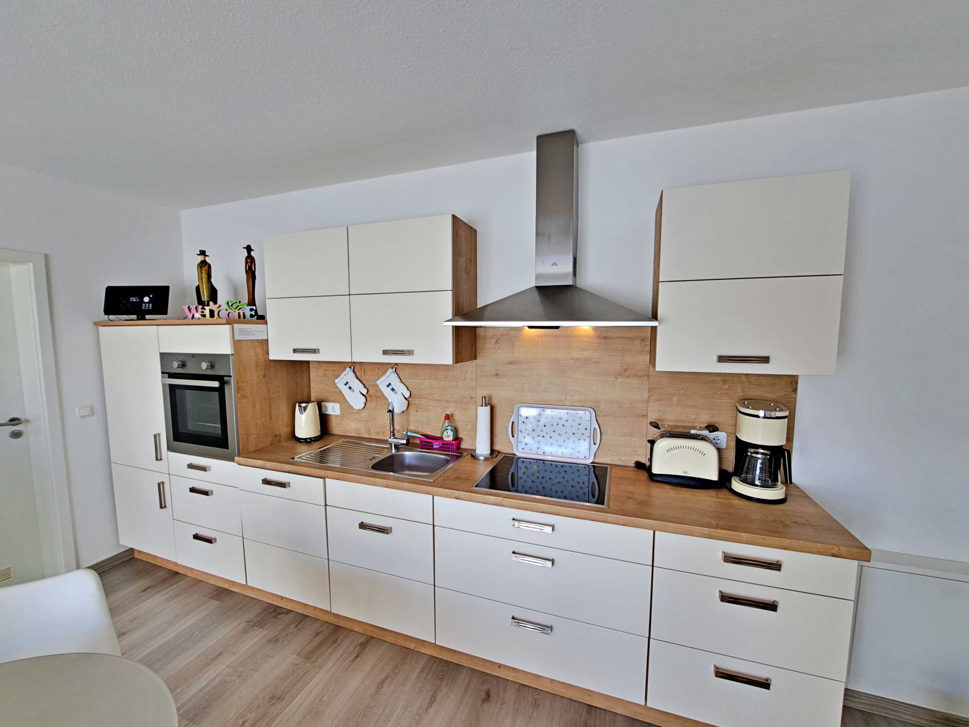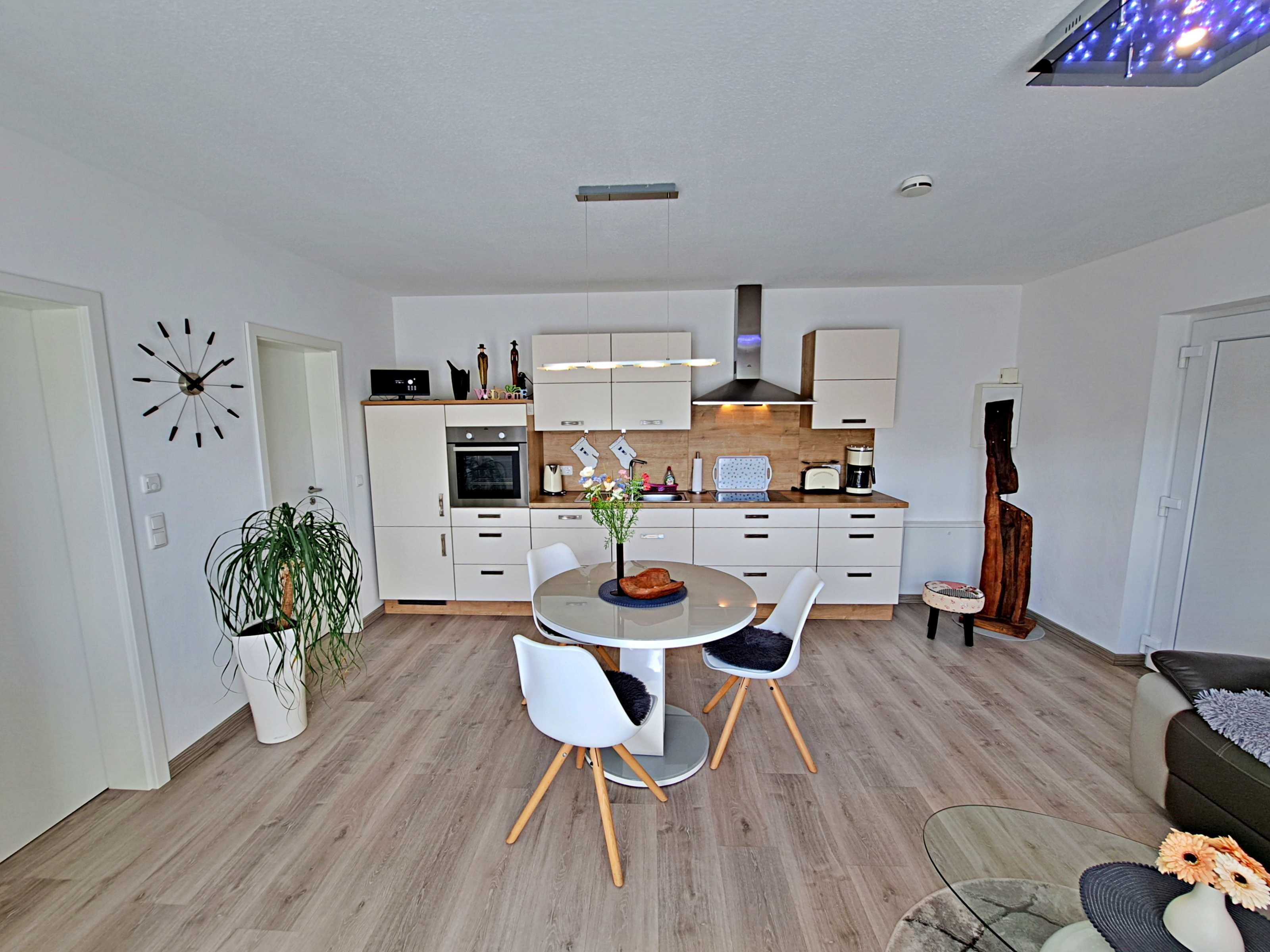 Der einladende Wohnbereich ist mit einer offenen Küche ausgestattet, die alles bietet, was Sie für Ihre kulinarischen Abenteuer benötigen - von einem Cerankochfeld über einen Geschirrspüler bis hin zu einem Backofen und Kühlschrank. Genießen Sie Ihre Mahlzeiten am gemütlichen Essplatz oder entspannen Sie auf der Eckcouch und dem gemütlichem Fernsehsessel mit Flachbild-TV.