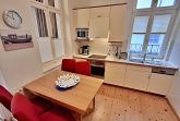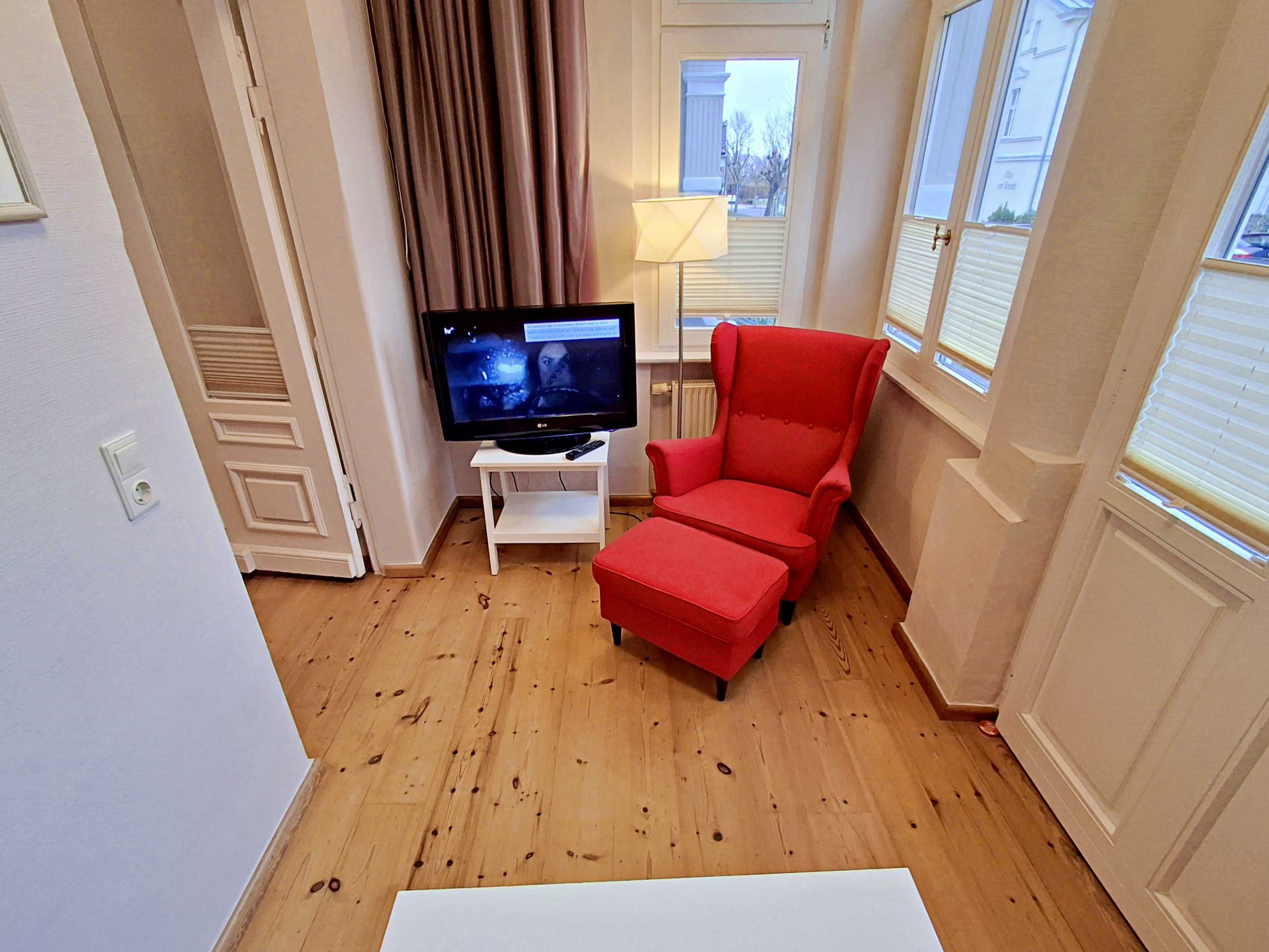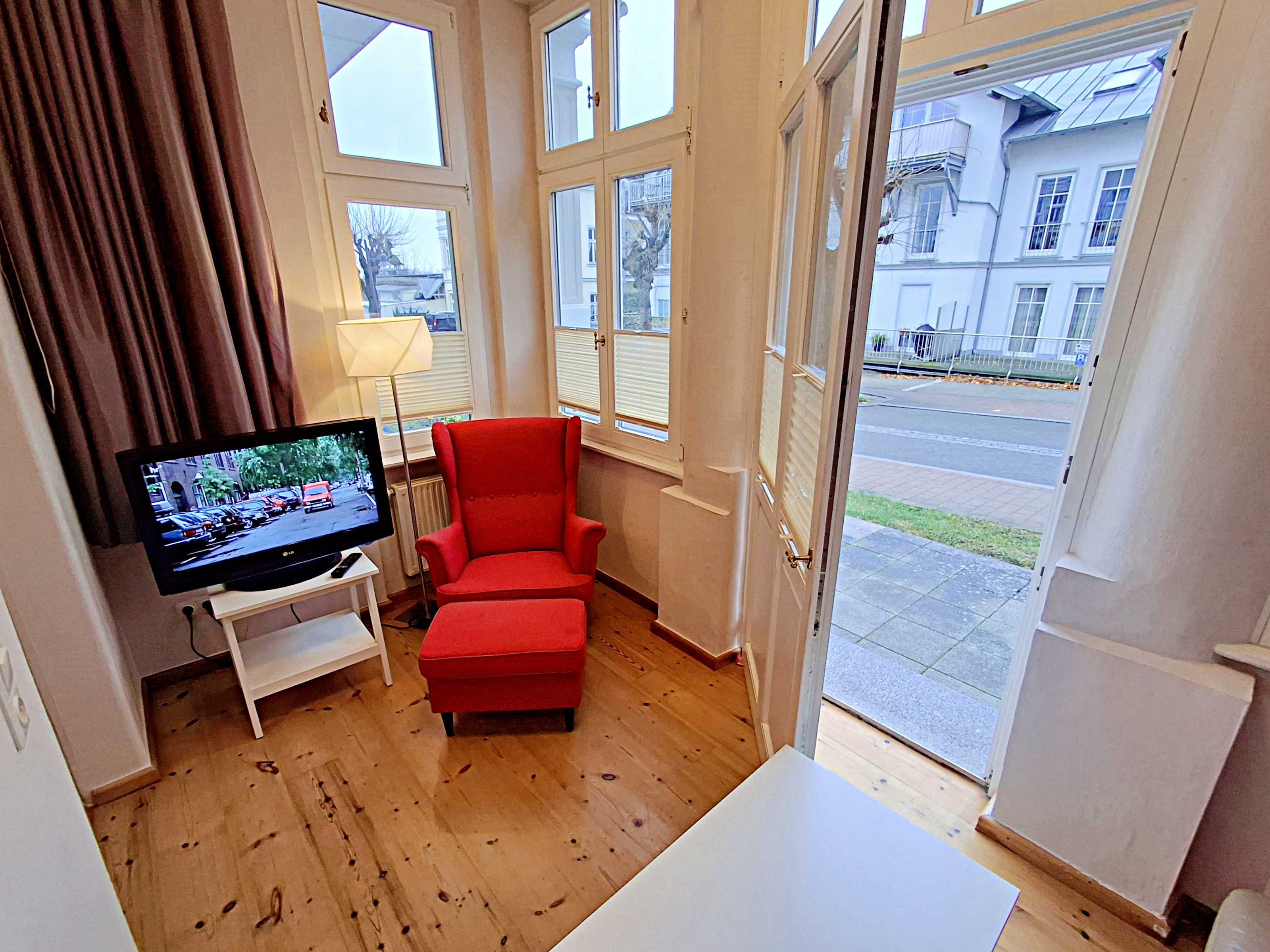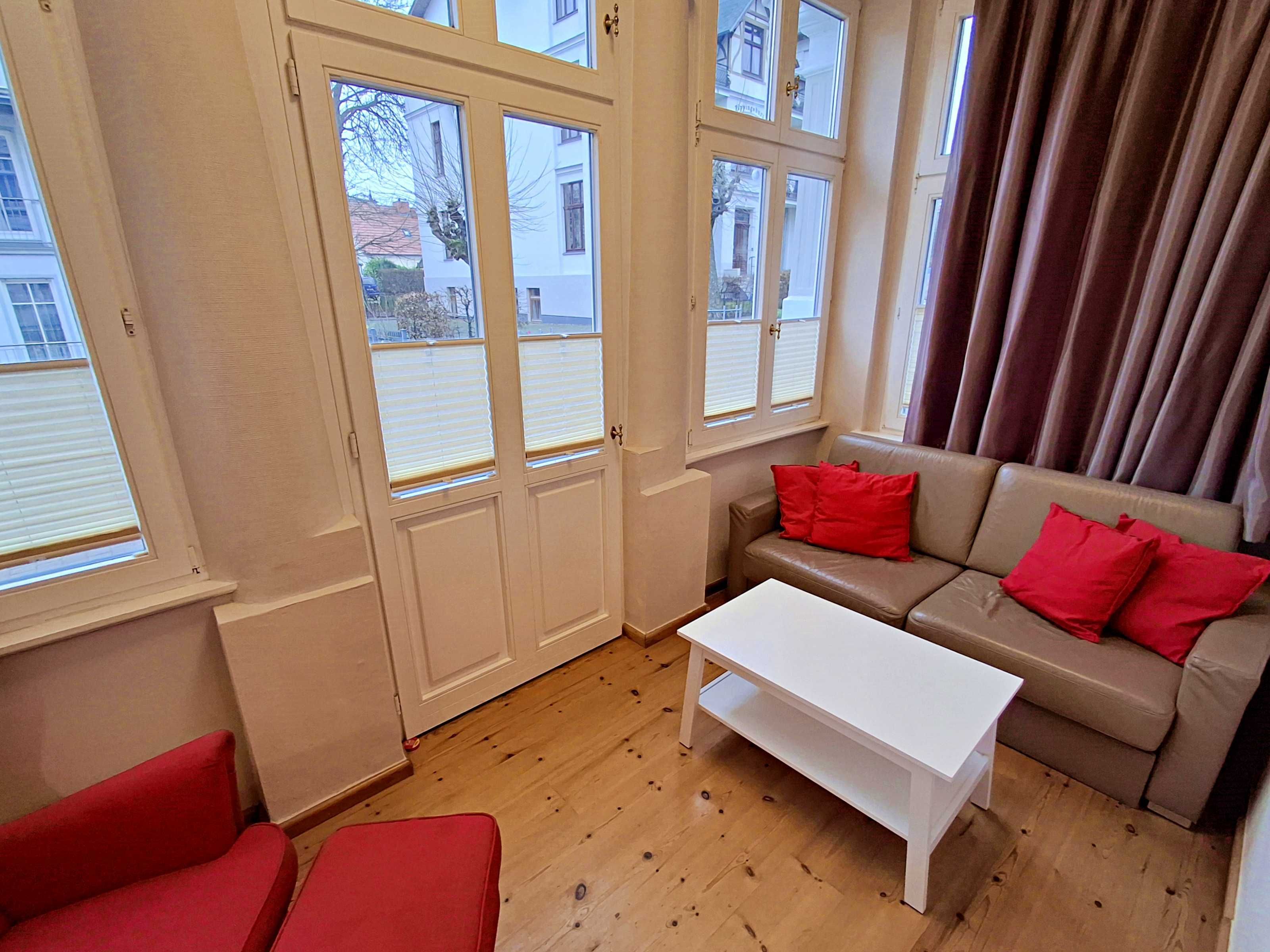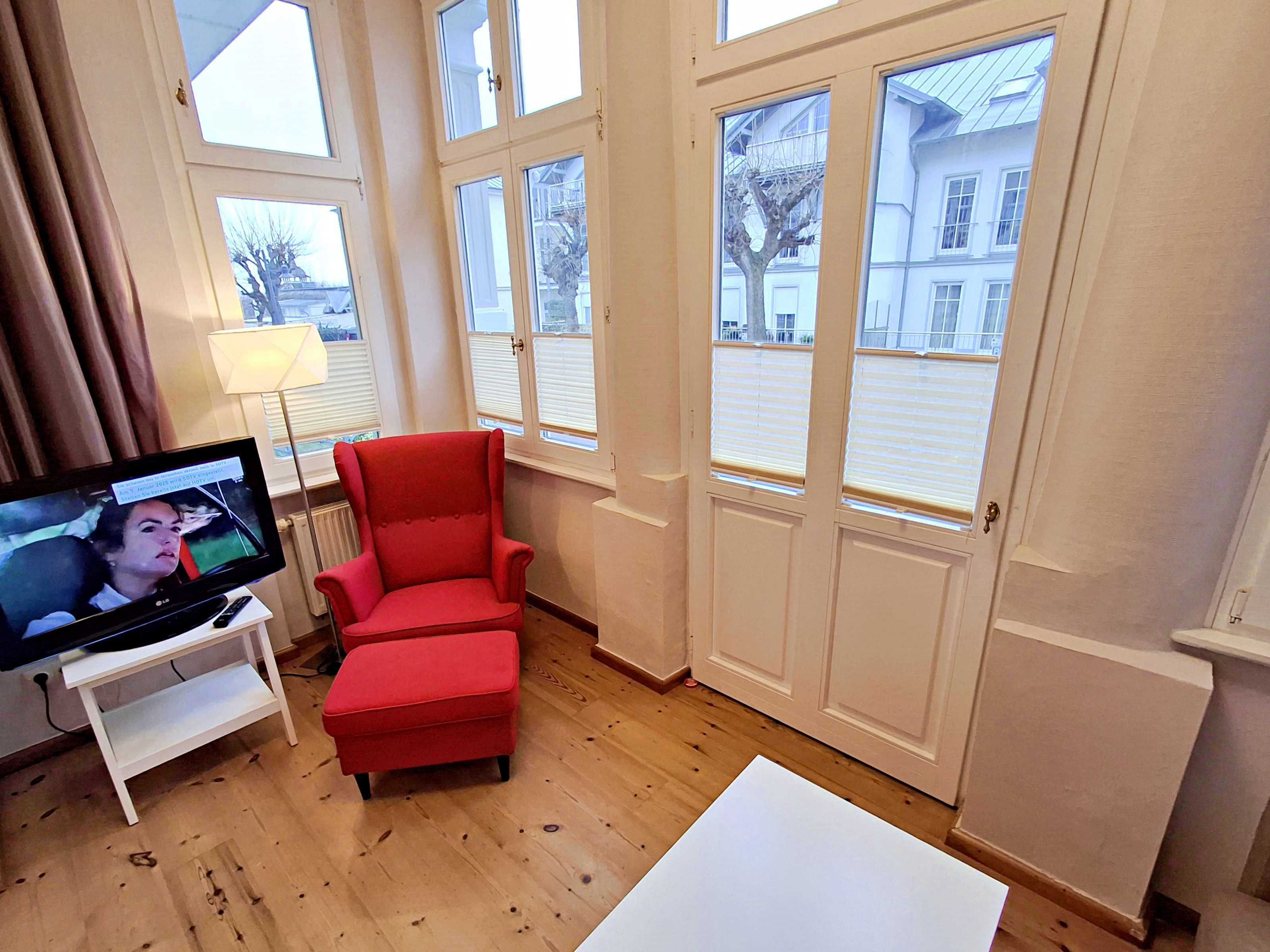 Die helle und freundliche 2,5 Zimmer-Wohnung Rerik mit Terrasse für max. 3 Erwachsene und 1 Kleinkind bis 3 Jahre befindet sich in der stilvoll restaurierten Villa Ahlbeck - nur wenige Schritte von der Promenade und dem Strand entfernt. Die moderne Küchenzeile mit Ceranherd, Backofen, Geschirrspüler, Mikrowelle, Kaffeemaschine, Wasserkocher und Toaster lässt keine Wünsche offen. Bei schlechtem Wetter bietet der Esstisch mit 4 Stühlen genügend Platz für das Frühstück. Die absoluten Highlights der Wohnung sind die Veranda mit Couch (Aufbettungsmöglichkeit für 2 Personen) sowie die angrenzende Terrasse mit Süd-Ost-Ausrichtung. Auf der Terrasse können Sie bei herrlichstem Wetter schon morgens Ihren Kaffee genießen oder den Abend bei einem Glas Wein ausklingen lassen. Für die Unterhaltung sorgen ein Flachbild-TV, Radio-CD-Player und kostenfreies W-LAN. Das Schlafzimmer verfügt über ein Doppelbett und das Badezimmer hat DU/WC.