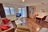 Die gemütliche 2-Zimmer-Wohnung Austernfischer im 1. Obergeschoss mit Balkon für max. 3 Erwachsene und 1 Kind bis 14 Jahre befindet sich im Nebengebäude der stilvoll restaurierten Villa Ahlbeck - nur wenige Schritte von der Promenade und dem Strand entfernt. Im Wohnbereich befinden sich neben der Couch auch ein Sessel sowie ein Esstisch mit 4 Stühlen, der genügend Platz für 4 Personen bietet. Das Highlight der Wohnung ist der Balkon in West-Ausrichtung, welcher vom Wohnbereich aus begehbar ist. Hier können Sie bei schönem Wetter bereits morgens Ihren Kaffee genießen oder den Abend bei einem Glas Wein ausklingen lassen. Die moderne Küchenzeile mit Ceranherd, Backofen, Geschirrspüler, Mikrowelle, Kaffeemaschine, Wasserkocher und Toaster lässt keine Wünsche offen. Für die Unterhaltung sorgen ein Flachbild-TV, Radio-CD-Player und kostenfreies W-LAN. Das Schlafzimmer verfügt über ein Doppelbett und TV und das Badezimmer hat DU/WC.