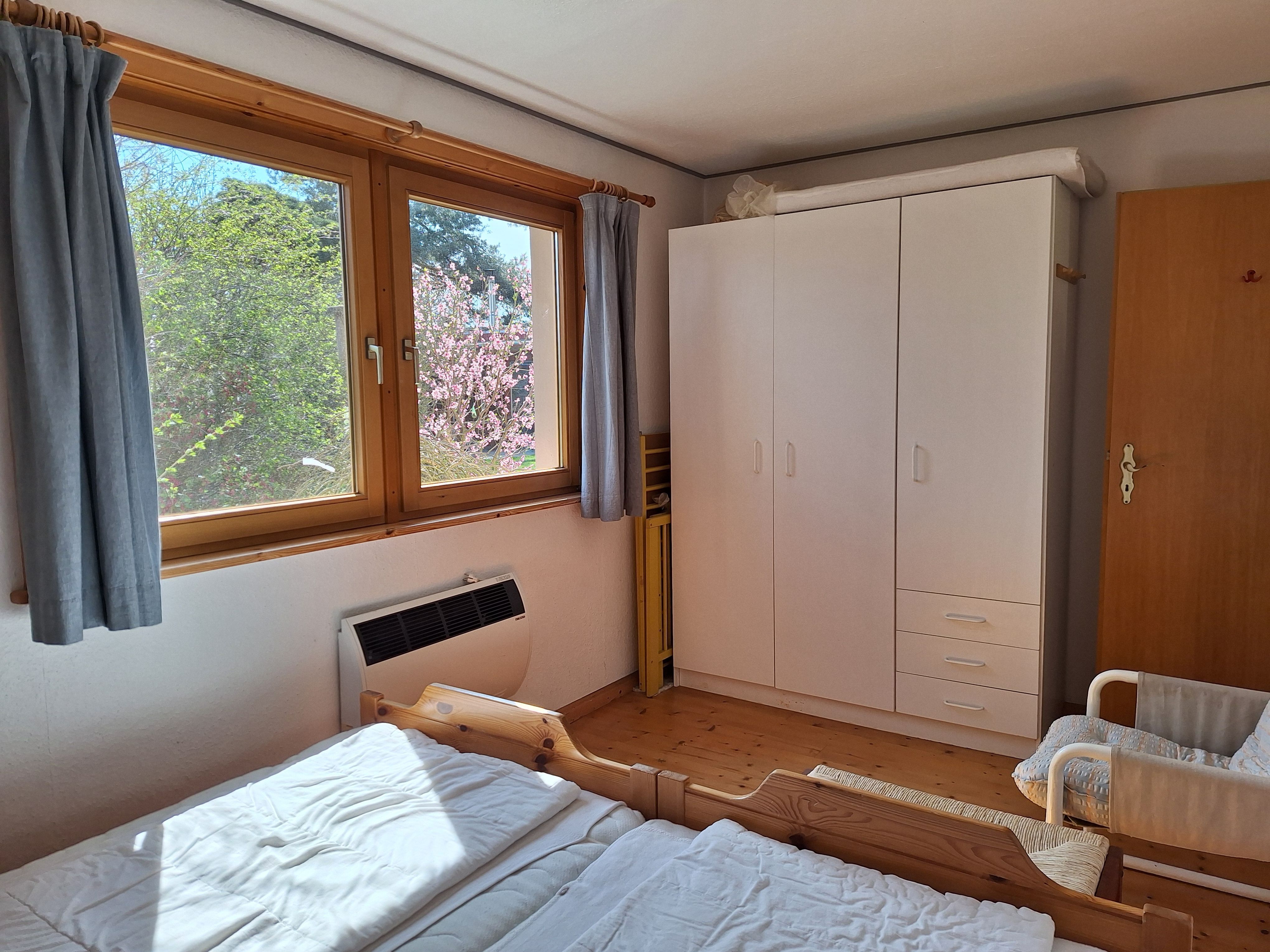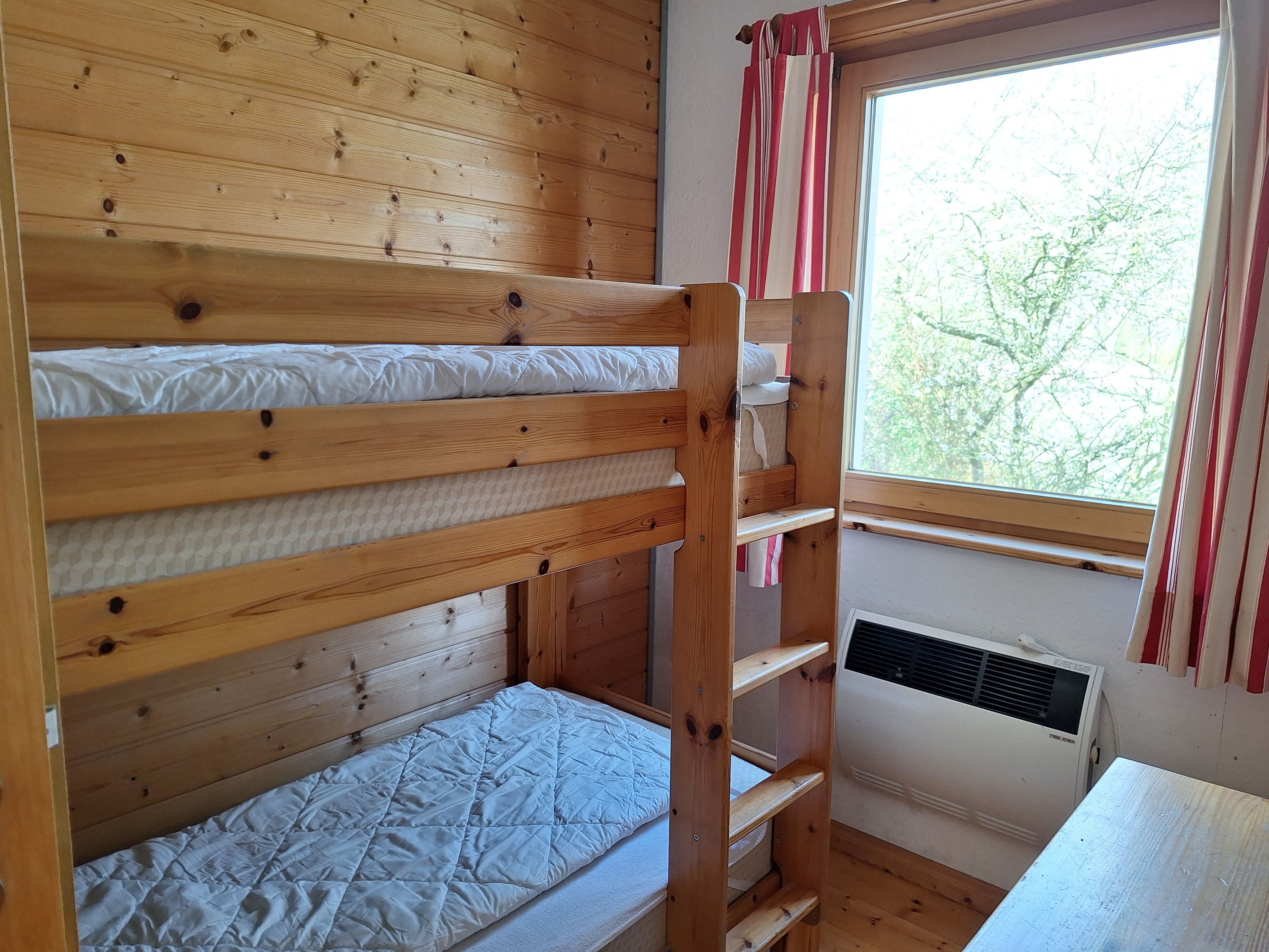 Das Schlafzimmer mit Doppelbett (auch als Einzelbetten stellbar) ist gemütlich eingerichtet. Im Kinderschlafzimmer befindet sich ein Etagenbett.