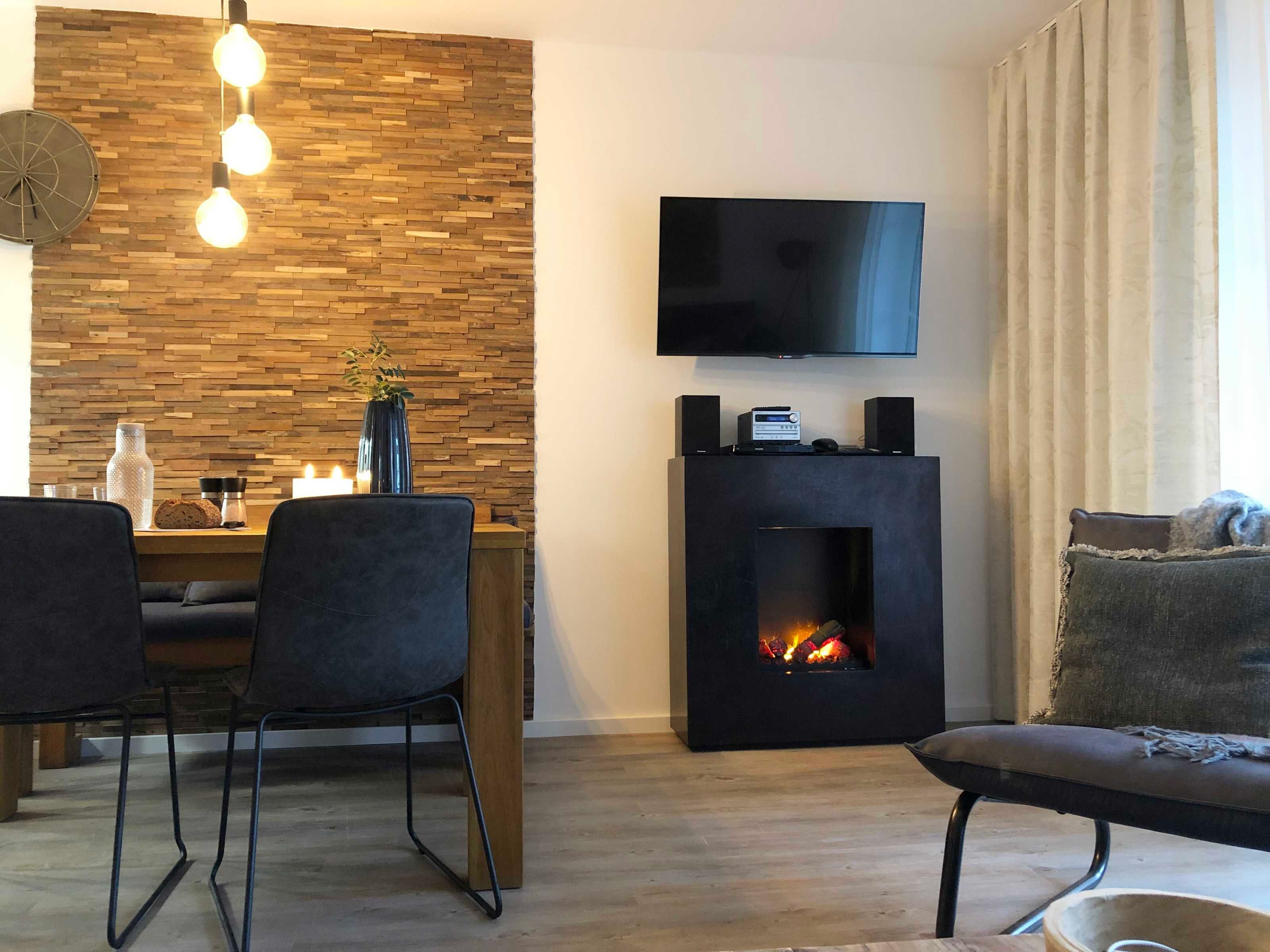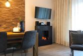Diese 66 qm große helle und freundliche 3 Raum-Ferienwohnung ist für max. 4 Erwachsene und 1 Kleinkind ausgestattet und ist weitestgehend barrierefrei. Das Wohnzimmer verfügt über eine gemütliche Couch, Sessel und einen Esstisch mit 4 Stühlen. Für die Unterhaltung sorgen ein Flachbild-TV und Stereo-Anlage (bluetoothfähig). Ein elektrischer Kamin (arbeitet mit Wasserdampf) verleiht dem Wohnraum neben dem neuen Lichtkonzept eine besondere Atmosphäre. Die vollständig ausgestattete moderne Küchenzeile mit Ceranherd, Backofen, Mikrowelle, Kühlschrank mit Gefrierfach und Spülmaschine lässt keine Wünsche offen. Im ersten Schlafzimmer befindet sich ein gemütliches französisches Doppelbett und Flachbild-TV, das zweite Schlafzimmer verfügt über ein Boxspringbett und ebenfalls einen Flachbild-TV. Das moderne Tageslicht-Bad ist mit Dusche/WC und Haarfön ausgestattet. Ein Balkon (Süd-Ost-Lage) lädt zum Sitzen und Verweilen ein. Hier können Sie bei schönem Wetter schon morgens Ihren Kaffee genießen oder den Abend bei einem Glas Wein ausklingen lassen. Gratis W-LAN steht Ihnen in der gesamten Wohnung zur Verfügung. Ein Kinderbett mit Wäsche sowie ein Hochstuhl können auf Anfrage gegen eine Gebühr von einmalig 50 € vom Verwalter zur Verfügung gestellt werden.