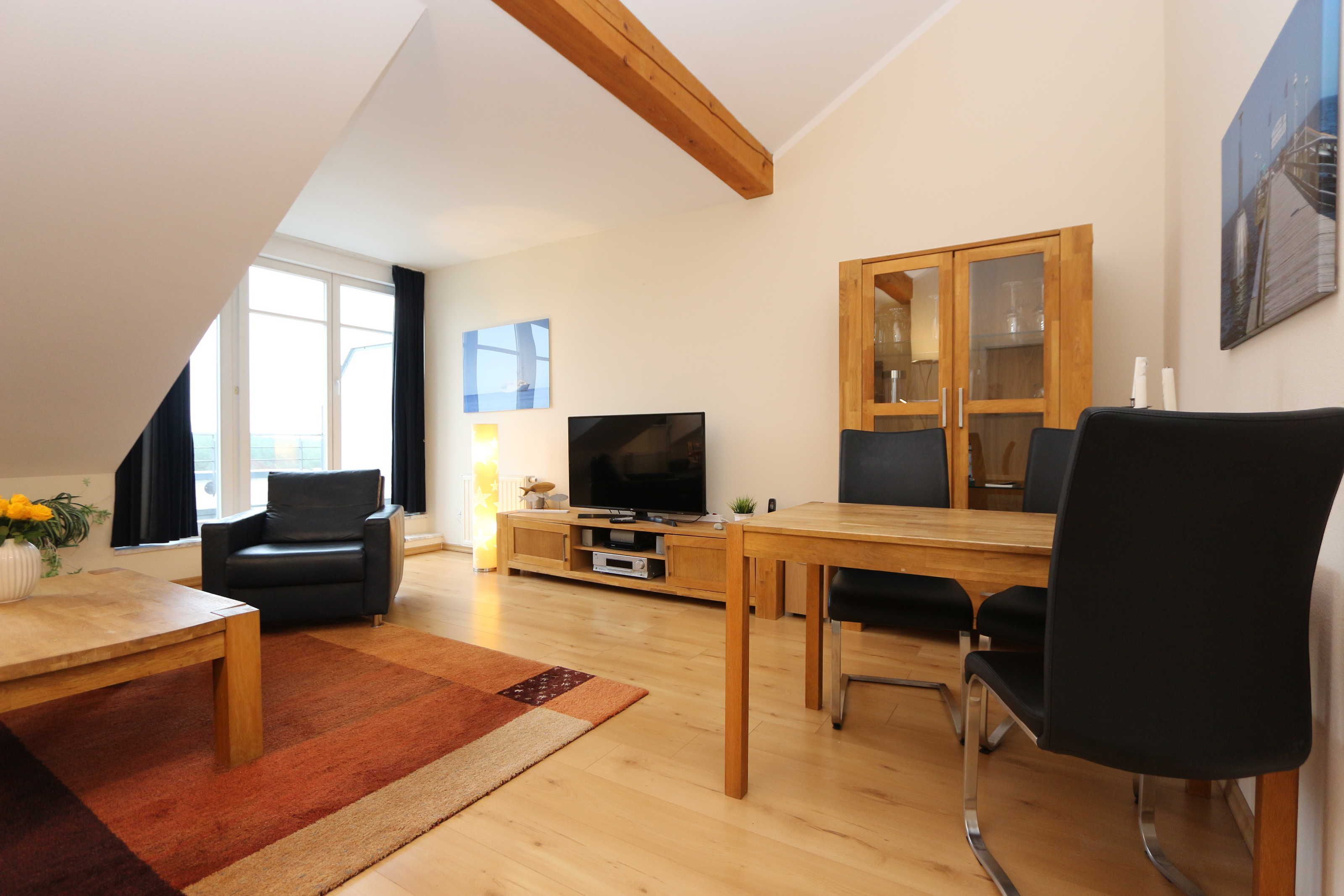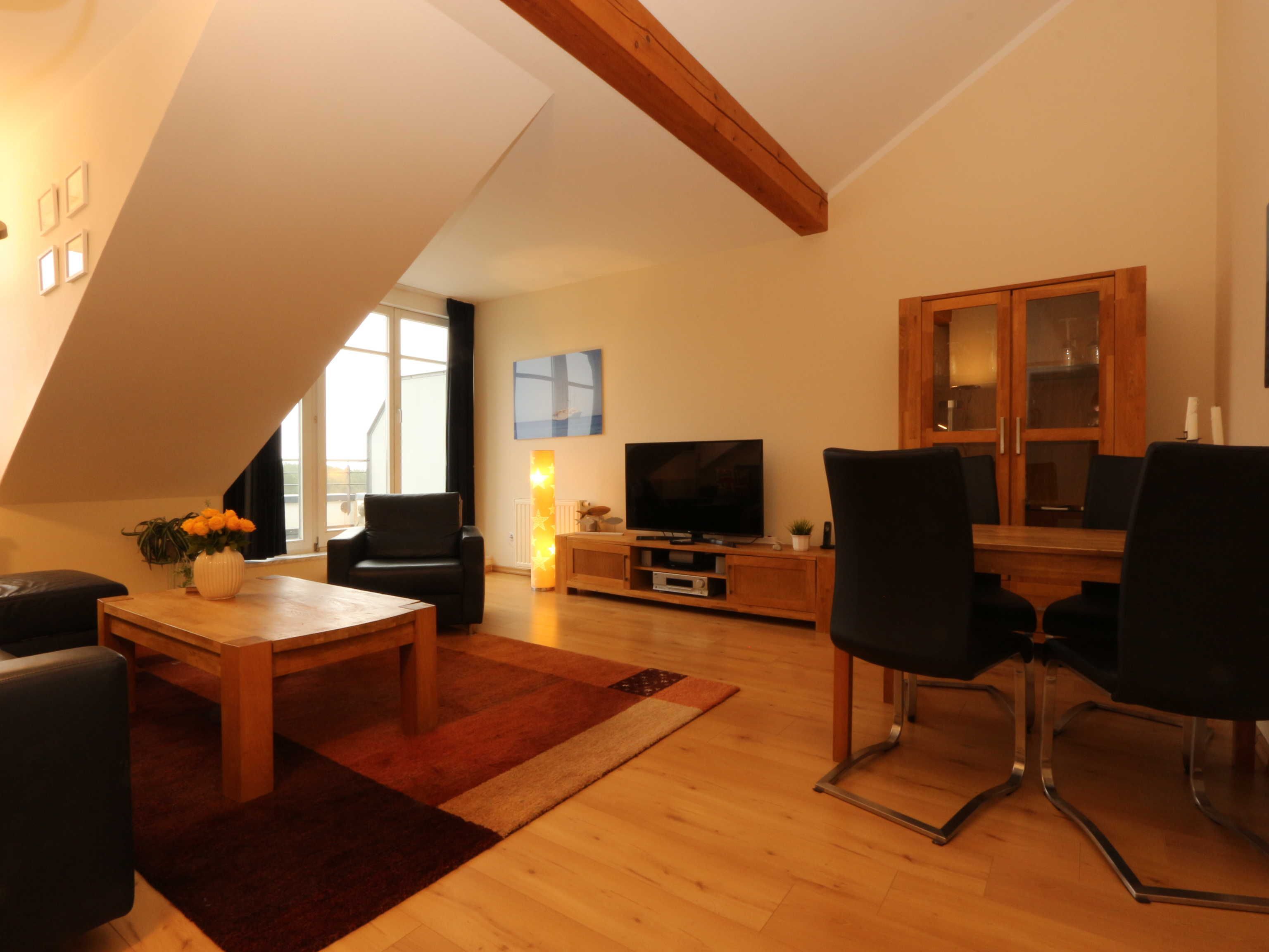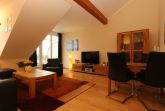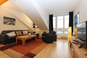Penthousewohnung im Dachgeschoss für 2 Personen (kann bis zu 4 Personen belegt werden) mit teilweise hohen bis in die Dachspitze offenen Räumen: