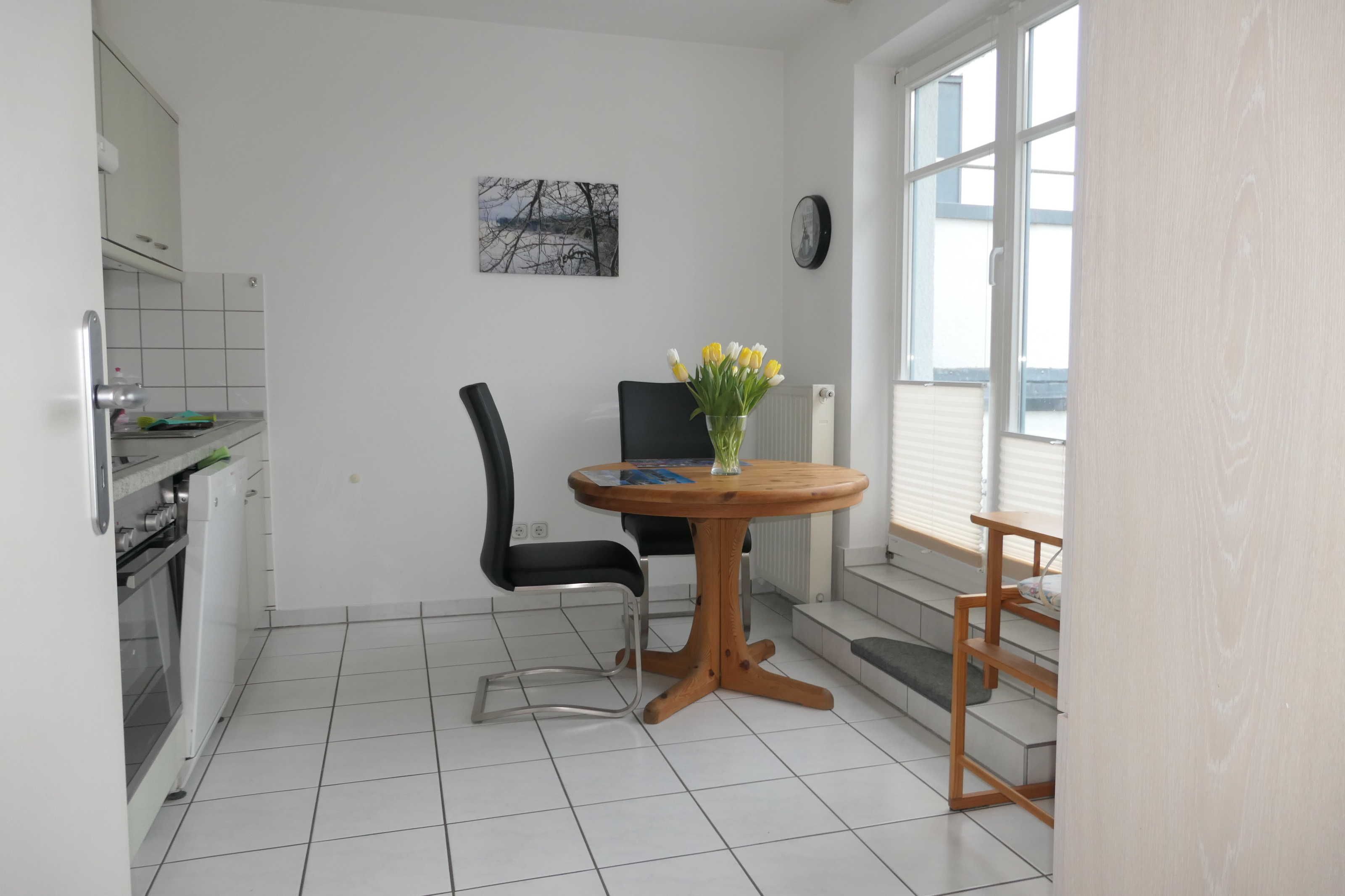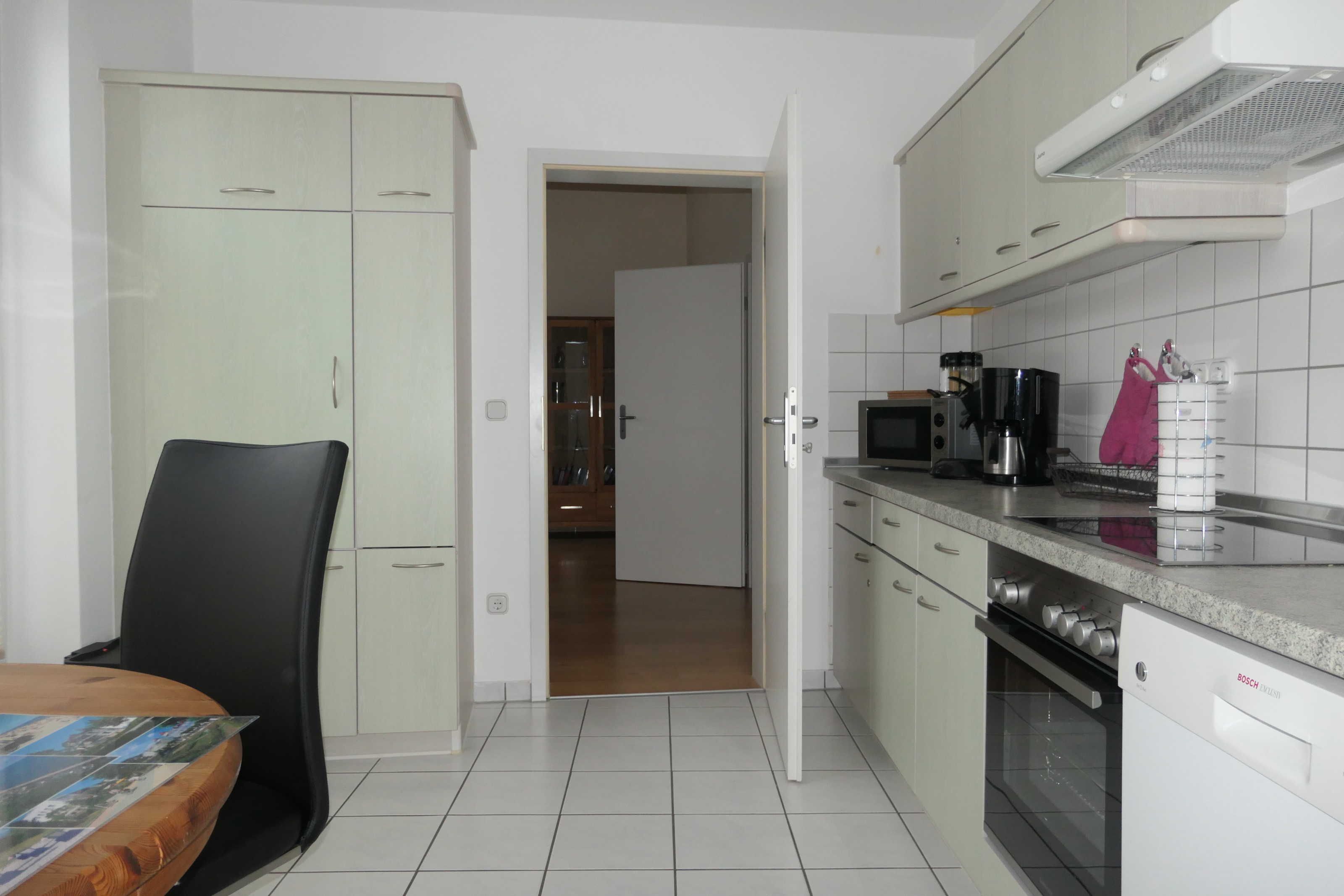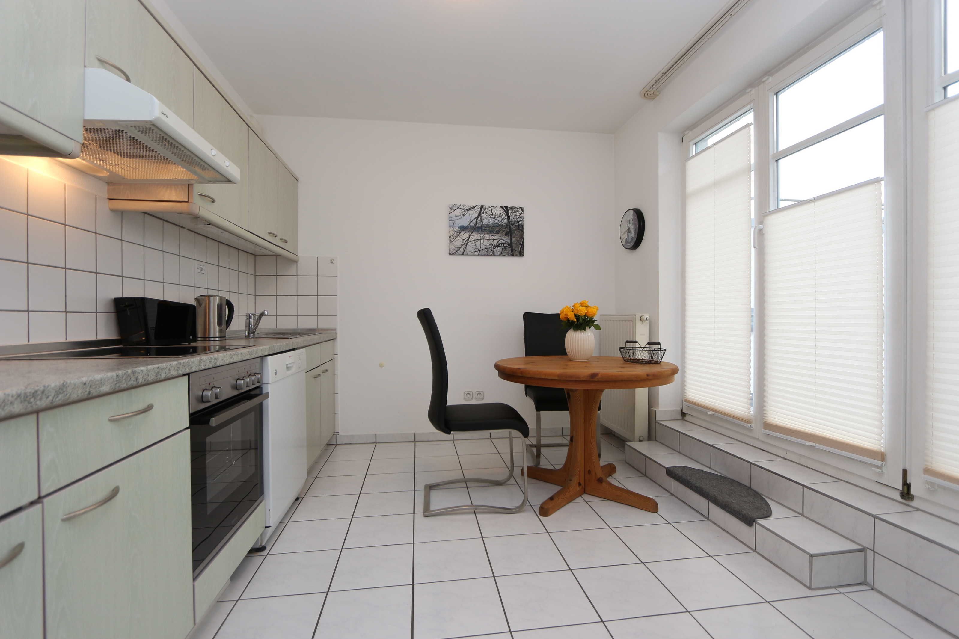 • Küche mit heller Einbauküche inkl. Herd, Mikrowelle, Eierkocher, Toaster, Kaffemaschinen , Spülmaschine, Wasserkocher, Kühlschrank, Esstisch mit Stühlen und Zugang zu einer weiteren grossen Dachterrasse mit herrlichem Ausblick.
