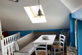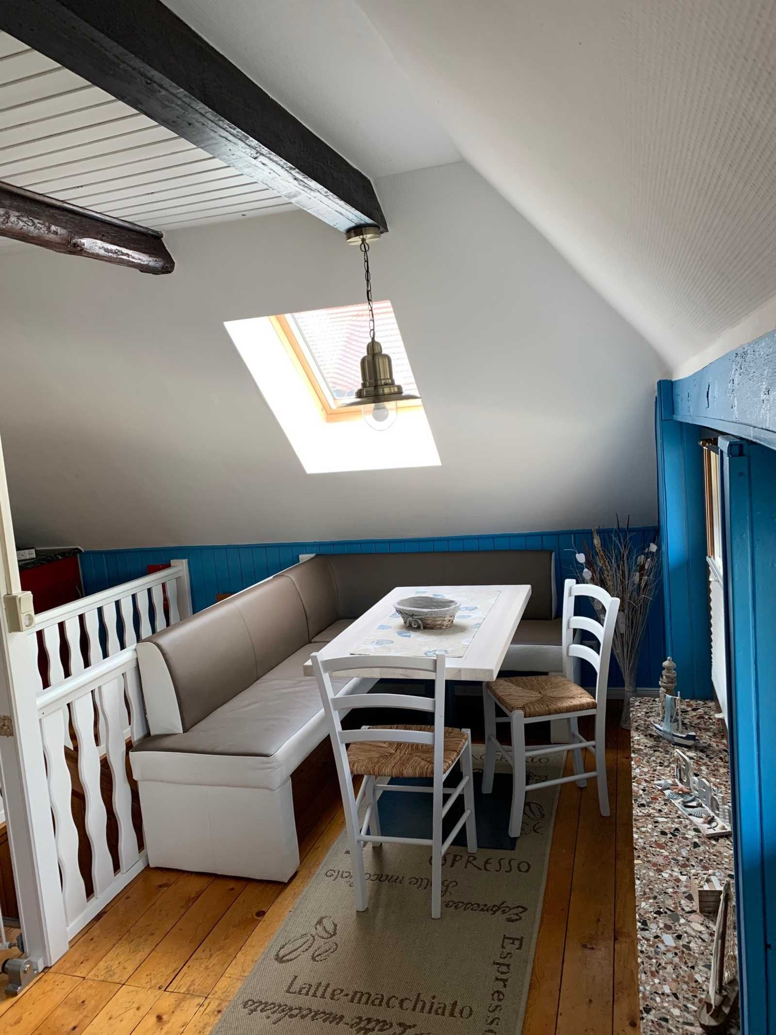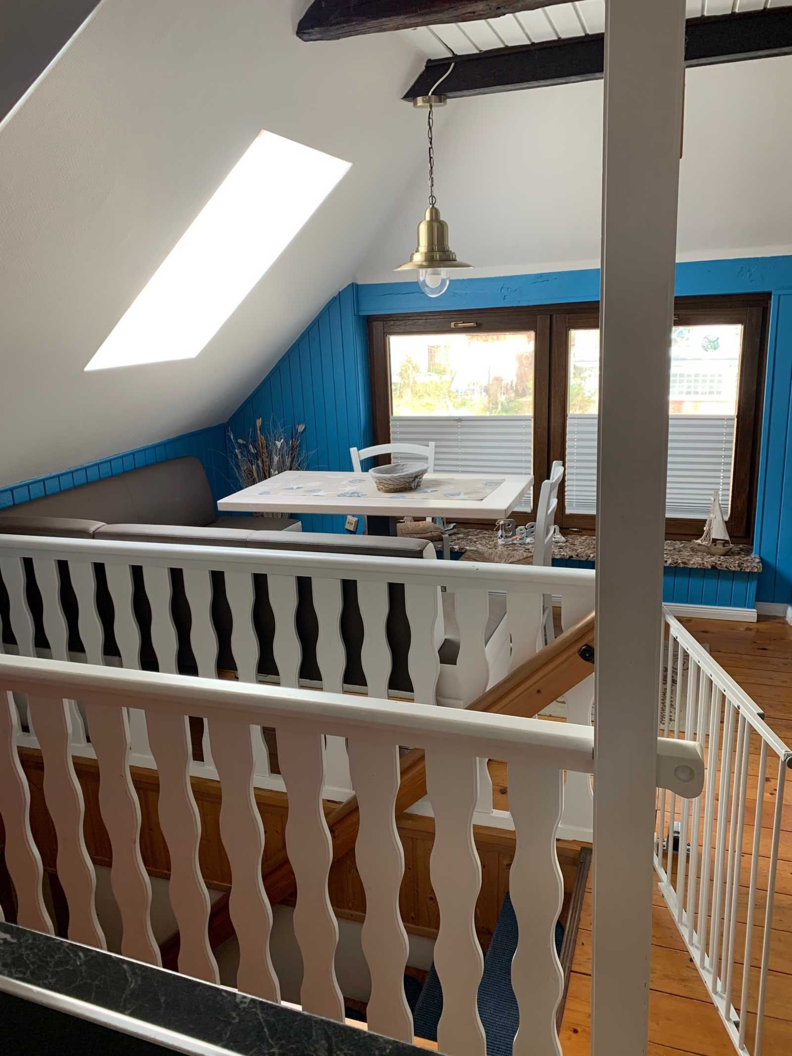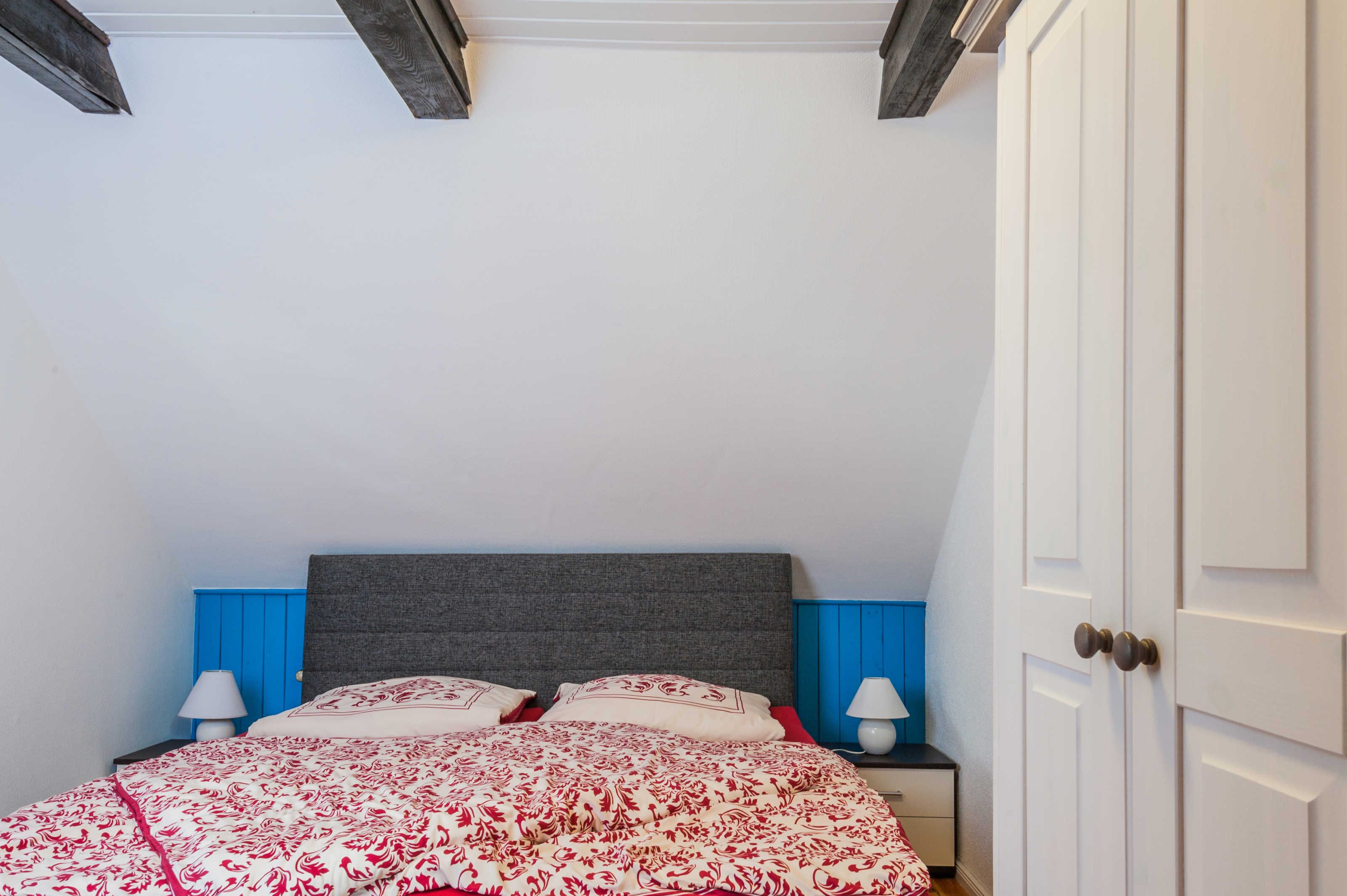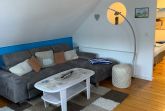 Die lichtdurchflutete offen gestaltete Dachgeschoss-Wohnung ist gemütlich eingerichtet, so dass Sie sich vom ersten Urlaubstag an wohlfühlen können. Hier gibt es ein Schlafzimmer mit Doppelbett und einer Schlafnische für ein kleineres Kind (max. 6 Jahre). Der Wohnbereich ist mit einer Schlafcouch und einer offenen Küche mit Essecke ausgestattet. Das Badezimmer verfügt über eine Dusche. Auch zu dieser Wohnung gehört eine Terrasse.