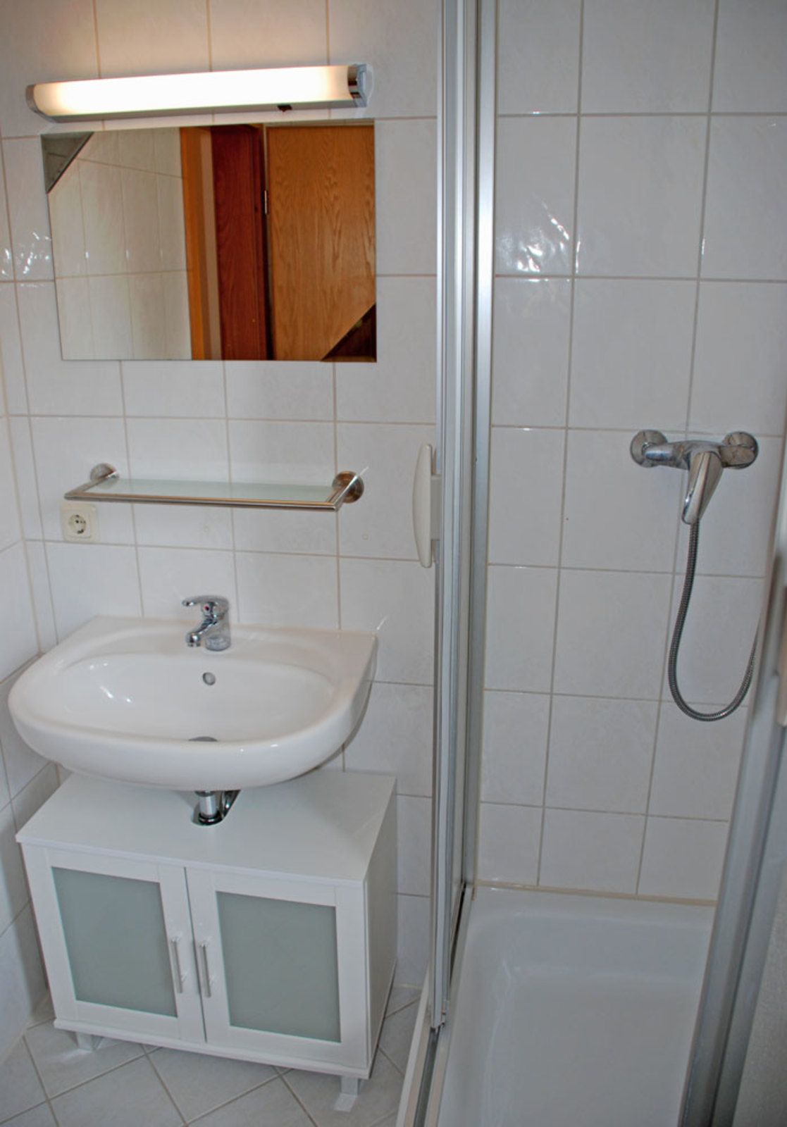 Das Bad mit Fenster ist mit Dusche, WC und Waschtisch ausgestattet. Alles wirkt hell und freundlich, so dass man sich von Anfang an wohl fühlt. Neben dem Haus können in einem großen Garten ein Pavillon mit Gartenmöbeln und ein Grill mitgenutzt werden.