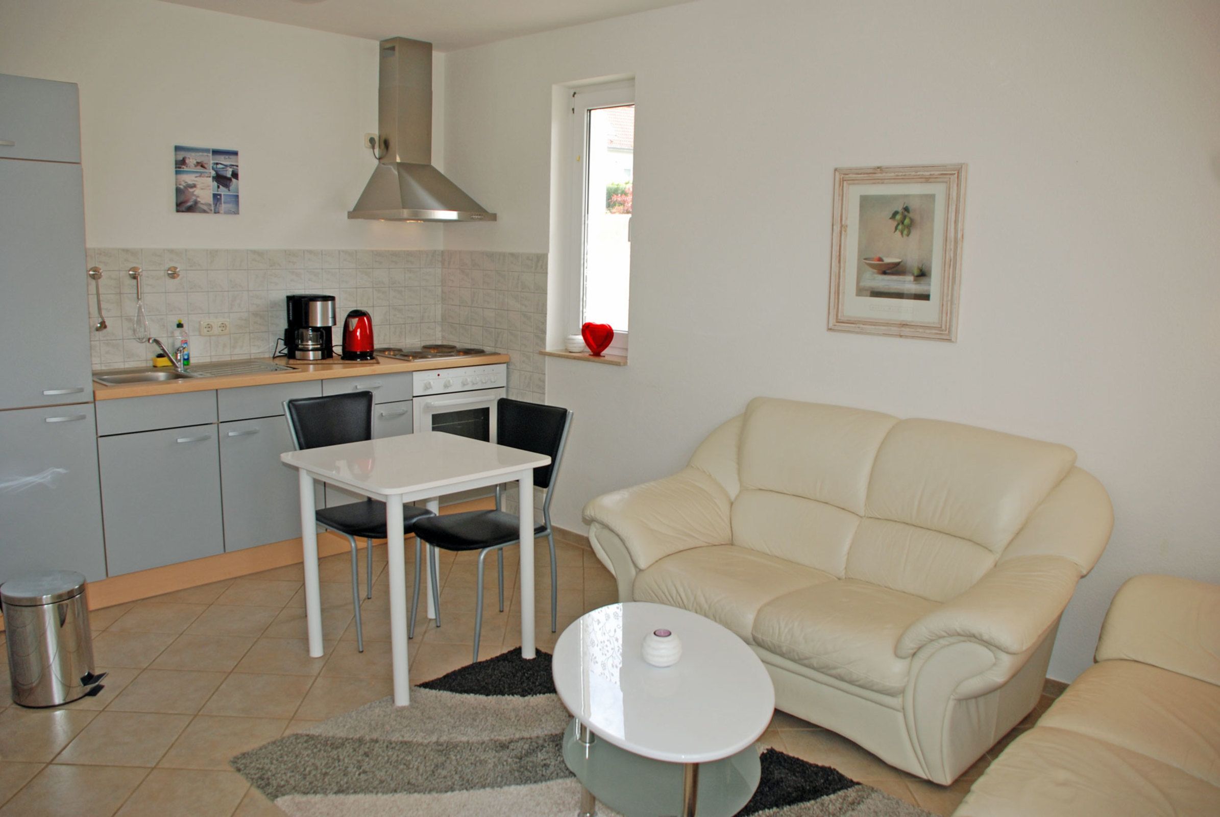 Wir bieten Ihnen - nahe dem Zentrum von Sellin, im Ferienhaus am Sonnensteg vier modern eingerichtete Nichtraucher-Ferienwohnungen (max. 4 Gäste, Schlafzimmer, Wohnzimmer, Küchenzeile, Dusche/WC, Internet - WLAN) in ruhiger Lage. Die vier Ferienwohnungen sind liebevoll eingerichtet und versprechen eine angenehme Wohlfühlatmosphäre. Sie verfügen über moderne Küchen mit Kochplatten, Kaffeemaschine, Wasserkocher, Toaster, Kühlschrank. Im Wohnbereich befindet sich jeweils ein Flachbildfernseher.