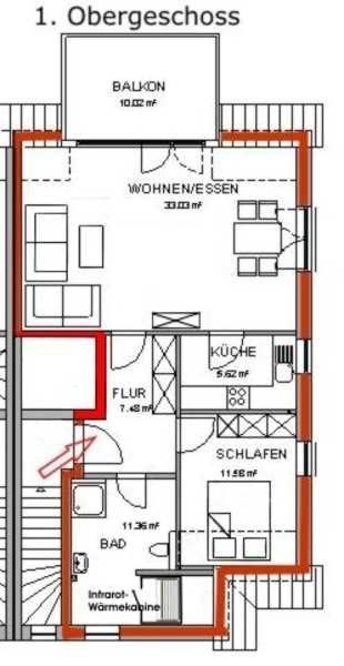 • Die Obergeschosswohnung verfügt über 1 großen Balkon, der nach Südwesten ausgerichtet ist. Der Balkon ist überdacht.