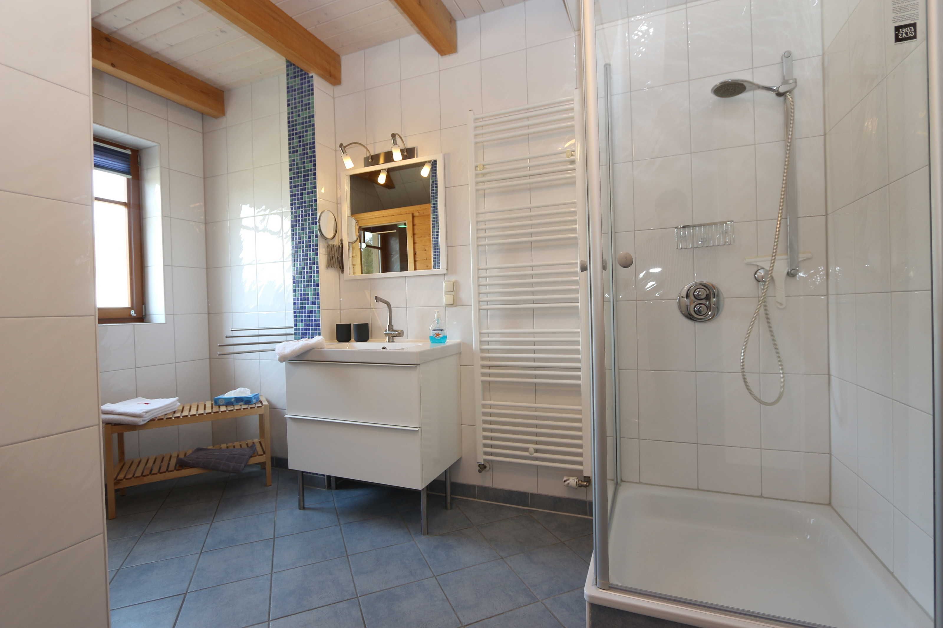 - das Bad verfügt über ein Waschbeckecken, ein WC, ein Handtuchtrockenheizkörper, eine Dusche und eine Infrarot-Wärmekabine;
