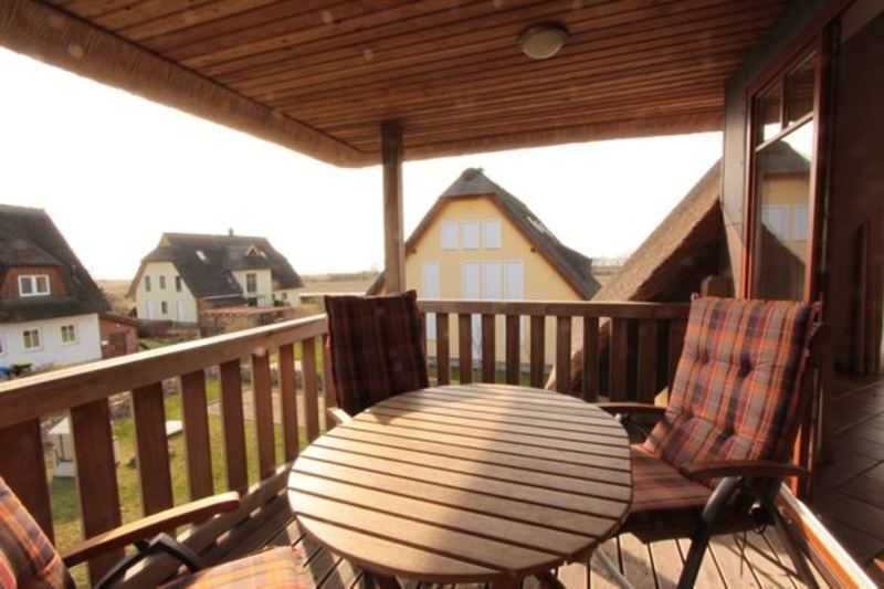 - die Holzterrasse ist mit einem Tisch und 4 Stühlen ausgestattet;