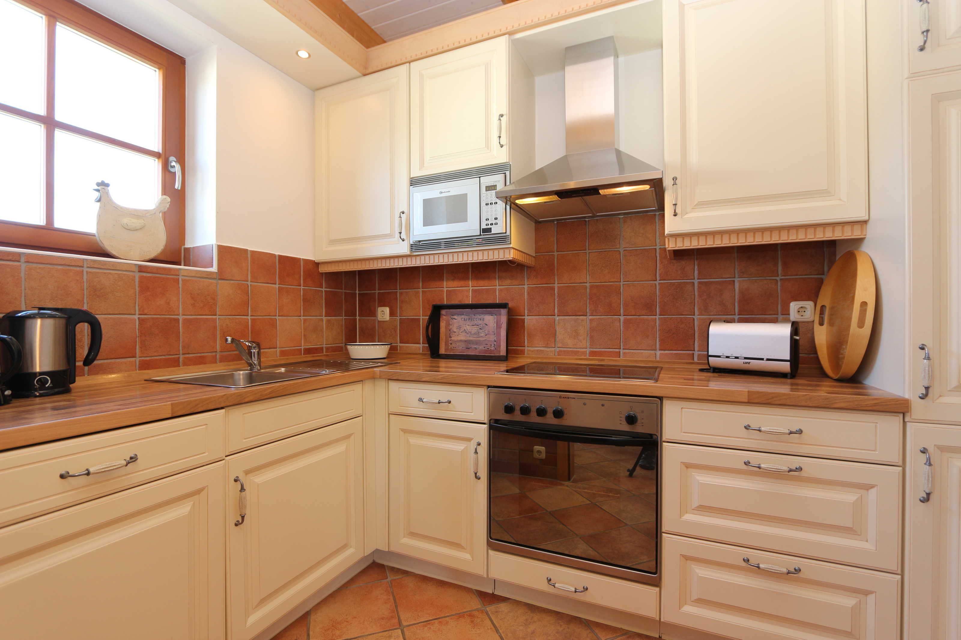 - Küche mit Einbauküche, Spülmaschine, Backofen, Glaskeramikkochfeld, Mikrowelle, Wasserkocher, Kaffeemaschine, Toaster, Mixer, Kühlschrank mit Gefrierfach und reichlich Geschirr;