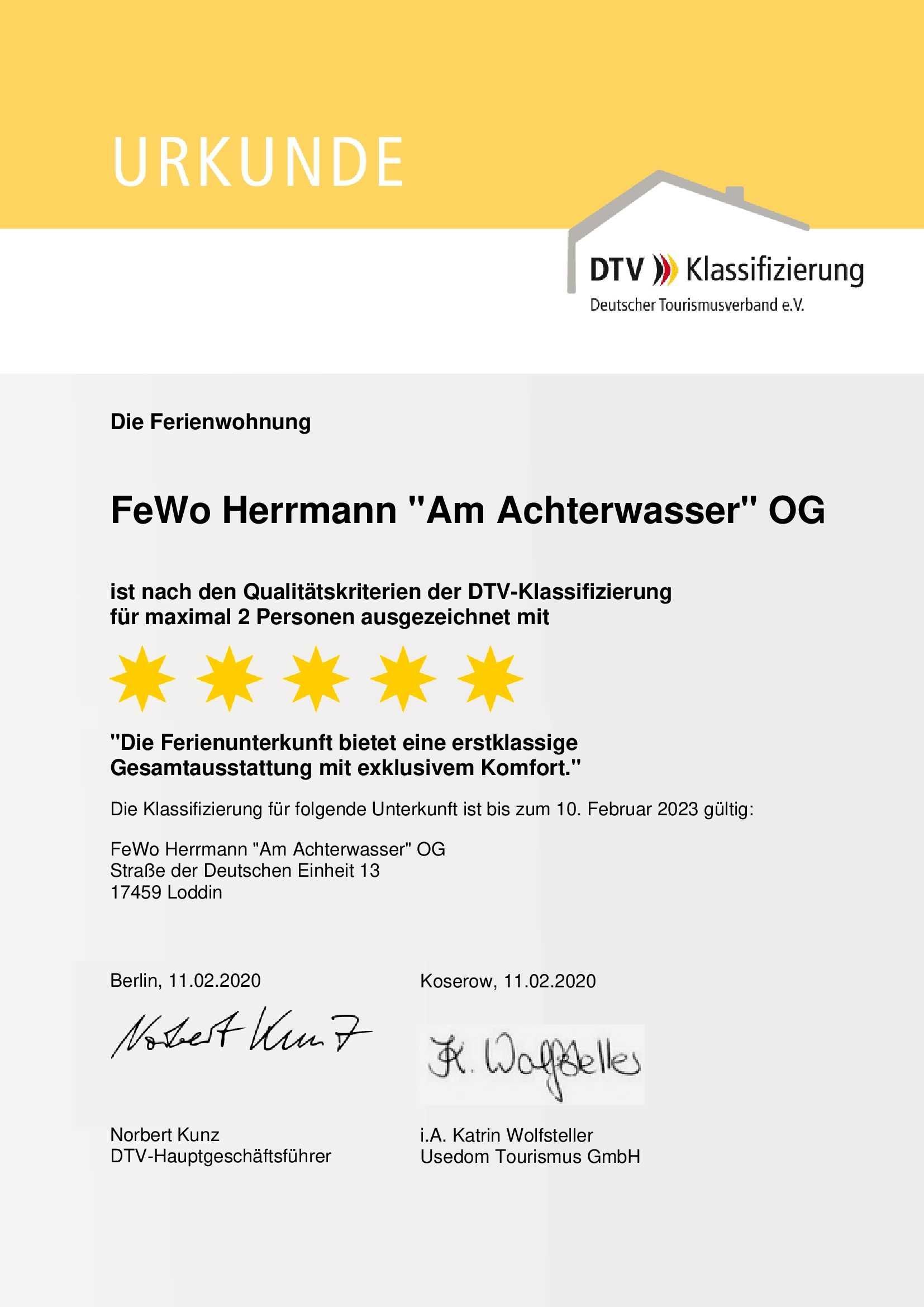 • Diese Wohnung wurde vom DTV (Deutscher Tourismusverband) mit 5-Sternen bei einer Belegung mit 2 Personen klassifiziert. Bei einer Belegung von mehr als 2 Personen ist der DTV-Sterne-Standard von 5-Sternen nicht mehr gewährleistet.